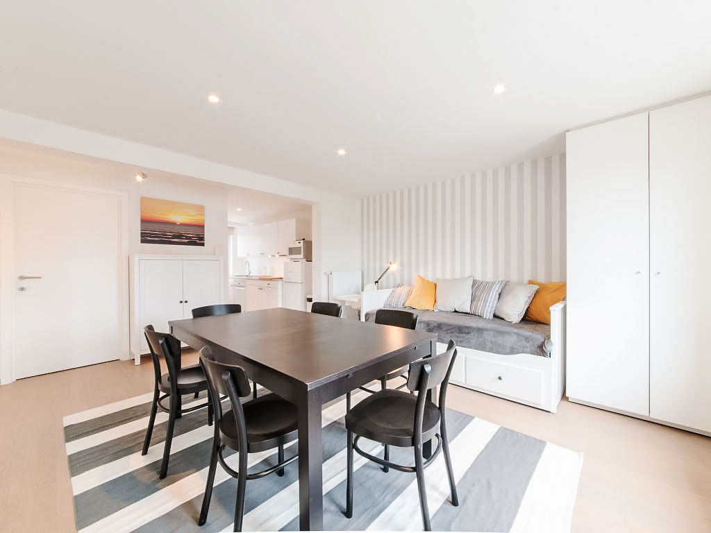 De Haan aan Zee: Kleines Mehrfamilienhaus "Littoral", auf 2 Stockwerken. Im Ortszentrum von De Haan, zentrale Lage, 80 m vom Meer, 30 m vom Strand, direkter Zugang zum Strand. Öffentliche Parkplätze auf der Strasse. Einkaufsgeschäft 1 km, Supermarkt 1 km, Restaurant 10 m, Bäckerei 1 km, Fahrradverleih 750 m, Zentrum zu Fuss in 2 Minuten erreichbar, Straßenbahn "De Lijn" 800 m, Bahnstation "Oostende" 12 km, Sandstrand 30 m, Park "La Potiniere" 500 m. Golfplatz 1.5 km, Surfschule 7 km, Tennis, Minigolf 800 m. Nahe gelegene Sehenswürdigkeiten: Familiepark De Sierk 4 km, Sealife Blankenberge 13 km, Plopsaland De Panne 50 km. Die Nachbarschaft ist sehr lärmempfindlich. Ruhe und gutes Benehmen wird erwartet.