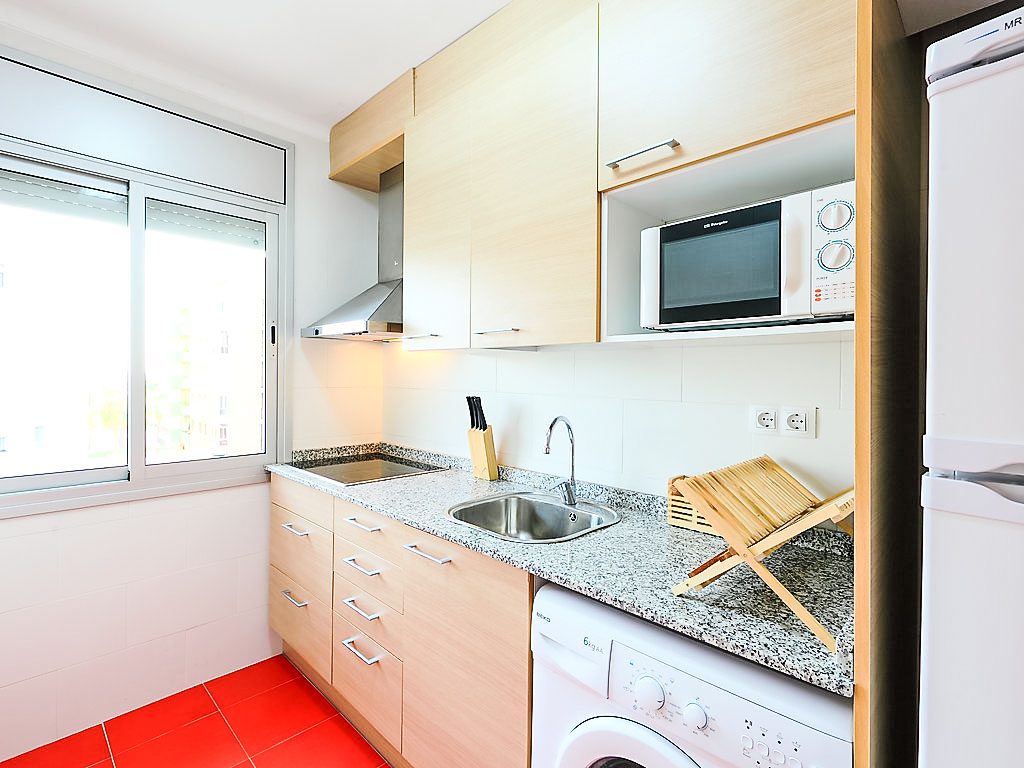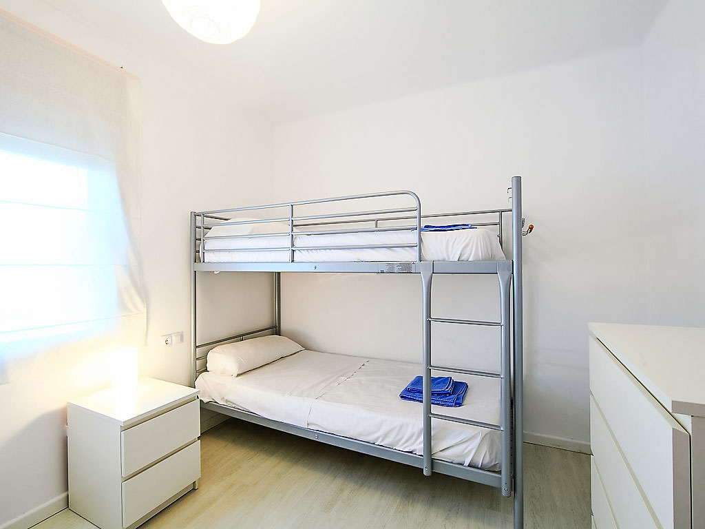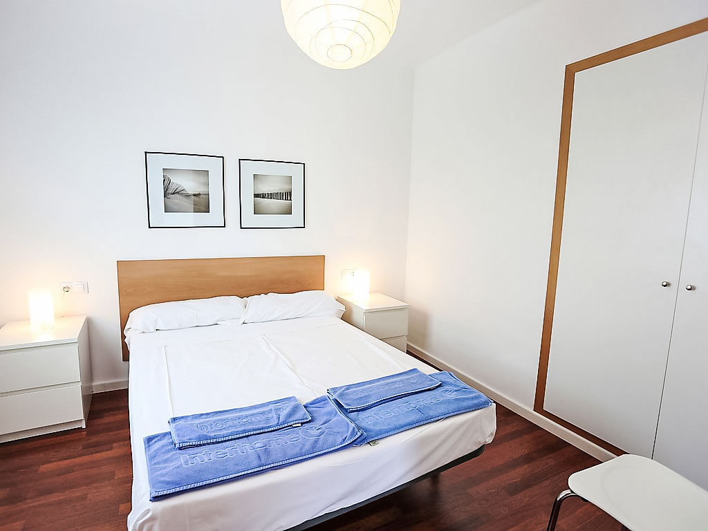 3-Zimmer-Wohnung 55 m2 im 2. Stock. Modern und geschmackvoll eingerichtet: Wohn-/Esszimmer mit Digital-TV, Klimaanlage und Warmluftheizung. Ausgang zum Balkon. 1 Zimmer mit 1 franz. Bett. 1 Zimmer mit 1 x 2 Etagenbetten. Küche (4 Kochplatten, X Glaskeramikherd Platten, Mikrowelle, elektrische Kaffeemaschine). Dusche/WC. Balkon. Balkonmöbel. Eingeschränkte Sicht auf das Meer. Zur Verfügung: Waschmaschine, Bügeleisen, Haartrockner. Internet (Wireless LAN, gratis). Smart-TV. HUTT005506