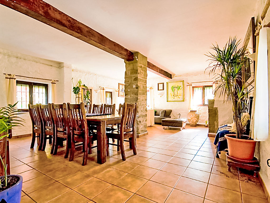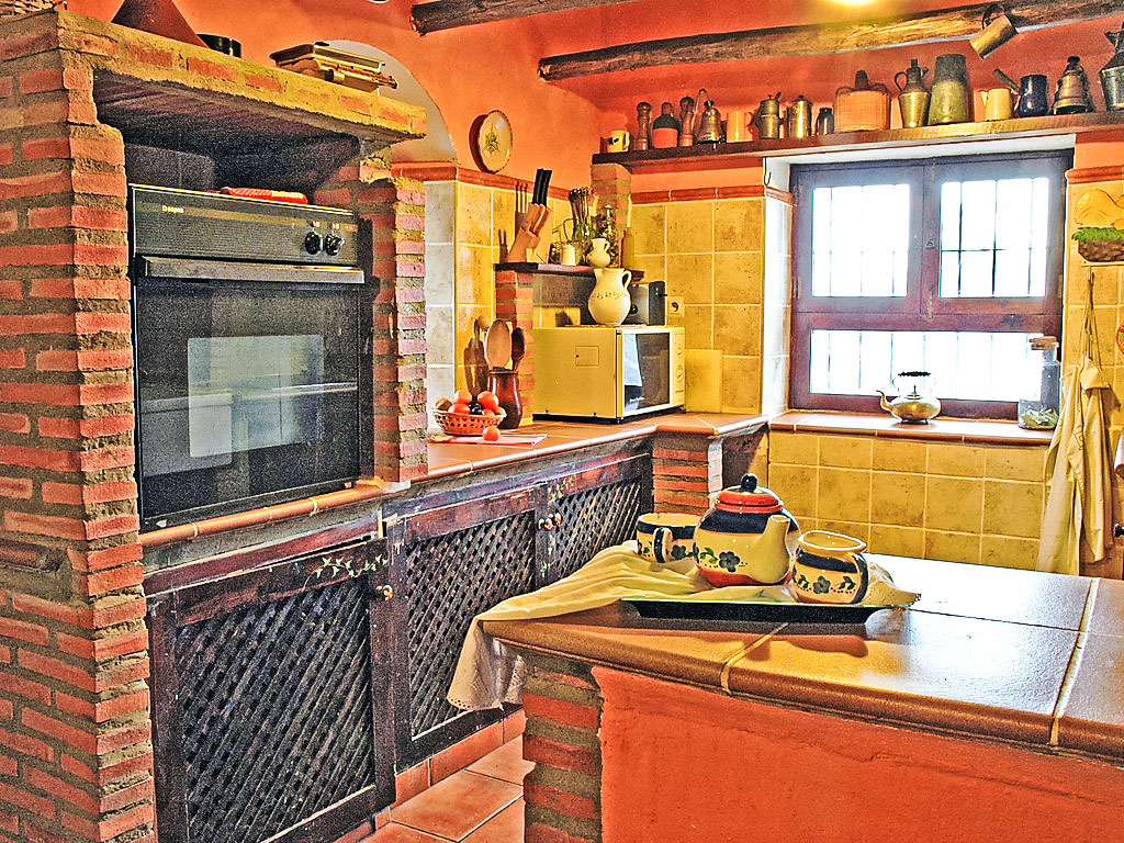 "Cortijo del Zoco", 6-Zimmer-Haus 250 m2. Zweckmässig und komfortabel eingerichtet: Wohn-/Esszimmer mit offenem Kamin, Sat-TV, Radio und DVD. 1 Zimmer mit 1 Bett (9 cm, Länge 190 cm), 1 Doppelbett (135 cm, Länge 190 cm). 2 Zimmer, jedes Zimmer mit 1 Doppelbett (135 cm, Länge 190 cm). 1 Zimmer mit 1 Doppelbett (135 cm, Länge 190 cm), 1 Klappbett. 1 Zimmer mit 2 x 2 Etagenbetten (90 cm, Länge 190 cm). Offene Küche (4 Kochplatten, Backofen, Toaster, Wasserkocher, Mikrowelle, Tiefkühler, Grill, elektrische Kaffeemaschine) mit Esstisch. Bad/Bidet/WC, Dusche/WC, Sitzbad/WC, sep. WC. Solarheizung, Ölheizung. Terrasse 30 m2 teilweise überdacht, Gartensitzplatz 300 m2. Terrassenmöbel, Liegestühle (4). Sicht auf das Schwimmbad, den Garten und die Landschaft. Zur Verfügung: Waschmaschine, Bügeleisen, Babybett bis 2 Jahre, Haartrockner. Internet (Wireless LAN, gratis). Maximal 1 Haustier/Hund erlaubt. CR/CO/00304