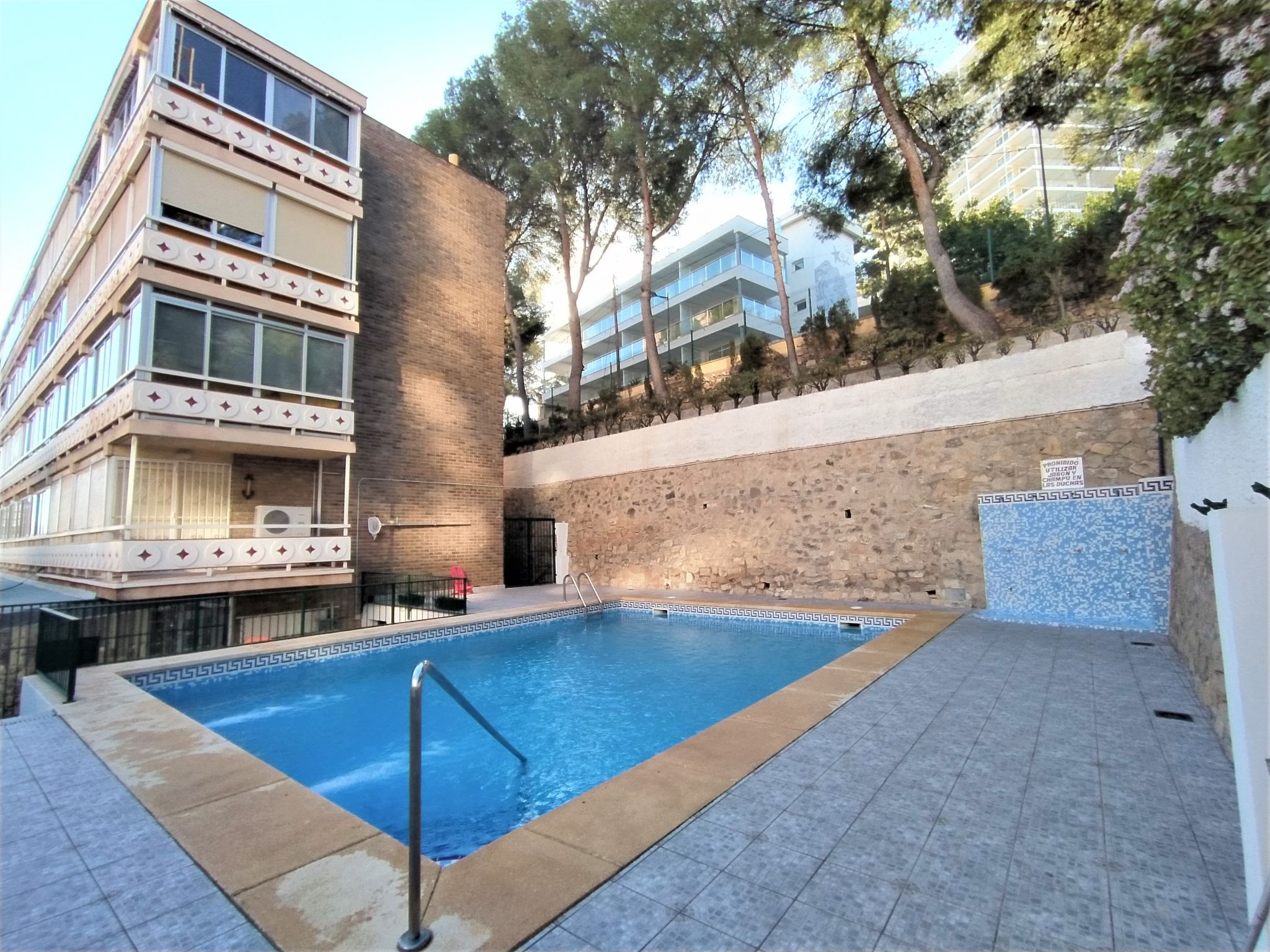 Playa Poniente: Komfortables Appartementhaus "Don Lorenzo", auf 5 Stockwerken. Im Ort, 200 m vom Zentrum von La Cala, 200 m vom Meer, 200 m vom Strand. Zur Mitbenutzung: Grundstück (eingezäunt), Schwimmbad (5 x 8 m, saisonale Verfügbarkeit: 15.Jun.-15.Sep.). Aussendusche. Im Hause: Restaurant, Bar, Fahrstuhl. Öffentliche Parkplätze auf der Strasse. Supermarkt 50 m, Restaurant, Bar 10 m, Bushaltestelle "Benidorm" 50 m, Bahnstation "Benidorm" 4 km. Golfplatz (18 Loch) 4 km. Nahe gelegene Sehenswürdigkeiten: Terra Mitica 5 km, Terra Natura 5 km, Aqualandia 7 km, Mundomar 7 km, Alicante 38 km. Bitte beachten: Babyausstattung auf Anfrage. Jugendgruppen nur auf Anfrage. Die Nachbarschaft ist sehr lärmempfindlich. Ruhe und gutes Benehmen wird erwartet.