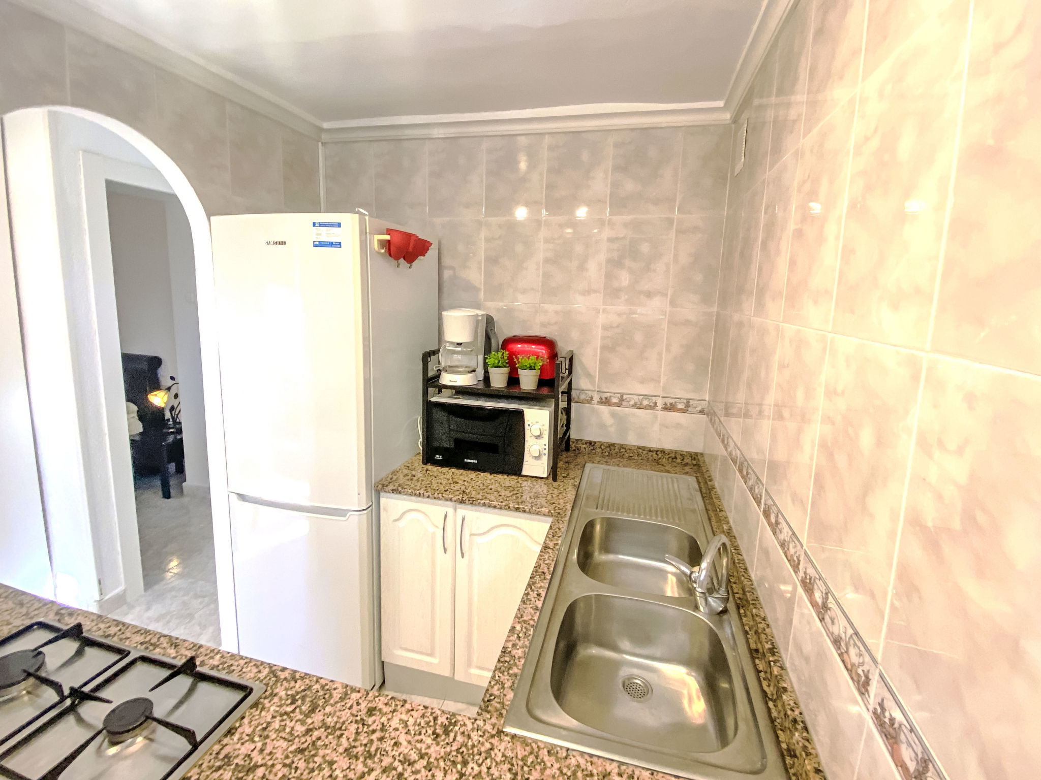 "Don Lorenzo", 3-Zimmer-Wohnung 58 m2 im 3. Stock. Vollständig renoviert im Jahre 2013, komfortabel und geschmackvoll eingerichtet: Wohn-/Esszimmer mit Digital-TV und Klimaanlage. 1 Zimmer mit 2 Betten. 1 Zimmer mit 1 franz. Bett (150 cm, Länge 190 cm), Klimaanlage. Kleine Küche (4 Kochplatten, Backofen, Toaster, Wasserkocher, Mikrowelle, Tiefkühler, elektrische Kaffeemaschine). Dusche/Bidet/WC. Boiler (52 Liter). Sicht auf die Ortschaft. Zur Verfügung: Waschmaschine, Bügeleisen, Haartrockner. Bitte beachten: Nichtraucher-Unterkunft. AT321606BM