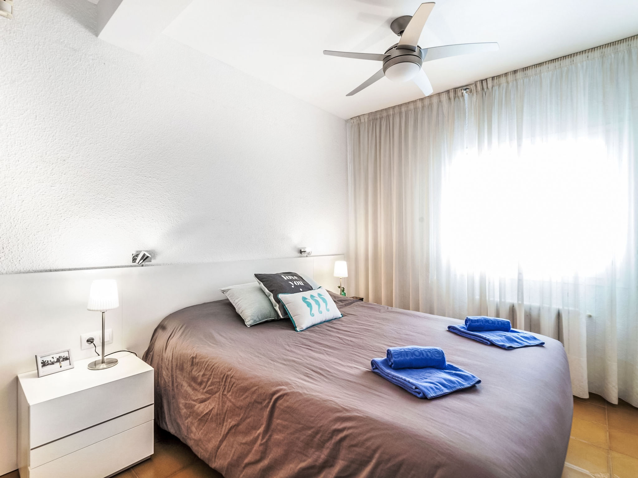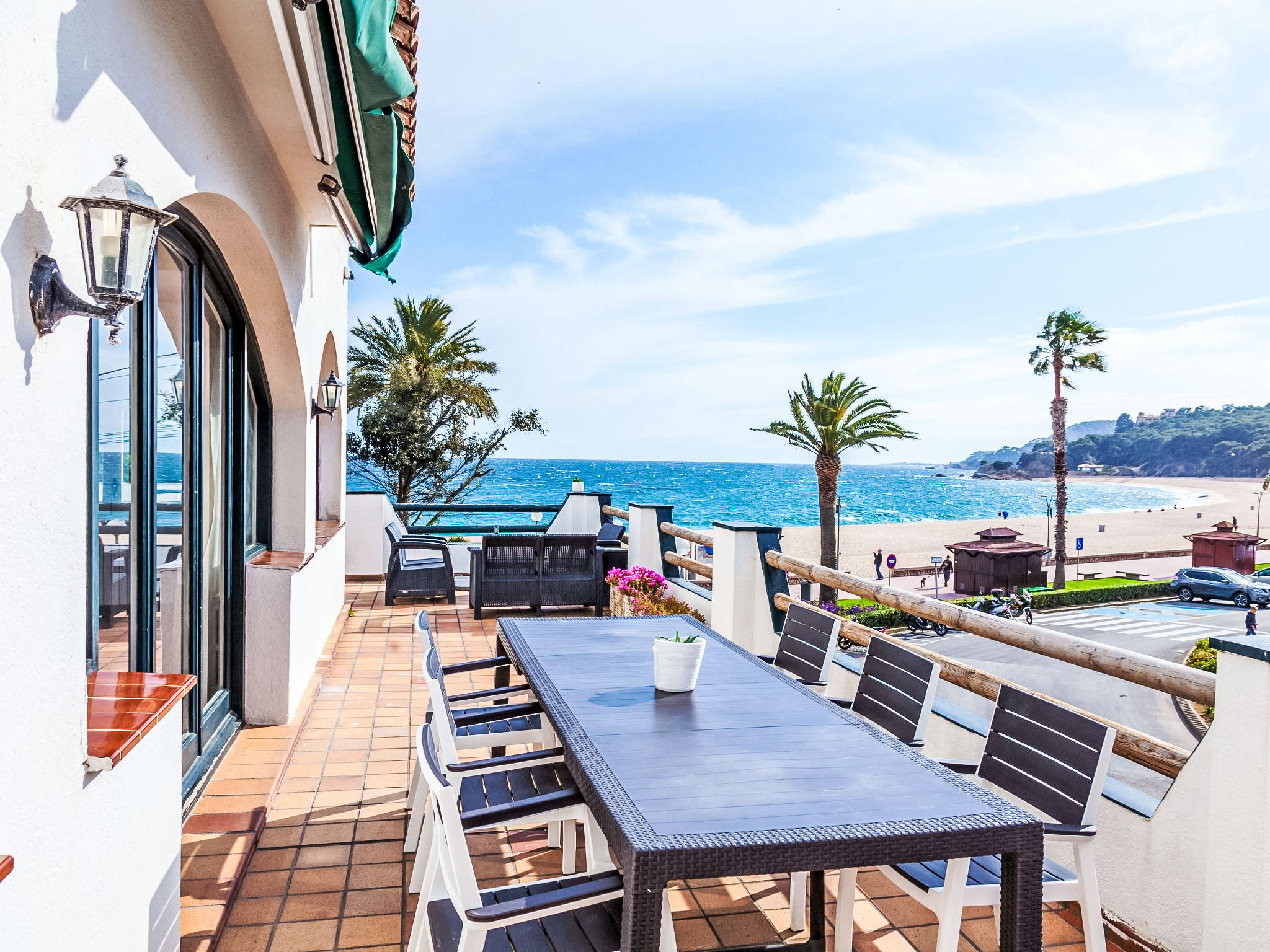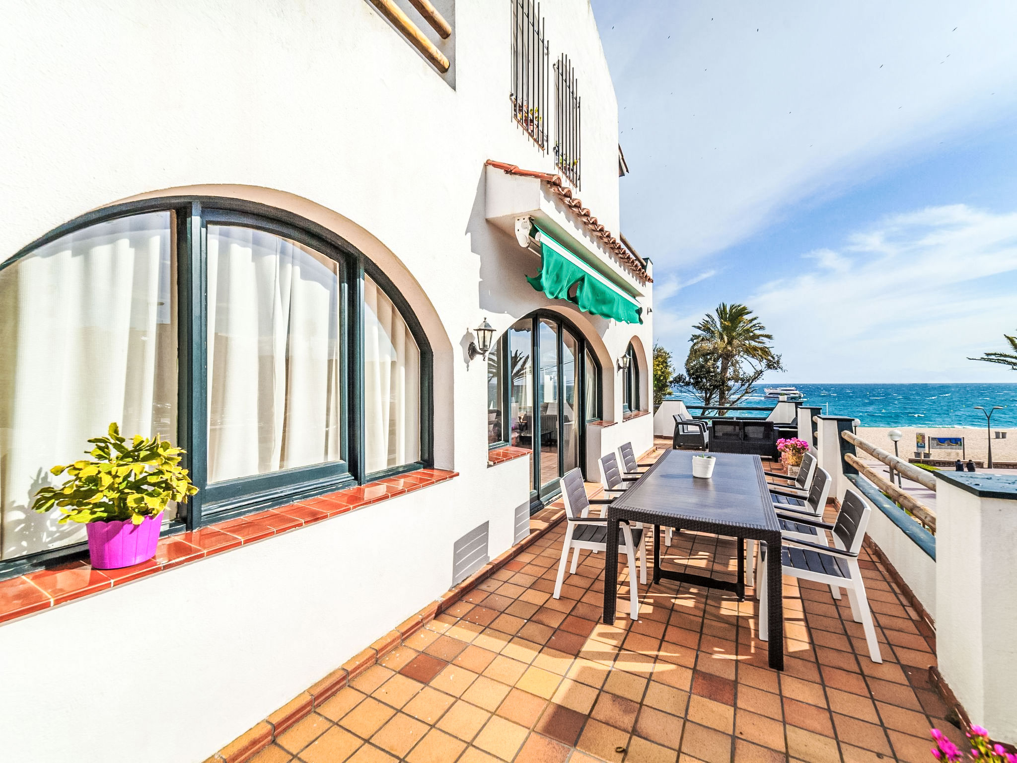 "Platja", 5-Zimmer-Haus 140 m2. Geräumig und hell, zweckmässig und komfortabel eingerichtet: Wohn-/Esszimmer mit Digital-TV. Ausgang zur Terrasse, Richtung Süden und Richtung Westen. 1 Doppelzimmer mit 1 franz. Bett (160 cm, Länge 200 cm). 1 Doppelzimmer mit 1 franz. Bett (160 cm, Länge 200 cm). 1 Zimmer mit 2 x 2 Etagenbetten. 1 Doppelzimmer mit 2 Betten (90 cm, Länge 190 cm). Grosse Küche (5 Kochplatten, Backofen, Geschirrspüler, Toaster, Wasserkocher, Mikrowelle, Tiefkühler, elektrische Kaffeemaschine) mit Esstisch. 2 Bäder/WC. Grosse Terrasse. Terrassenmöbel, Gartengrill, Liegestühle. Panoramasicht auf das Meer. Zur Verfügung: Waschmaschine, Bügeleisen, Kinderhochstuhl, Babybett bis 2 Jahre, Haartrockner. Internet (Wireless LAN, gratis). Bitte beachten: geeignet für Familien. TV nur ES. Wenn der älteste Reisende jünger als 30 Jahre ist, muss die Buchung angefragt werden. Ohne Bestätigung kann der Zugang zur Ferienwohnung bzw. -haus verwehrt werden. HUTG015295