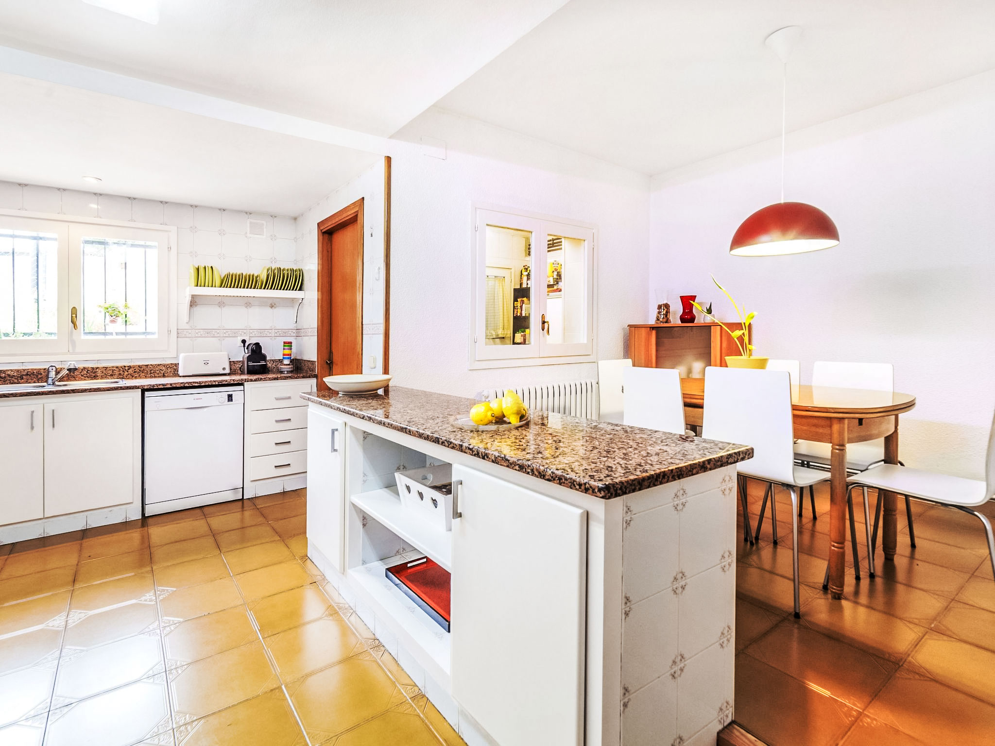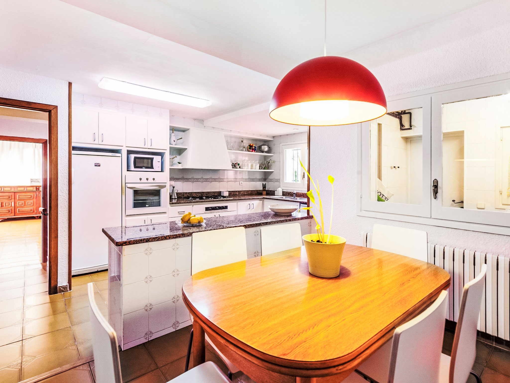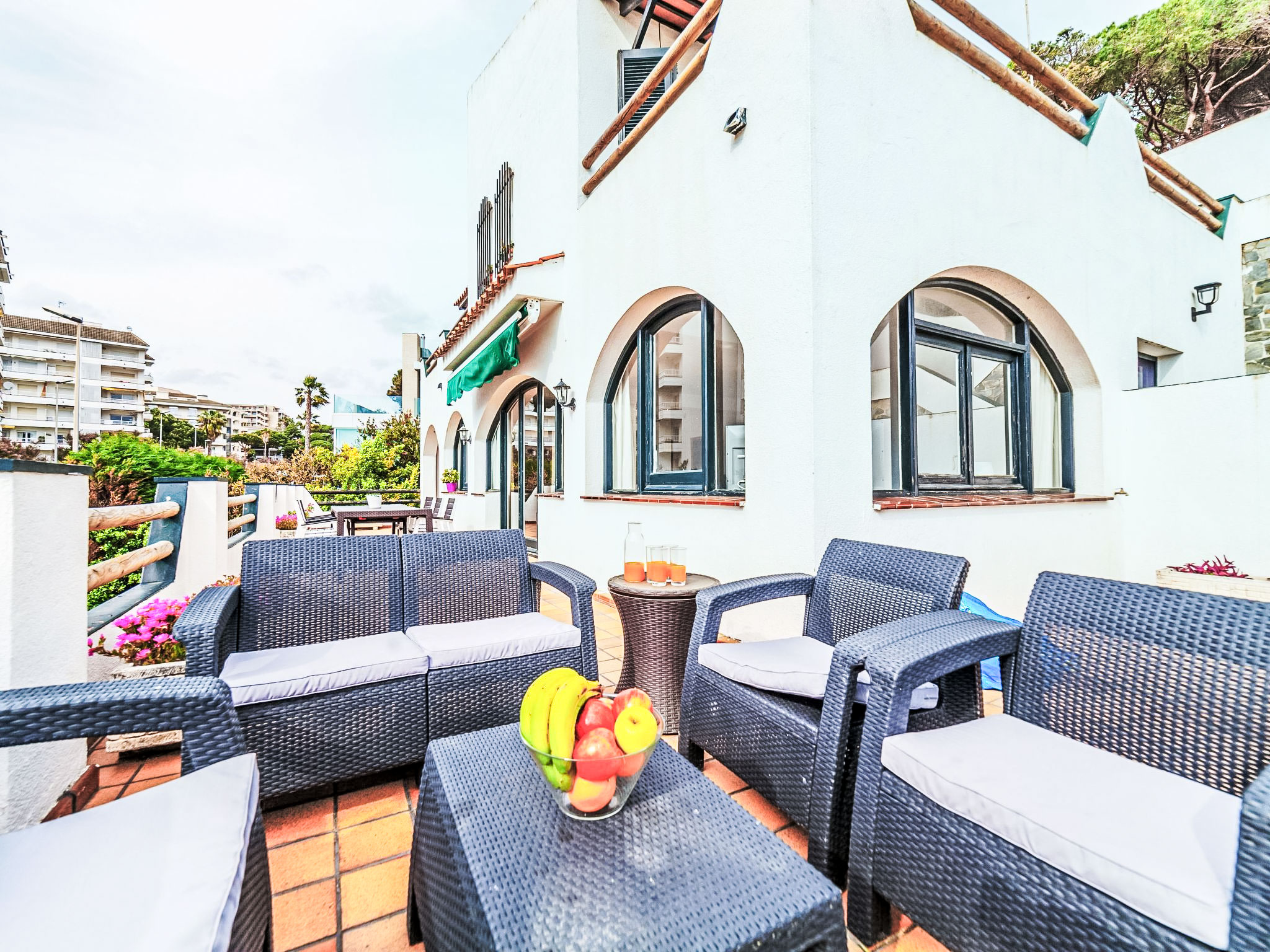 "Platja", 5-Zimmer-Haus 140 m2. Geräumig und hell, zweckmässig und komfortabel eingerichtet: Wohn-/Esszimmer mit Digital-TV. Ausgang zur Terrasse, Richtung Süden und Richtung Westen. 1 Doppelzimmer mit 1 franz. Bett (160 cm, Länge 200 cm). 1 Doppelzimmer mit 1 franz. Bett (160 cm, Länge 200 cm). 1 Zimmer mit 2 x 2 Etagenbetten. 1 Doppelzimmer mit 2 Betten (90 cm, Länge 190 cm). Grosse Küche (5 Kochplatten, Backofen, Geschirrspüler, Toaster, Wasserkocher, Mikrowelle, Tiefkühler, elektrische Kaffeemaschine) mit Esstisch. 2 Bäder/WC. Grosse Terrasse. Terrassenmöbel, Gartengrill, Liegestühle. Panoramasicht auf das Meer. Zur Verfügung: Waschmaschine, Bügeleisen, Kinderhochstuhl, Babybett bis 2 Jahre, Haartrockner. Internet (Wireless LAN, gratis). Bitte beachten: geeignet für Familien. TV nur ES. Wenn der älteste Reisende jünger als 30 Jahre ist, muss die Buchung angefragt werden. Ohne Bestätigung kann der Zugang zur Ferienwohnung bzw. -haus verwehrt werden. HUTG015295