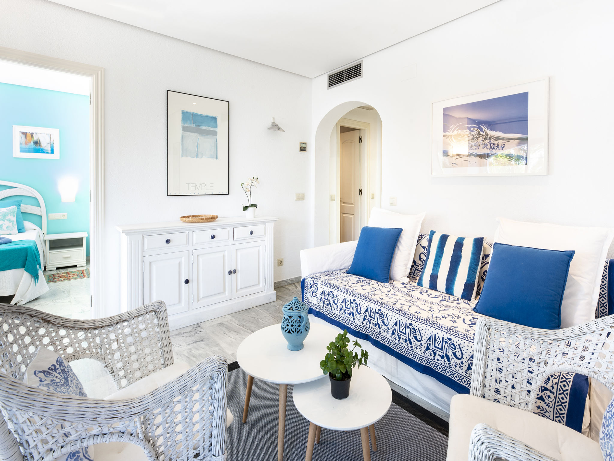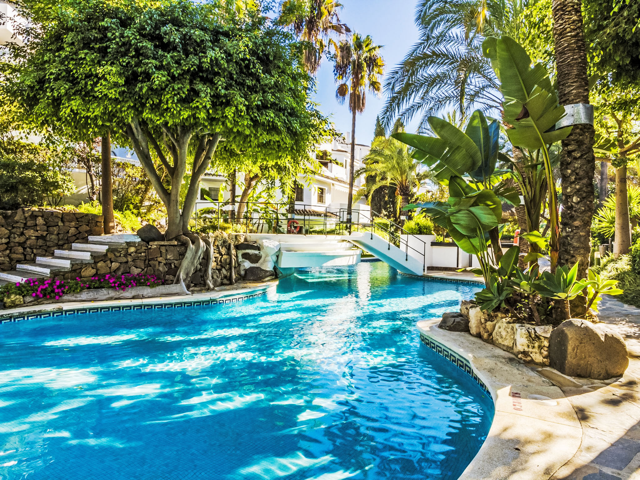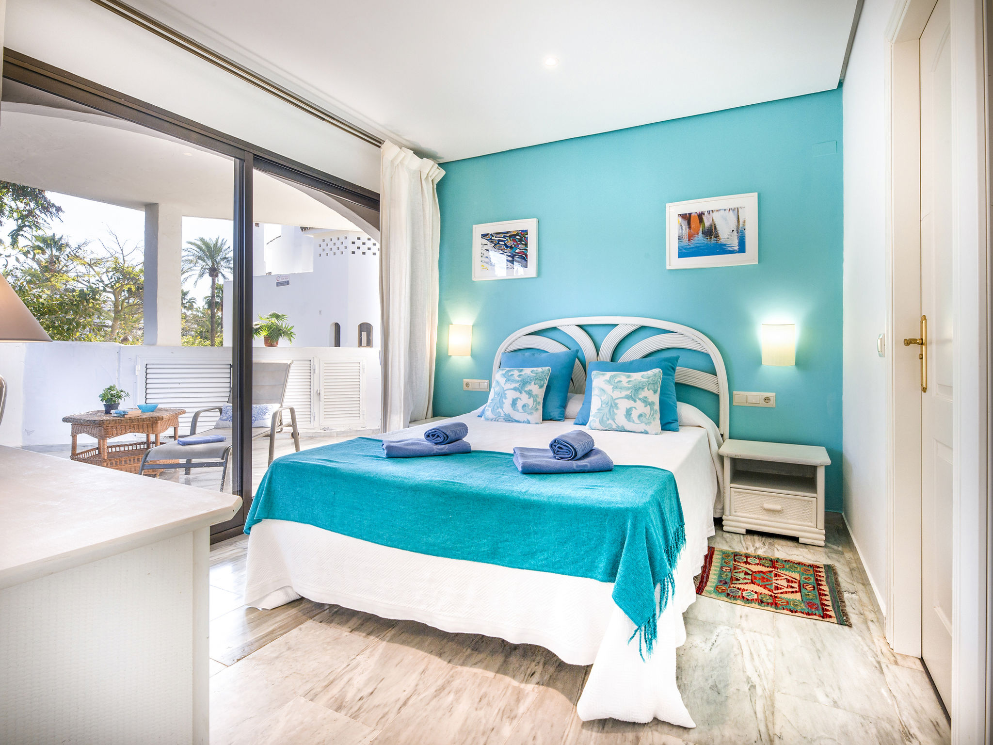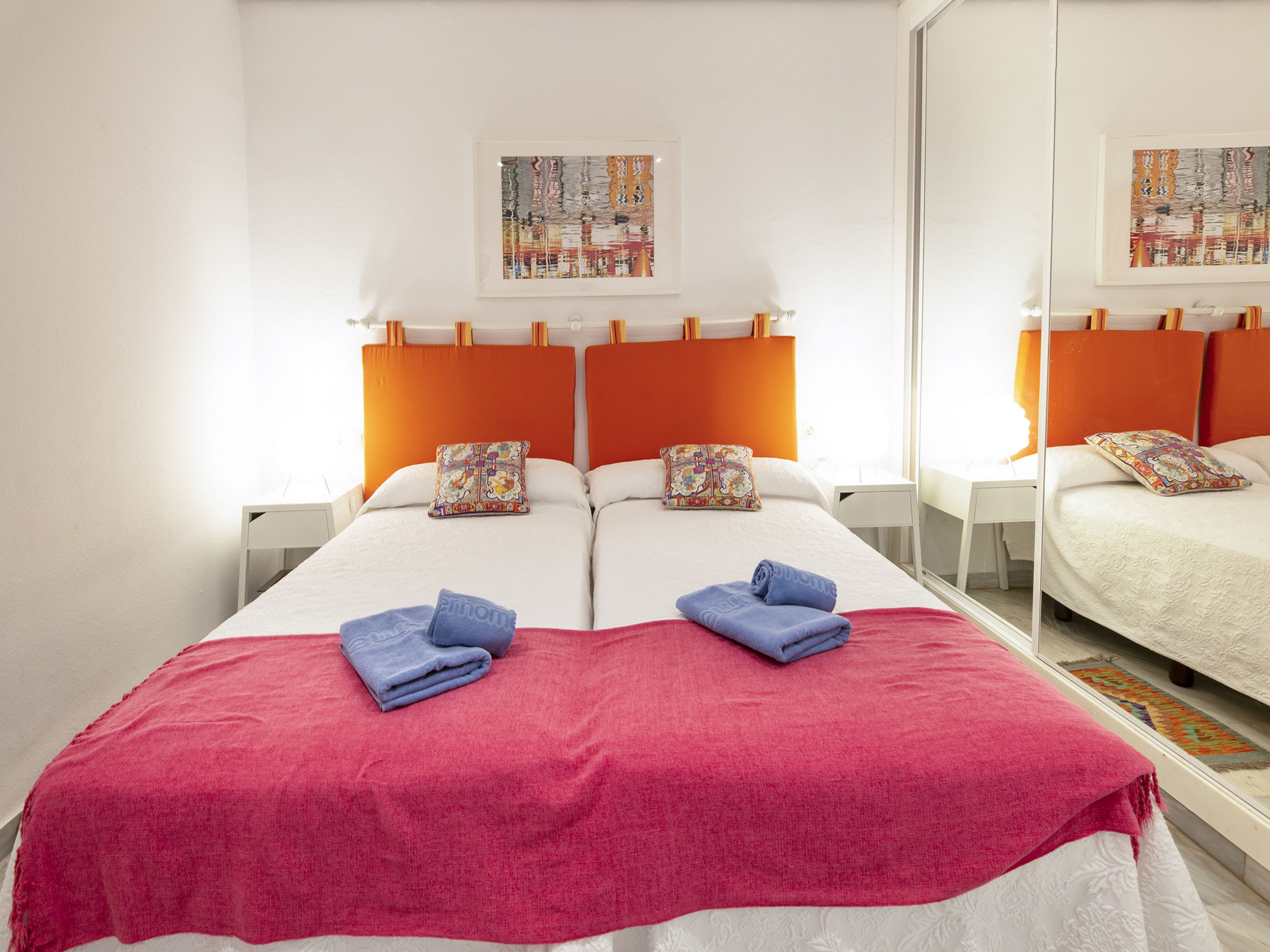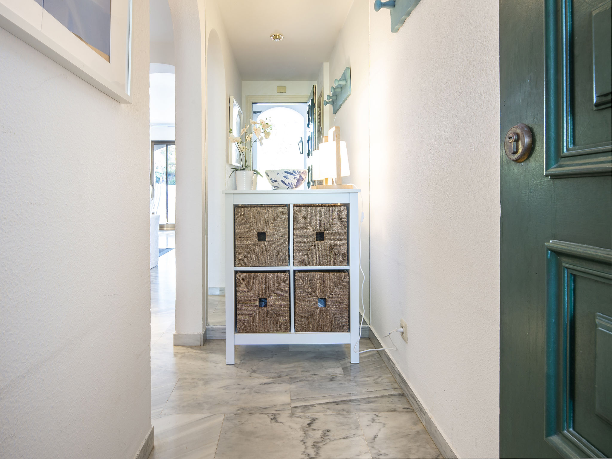 Modernes, schönes, gemütliches Appartementhaus "Golden beach". 13 km vom Zentrum von Marbella, 23 km vom Zentrum von Puerto Banus, im Bezirk Elviria, 150 m vom Meer, 150 m vom Strand, Richtung Südosten. Zur Mitbenutzung: grosser Terrassengarten mit Rasen, 2 Schwimmbäder nierenförmig (saisonale Verfügbarkeit: 01.Jun.-30.Sep. Öffnungszeiten Schwimmbad: 08:00-21:00). Kinderbecken, Aussendusche, öffentliche Parkplätze auf der Strasse. Supermarkt 800 m, Einkaufszentrum 900 m, Restaurant, Bar 300 m, Bäckerei 900 m, Café, Biergarten 300 m. Golfplatz (18 Loch) 4 km. Bitte beachten: geeignet für Familien, Babyausstattung (inkl.). Residenz ist 24 Std. überwacht.