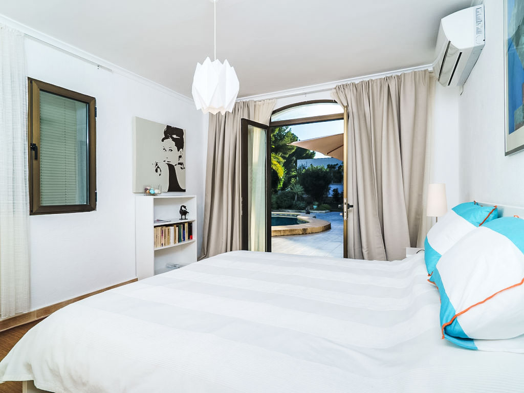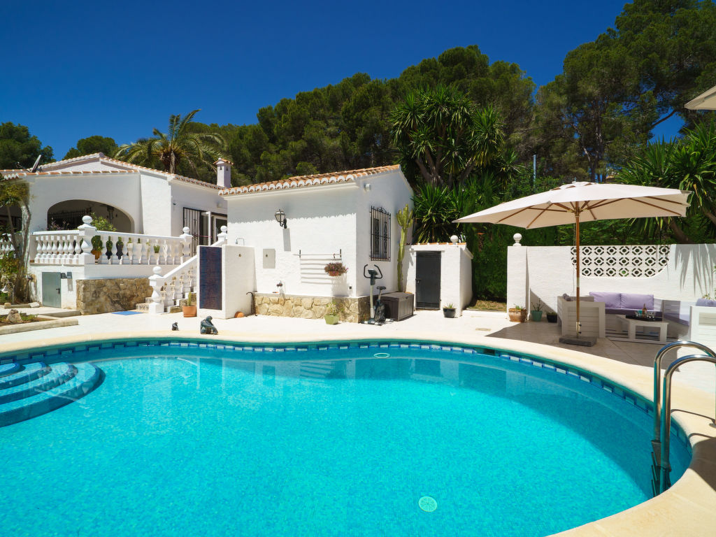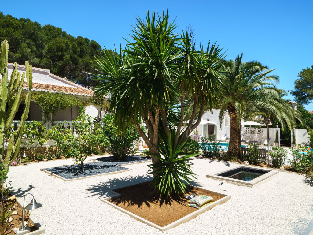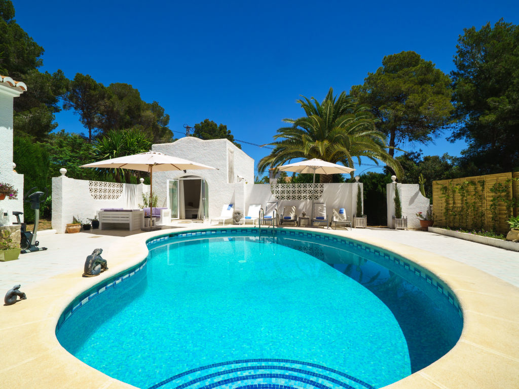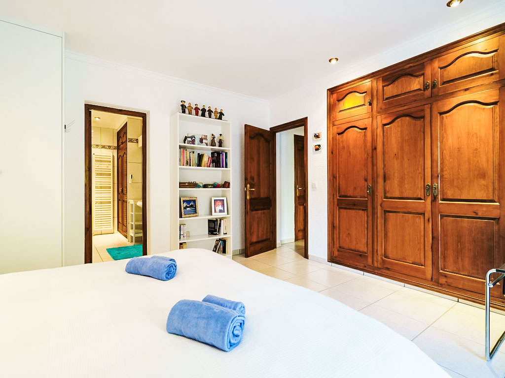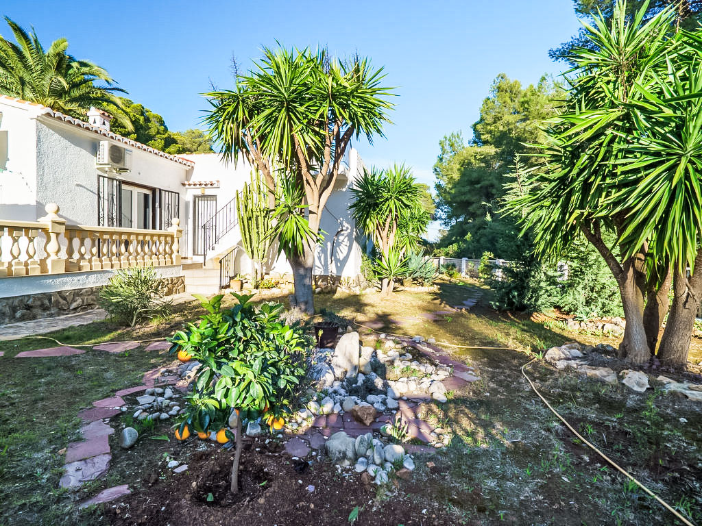 Villa "El Palmeral". Im Ortsteil Panorama, ruhige, sonnige Lage, 3 km vom Meer. Zur Alleinbenutzung: Garten 1'400 m2 (eingezäunt) mit Pflanzen und Bäumen, Schwimmbad nierenförmig, nicht einsehbar (4 x 8 m, 70 - 250 cm tief, 01.01.-31.12.) mit Innentreppe. Aussendusche. Im Hause: Dachterrasse, Zentralheizung. Supermarkt 2 km, Restaurant 800 m, Sandstrand "Arenal" 3 km. Tennis 800 m. Jugendgruppen nur auf Anfrage.