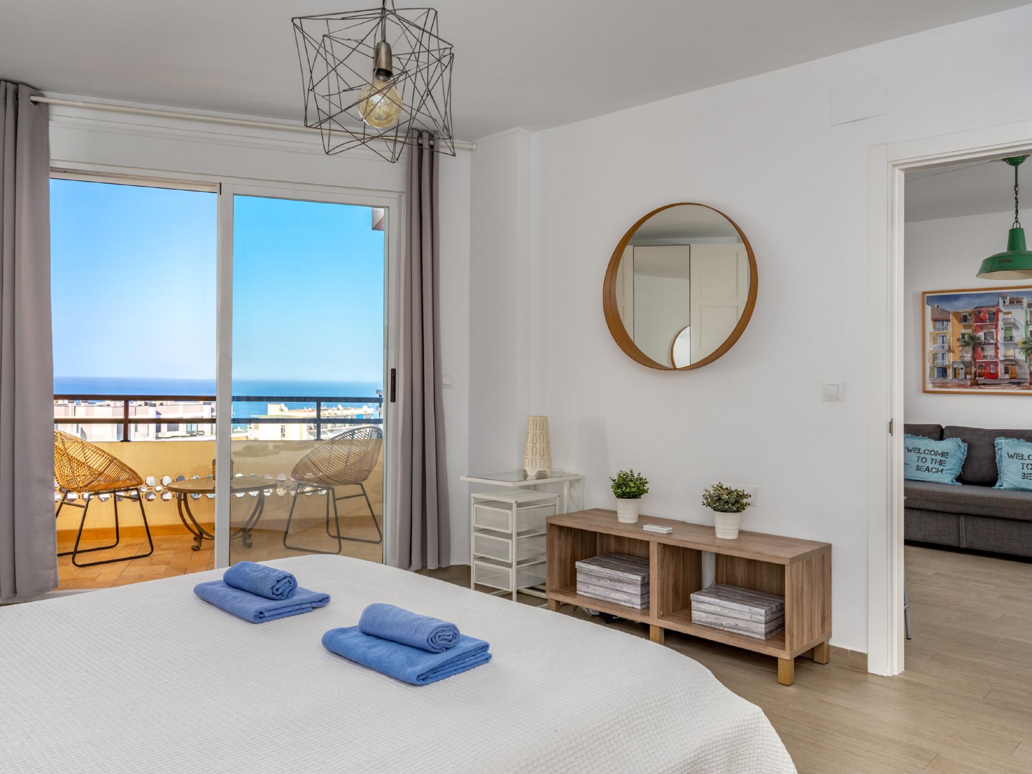 2-Zimmer-Wohnung 64 m2 im 6. Stock. Objekt geeignet für 2 Erwachsene + 2 Kinder. Schön und modern eingerichtet: Wohn-/Esszimmer mit 1 Doppeldiwanbett, Digital-TV, Flachbildschirm, Klimaanlage und Warmluftheizung. 1 Zimmer mit 1 franz. Bett, Klimaanlage und Warmluftheizung. Offene Küche (Backofen, Geschirrspüler, 3 Induktionskochplatten, Mikrowelle, Tiefkühler, elektrische Kaffeemaschine). Dusche/Bidet/WC. 2 Terrassen 8 m2. Terrassenmöbel. Sicht auf das Meer. Zur Verfügung: Waschmaschine. Geeignet für Familien. VFT/MA/13286