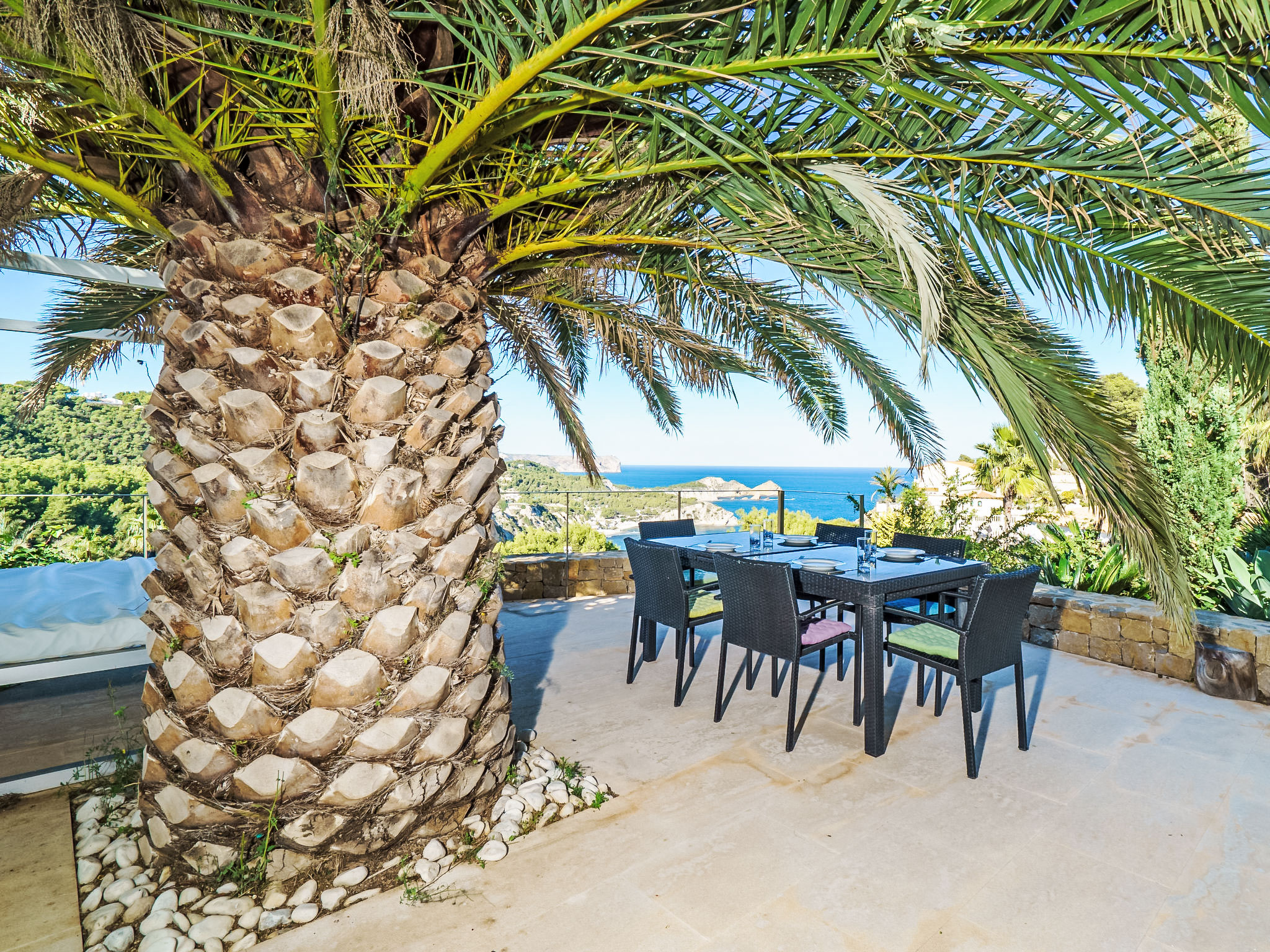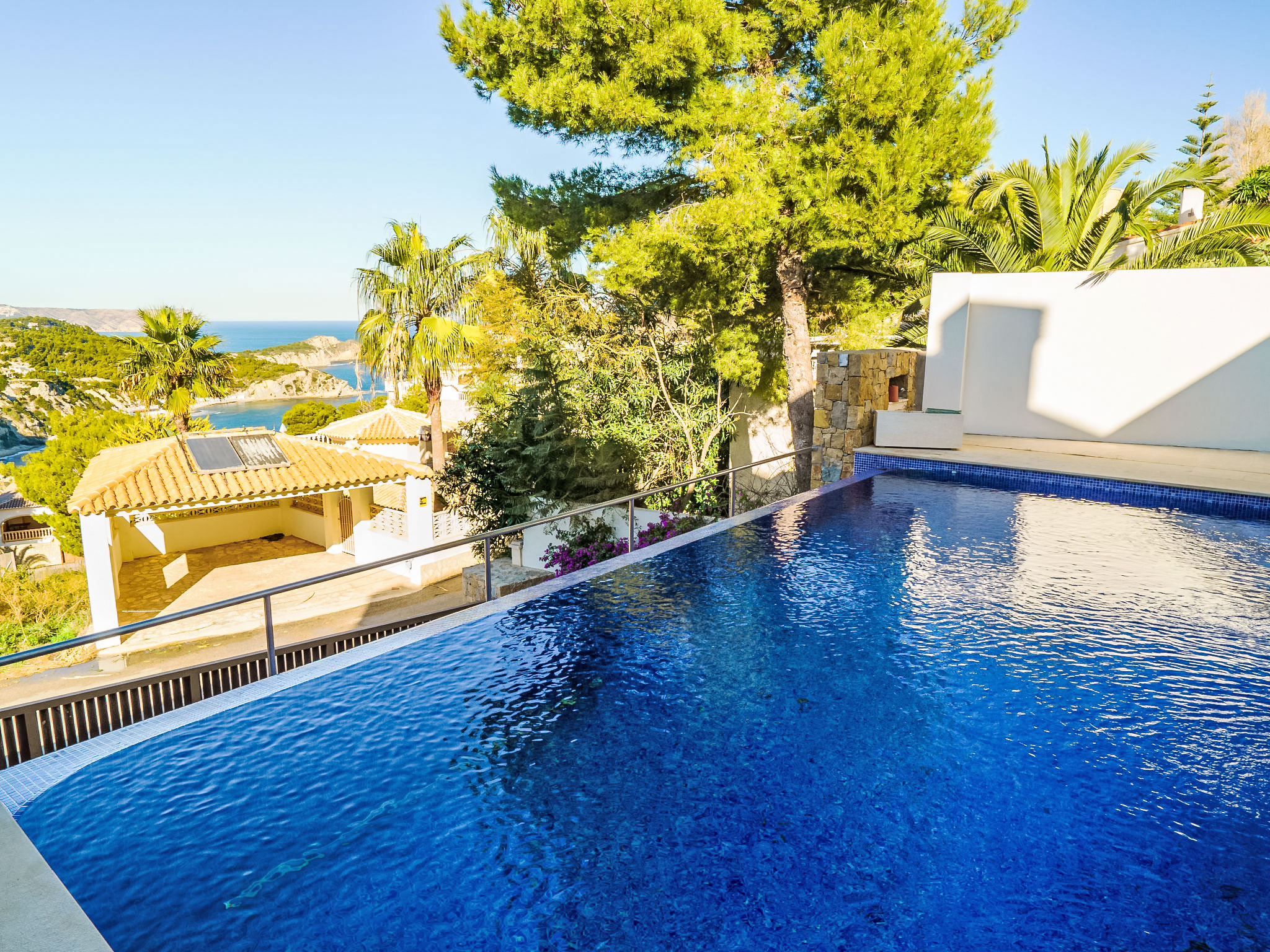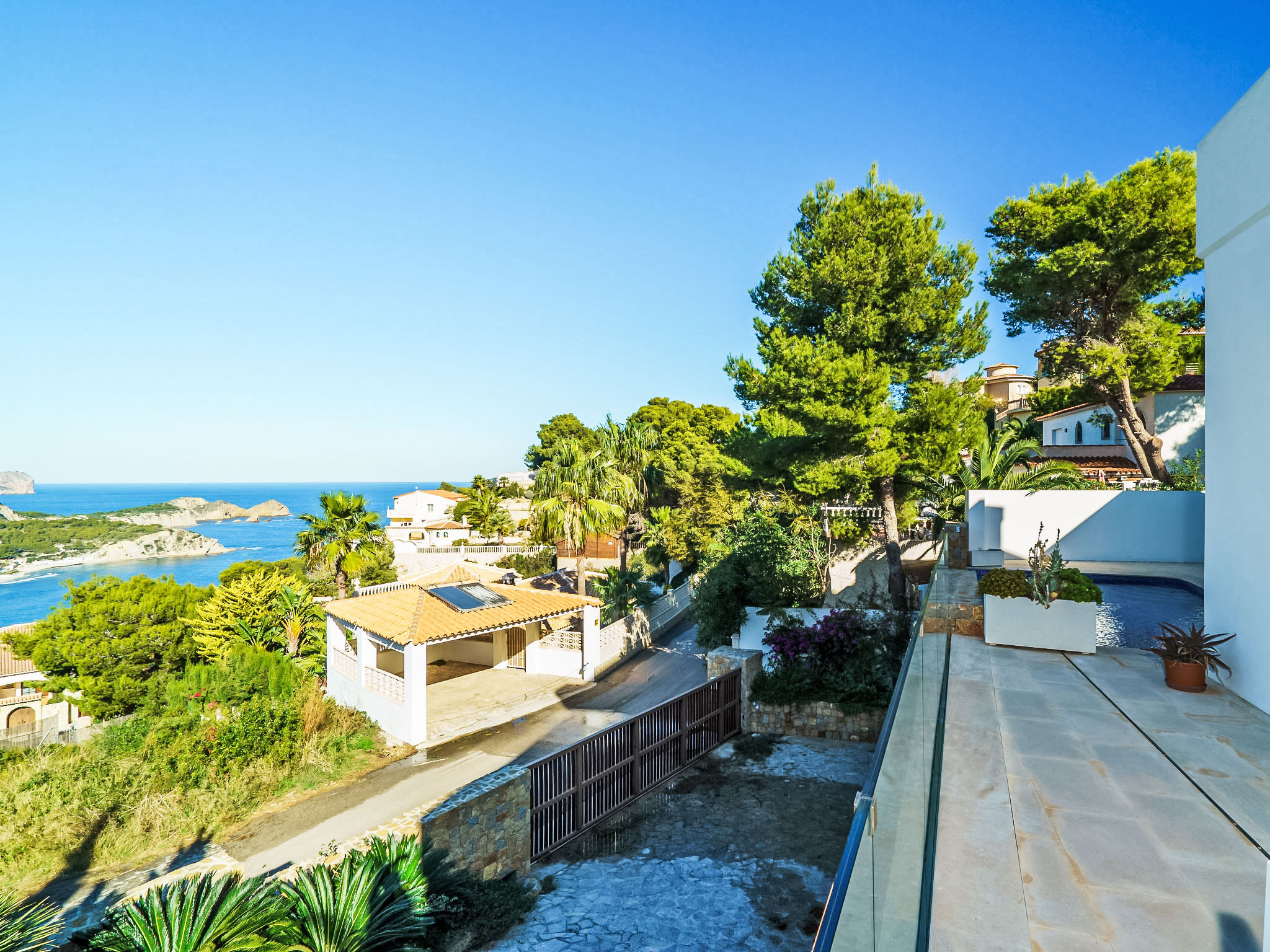 Moderne, luxuriöse Villa "Solymar", auf 3 Stockwerken. Im Ortsteil Balcón al Mar, ruhige, sonnige Lage, 5 km vom Meer. Zur Alleinbenutzung: Garten 800 m2 (eingezäunt) mit Pflanzen, Schwimmbad (4 x 8 m, 01.01.-31.12.) mit Innentreppe. Dusche/WC im Poolbereich. Supermarkt 6 km, Restaurant 800 m, Sandstrand "Arenal" 8 km, Felsstrand "Granadella" 5 km. Jugendgruppen nur auf Anfrage.