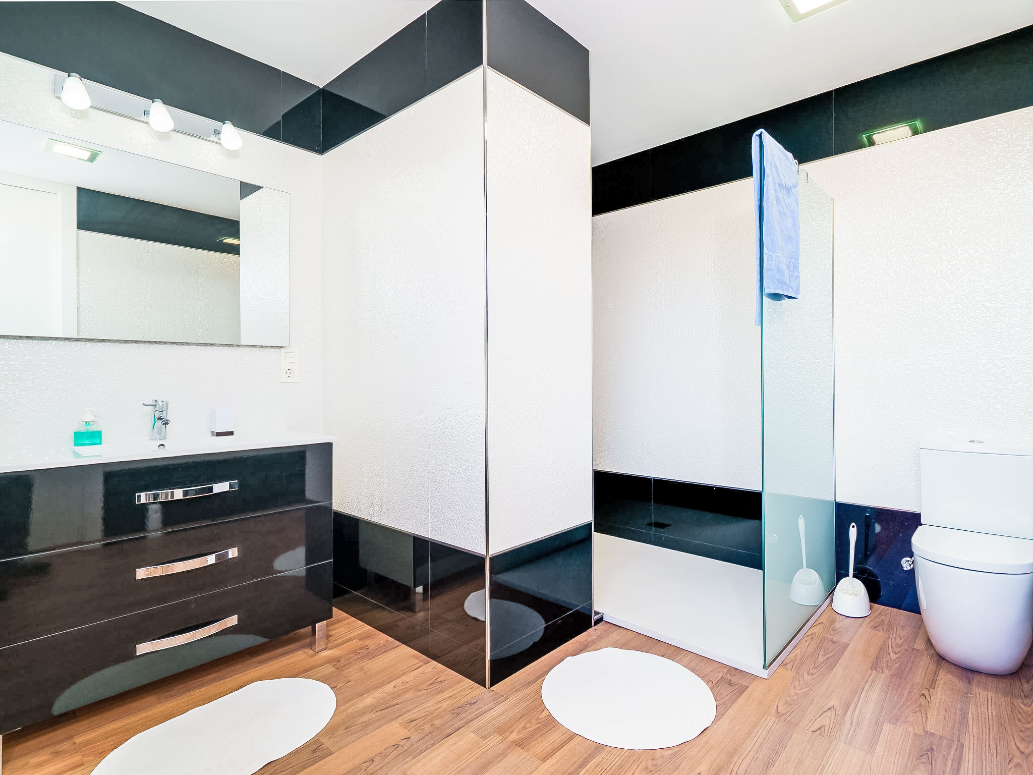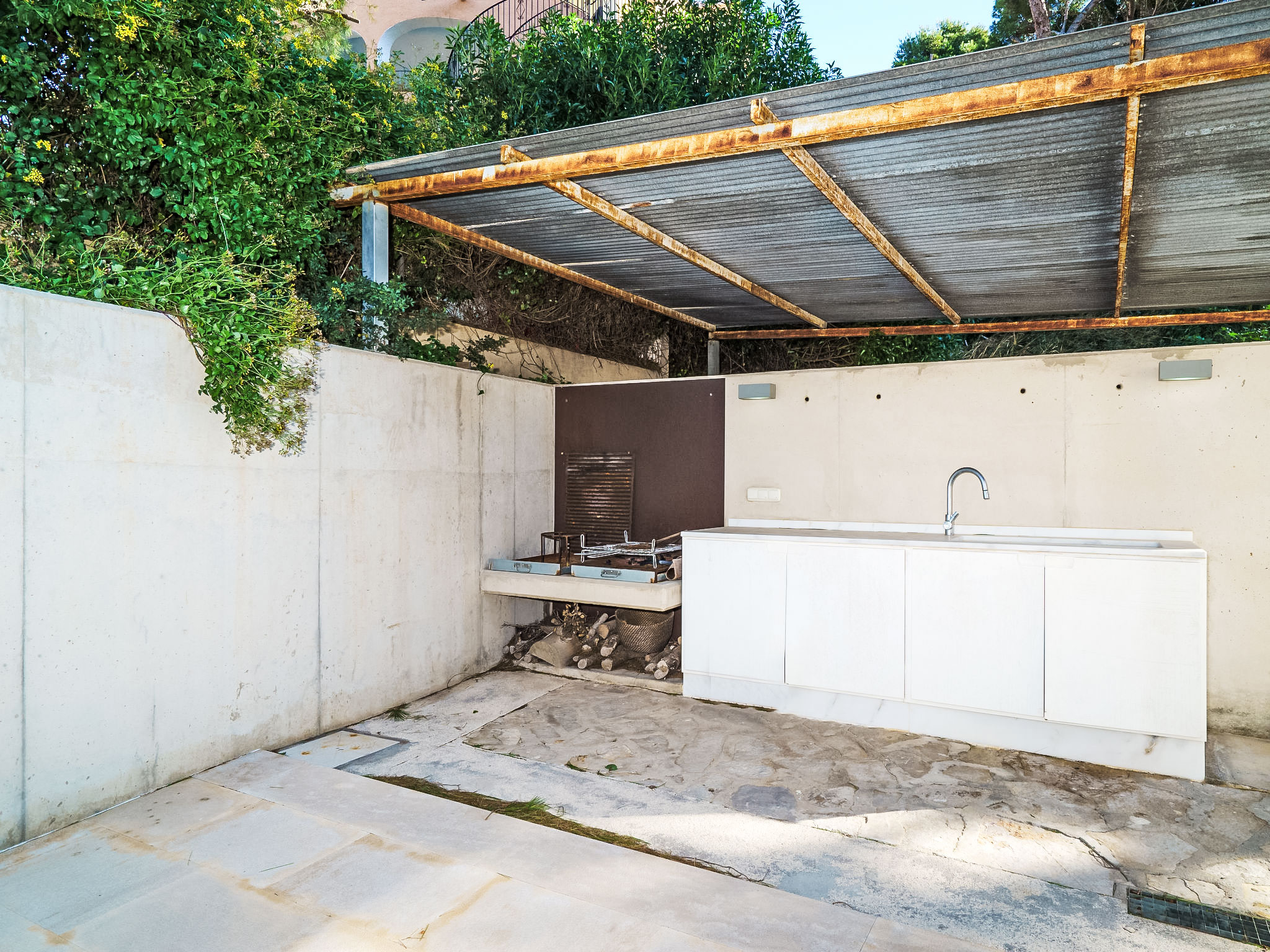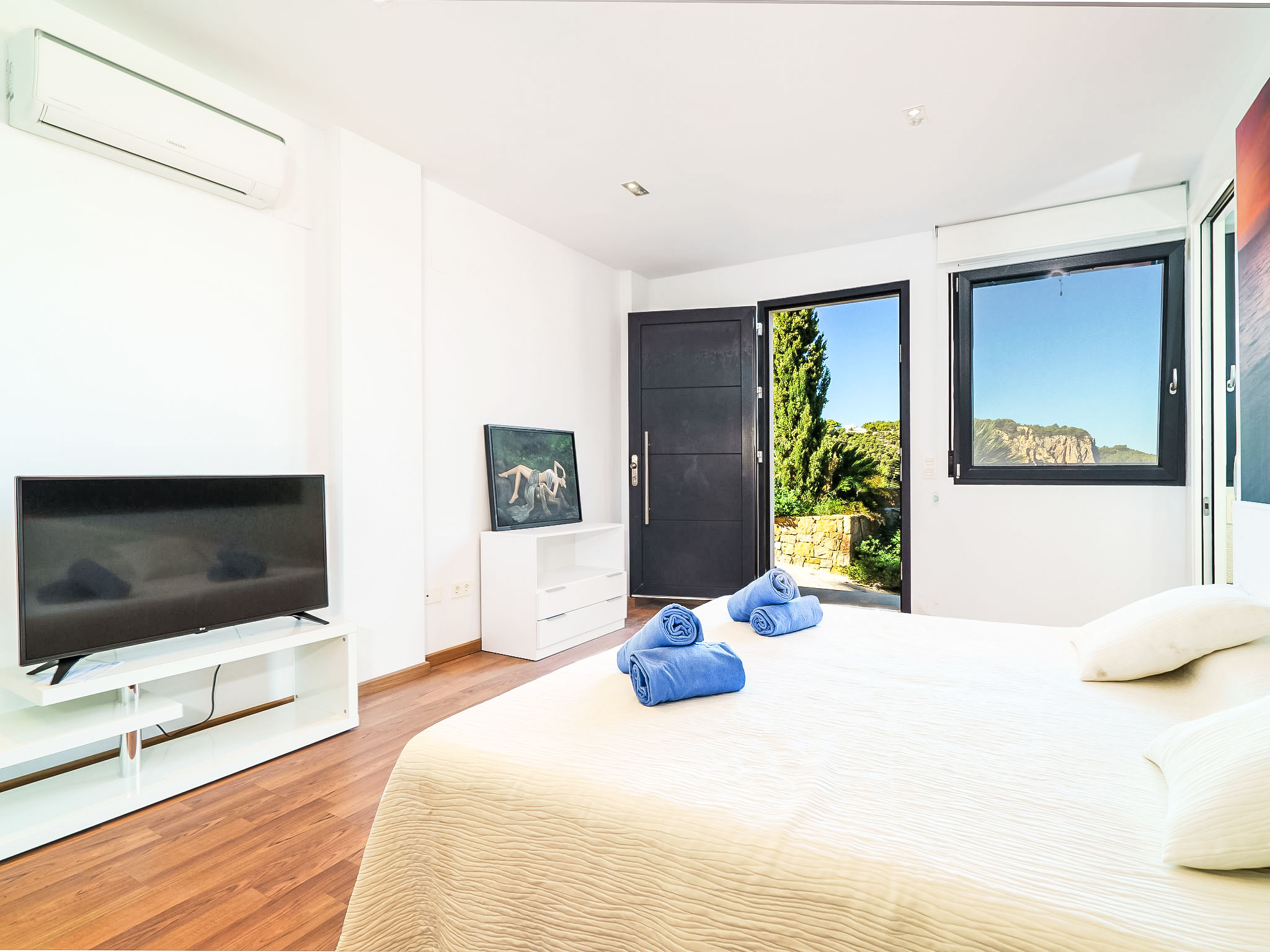 4-Zimmer-Villa 280 m2. Modern und geschmackvoll eingerichtet: Wohn-/Esszimmer mit offenem Kamin und Sat-TV (Flachbildschirm), Klimaanlage. Ausgang zur Terrasse. 1 Zimmer mit 1 franz. Bett. Grosse, offene Küche (Backofen, Geschirrspüler, 3 Induktionskochplatten, Mikrowelle, Tiefkühler). Dusche/WC. Unteres Geschoss: (Aussentreppe) 1 grosses Zimmer mit begehbarer Kleiderschrank mit 1 franz. Bett, Dusche/WC und Sat-TV (Flachbildschirm), Klimaanlage. Obergeschoss: 1 grosses Zimmer mit 1 franz. Bett, Dusche/WC, Doppelwaschbecken und Sat-TV (Flachbildschirm), Klimaanlage. Ausgang zur Terrasse. Grosse Terrasse überdacht. Terrassenmöbel, Gartengrill, Liegestühle. Herrliche Panoramasicht auf das Meer. Zur Verfügung: Waschmaschine. Internet (Wireless LAN, gratis). Parkplatz (eingezäunt, 2 Autos) beim Haus. AT459703A