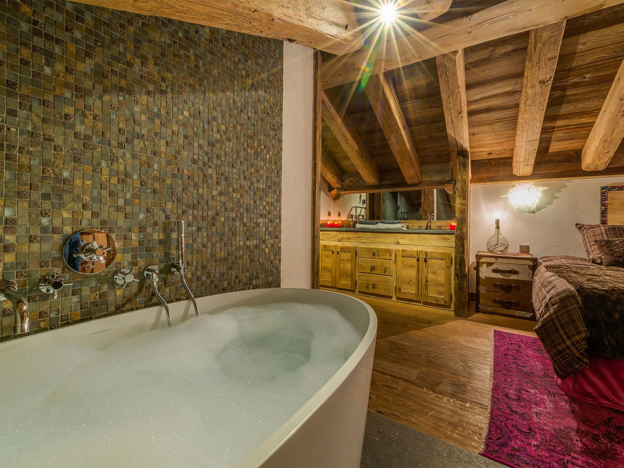 "Denali", 5-Zimmer-Chalet 120 m2 auf 3 Stockwerken. Geschmackvoll und mit viel Holz eingerichtet: 3 Zimmer, jedes Zimmer mit 1 Doppelbett und Dusche/WC. Obergeschoss: Wohn-/Esszimmer mit offenem Kamin, Esstisch und Sat-TV. Ausgang zur Terrasse. Offene Küche (Backofen, Geschirrspüler, 4 Glaskeramikherd Platten, Toaster, Wasserkocher, Mikrowelle, elektrische Kaffeemaschine). 2. Obergeschoss: abgeschrägt 1 abgeschrägtes Zimmer mit 1 Doppelbett und Bad/Dusche/WC. E-Heizung. Holzböden, Natursteinböden. Terrasse. Zur Verfügung: Internet (Wireless LAN, gratis). Bitte beachten: Nichtraucher-Haus.