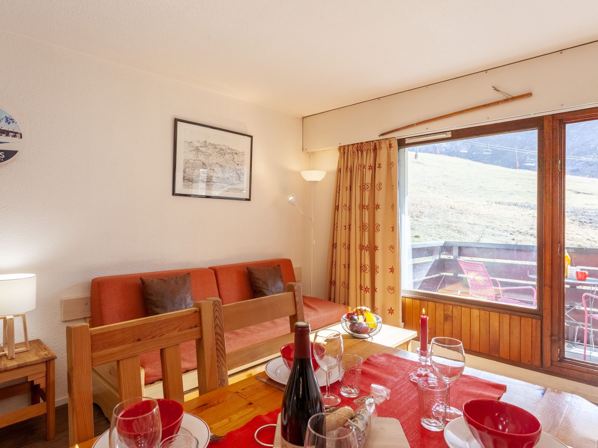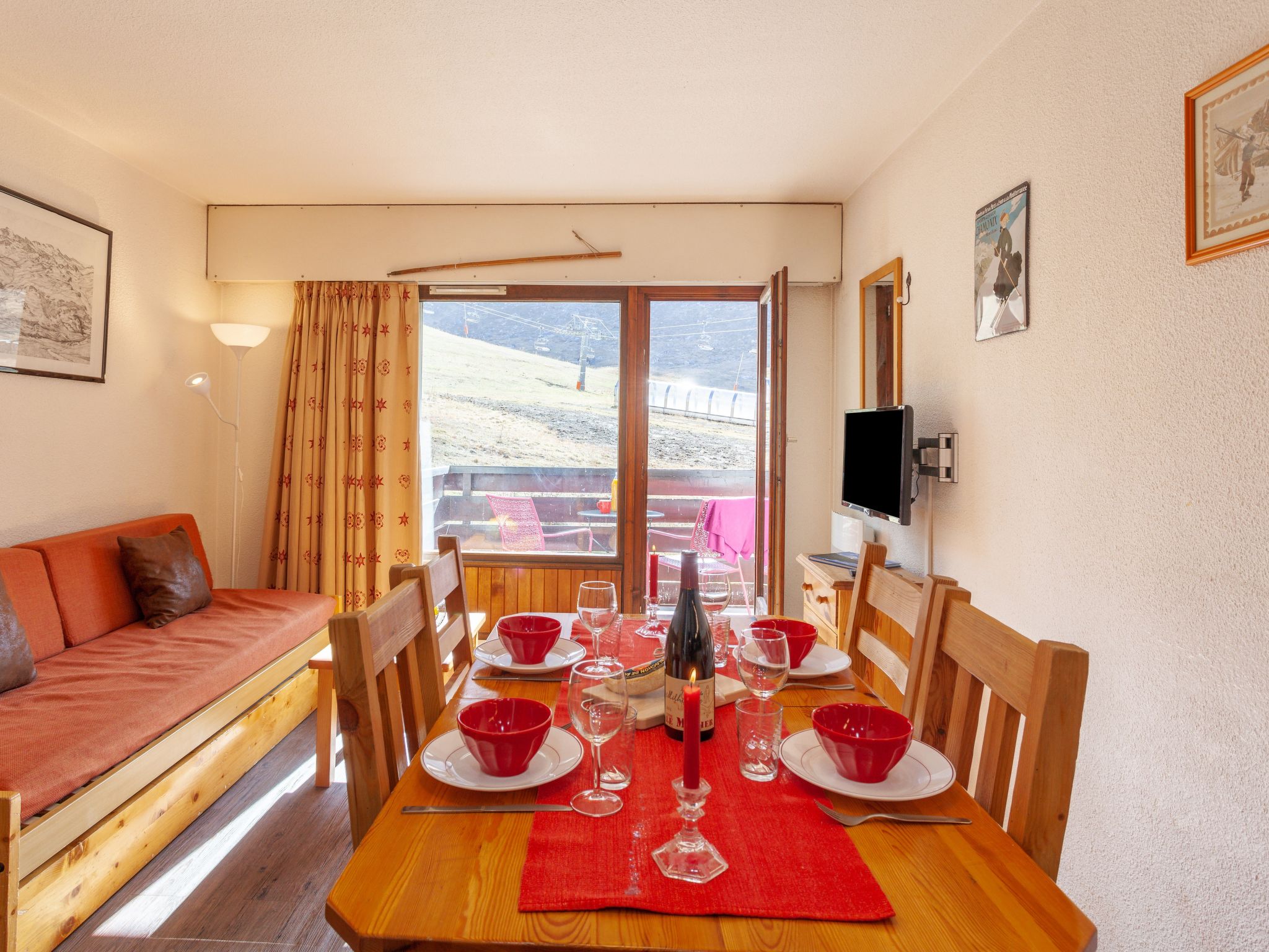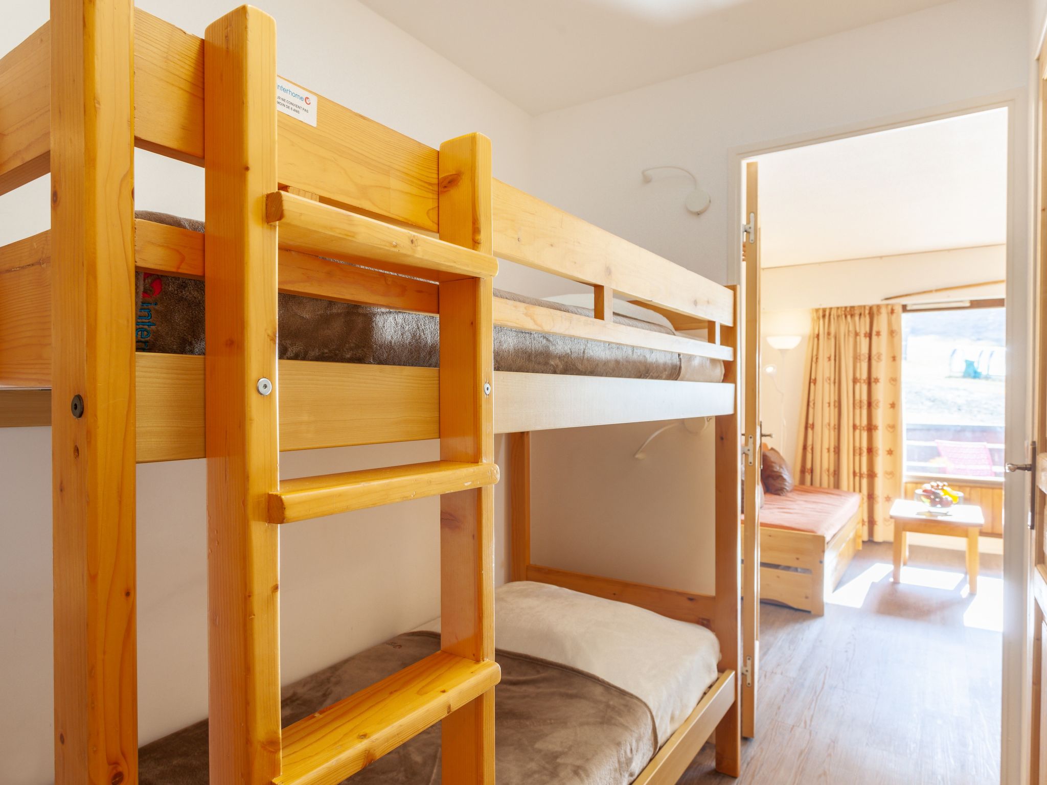 1-Zimmer-Wohnung 24 m2 im 2. Stock. Zweckmässig und schön eingerichtet: Wohn-/Esszimmer mit 1 Ausziehbett (2 Pers. 2 x 80 cm), TV (Flachbildschirm). Ausgang zum Balkon, Richtung Süden. Eingang mit 1 x 2 Etagenbetten (80 cm, Länge 190 cm). Kochnische (4 Kochplatten, Mini-Backofen, Backofen, Geschirrspüler, Mikrowelle, elektrische Kaffeemaschine). Bad/WC. E-Heizung. Balkon, Südlage. Terrassenmöbel. Schöne Panoramasicht auf die Berge und die Skipiste. Zur Verfügung: Internet (Wireless LAN, extra). Bitte beachten: Nichtraucher-Unterkunft. Rauchmelder. Inserat einer Privatperson nach Artikel 155, IV, CGI.