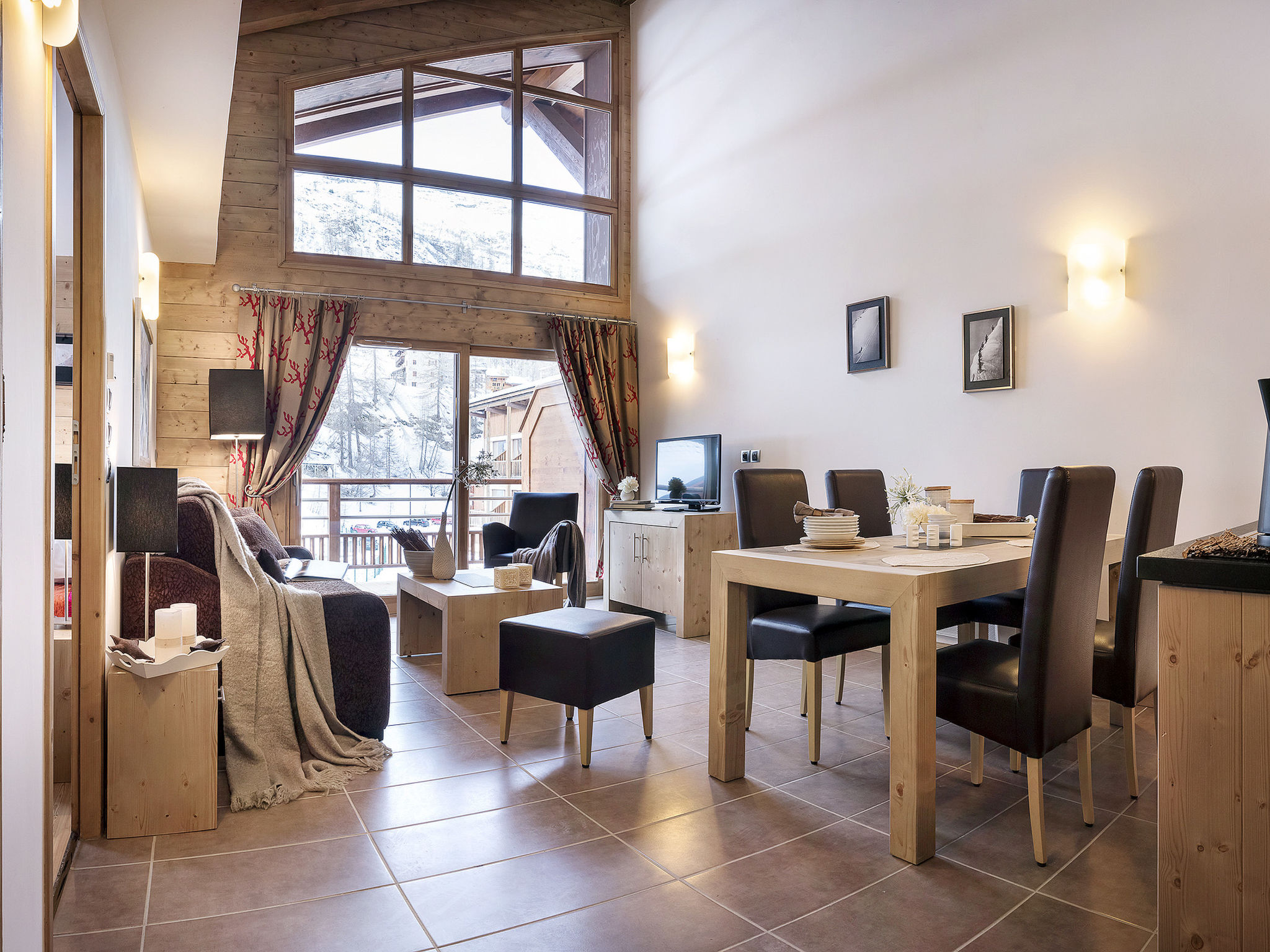 Les Boisses 5 km von Tignes: Schöne, rustikale, komfortable Residenz "CGH Résidence & Spa KALINDA VILLAGE". 6 Häuser in der Residenz. 132 Wohnungen in der Residenz. Im Ortsteil Tignes Les Boisses, 5 km vom Zentrum von Tignes Le Lac, direkt am Skigebiet. Zur Mitbenutzung: Hallenbad beheizt (17 x 9 m, saisonale Verfügbarkeit: 01.Jan.-31.Dez.). Kinderbecken. In der Anlage: Empfang, Aufenthaltsraum, Wireless LAN, Sauna, Fitnessraum, Massage (extra). Dampfbad, Sprudelbad, Billard, Fahrstuhl, Skiraum, Waschmaschine, Wäschetrockner (zur Mitbenutzung, extra), Skischuhtrockner. Brötchenservice. Abstellraum vorhanden. Gemeinschaftsgarage (extra). Maße: Höhe 190 cm. Supermarkt 4 km, Restaurant 50 m, Bahnstation "Bourg Saint Maurice" 33 km, See Lac du Chevril 300 m. Golfplatz (18 Loch) 6.5 km, Gondelbahn, Skipisten 100 m. Bekannte Skigebiete sind gut erreichbar: Tignes – Val d'Isère (Espace Killy). Bitte beachten: Babyausstattung auf Anfrage (inkl.). Bei guter Schneelage Zufahrt mit den Skiern bis zum Haus. Das Foto ist nur ein Wohnungsbeispiel. Die Mietobjekte können sich in Wohnfläche, Raumaufteilung, Ausstattung und Einrichtung unterscheiden.