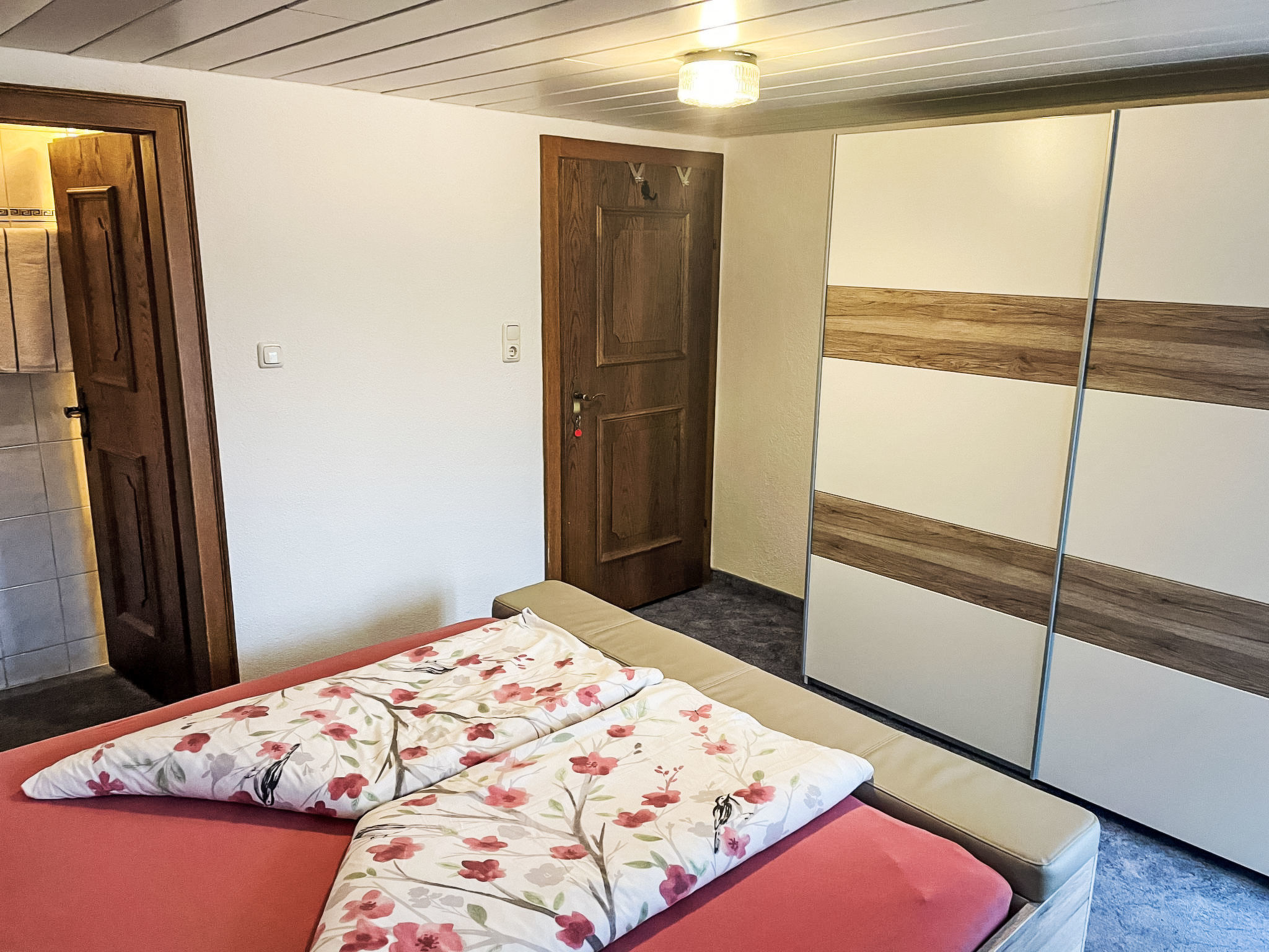 5-Zimmer-Wohnung, 2. Etage (leichte Dachschräge), ca. 80 m². Aufenthaltsraum mit Essplatz, offener Durchgang zur Küche (4 Ceranfelder, Backofen, Mikrowelle, Geschirrspüler, Kühlschrank, Kaffeemaschine, Wasserkocher, Toaster) mit Balkonausgang. 2 Doppelzimmer, jeweils mit Dusche/WC. Schlafzimmer mit Doppelbett, Bettcouch und Bad/WC. Schlafzimmer mit Doppelbett, Bettcouch und Dusche. Sep.WC. Hinweis: Bei Buchung zum Preis für 5 Personen bleiben 1 Doppelzimmer und 1 Schlafzimmer mit Doppelbett und Bettcouch verschlossen. Bei Belegung mit weniger Personen als der maximalen Personenzahl stehen nicht alle Wohneinheiten zur Verfügung.