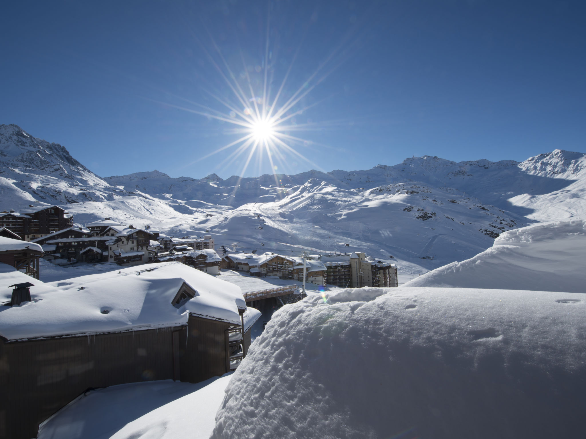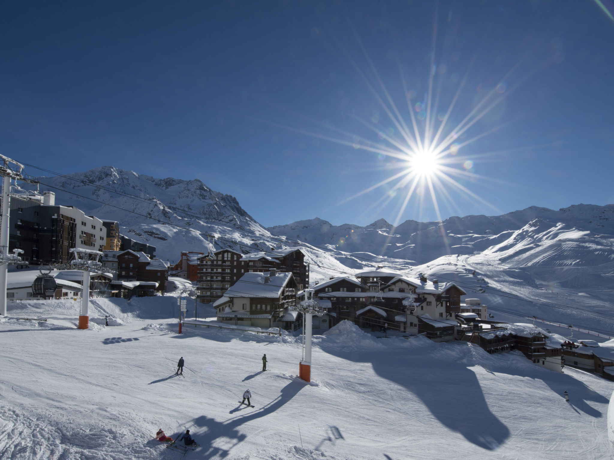 Schöne, komfortable Residenz "Le Hameau du Kashmir". 92 Wohnungen in der Residenz. 600 m vom Zentrum von Val Thorens, am Ortsrand, 17 km vom Zentrum von Saint Martin-de-Belleville, 34 km vom Zentrum von Moutiers, erhöhte Lage am Hang, direkt am Skigebiet. Zur Mitbenutzung: Hallenbad beheizt (Öffnungszeiten Schwimmbad: 10:30-20:00) mit Innentreppe. Ungleichmässige Schwimmbadform. In der Anlage: Empfang, Restaurant, Bar, Sauna, Fitnessraum, Massage (extra). Infrarotwärmekabine, Skiraum, Waschmaschine, Wäschetrockner (zur Mitbenutzung, extra), Skischuhtrockner. Brötchenservice und Frühstück möglich auf Anfrage. Abstellraum vorhanden. Gemeinschaftsgarage (extra). Einkaufsgeschäft 600 m, Bushaltestelle 50 m. Tennis, Sportzentrum 350 m, Wanderwege ab Haus, Skipisten 20 m, Skiverleih, Skischule 600 m. Bekannte Skigebiete sind gut erreichbar: Les 3 Vallées. Bitte beachten: Bei guter Schneelage Zufahrt mit den Skiern bis zum Haus. Das Foto ist nur ein Wohnungsbeispiel. Die Mietobjekte können sich in Wohnfläche, Raumaufteilung, Ausstattung und Einrichtung unterscheiden.