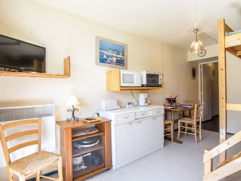 1-Zimmer-Studio 22 m2 im 5. Stock. Einfach und zweckmässig eingerichtet: Wohn-/Esszimmer mit 1 Diwanbett (130 cm, Länge 190 cm), 1 Doppeldiwanbett (140 cm, Länge 190 cm), TV (Flachbildschirm), Radio. Ausgang zum Balkon. Kleine Kochnische im Eingang (2 Kochplatten, Backofen, Mikrowelle, elektrische Kaffeemaschine, Racletteofen, Fondue Set (Käse)). Bad/WC. E-Heizung. Balkon 4 m2, Südlage. Balkonmöbel. Schöne Sicht auf die Skipiste. Zur Verfügung: Bügeleisen. Bitte beachten: Maximal 1 Haustier/Hund erlaubt. Rauchmelder. Inserat einer Privatperson nach Artikel 155, IV, CGI.