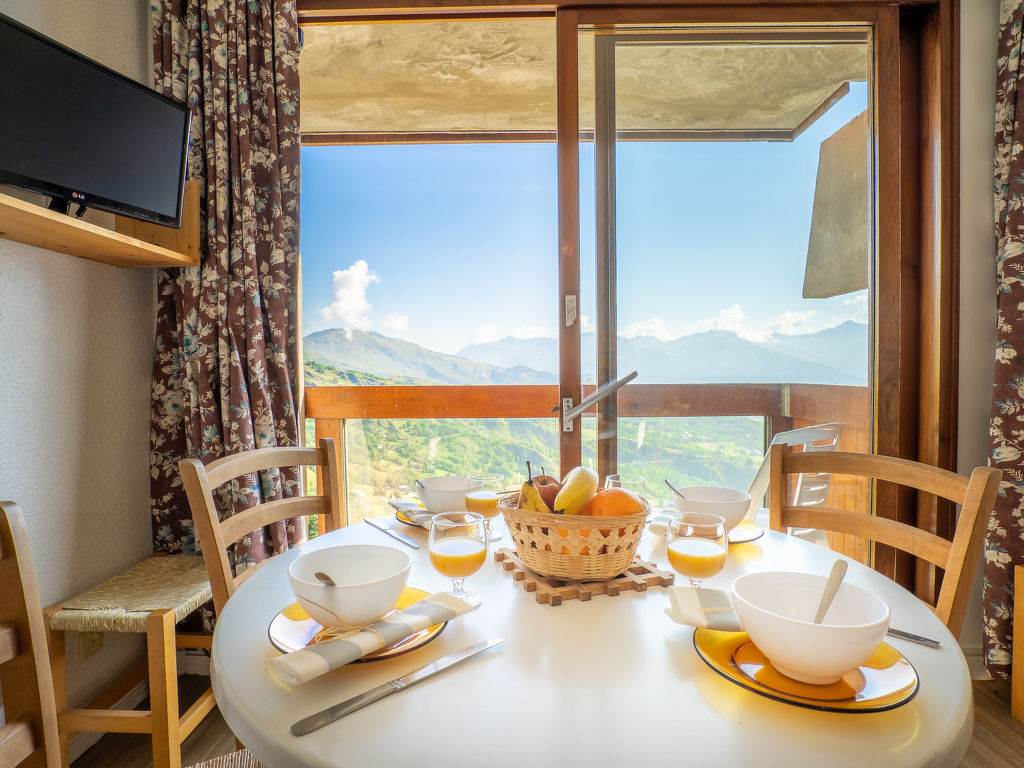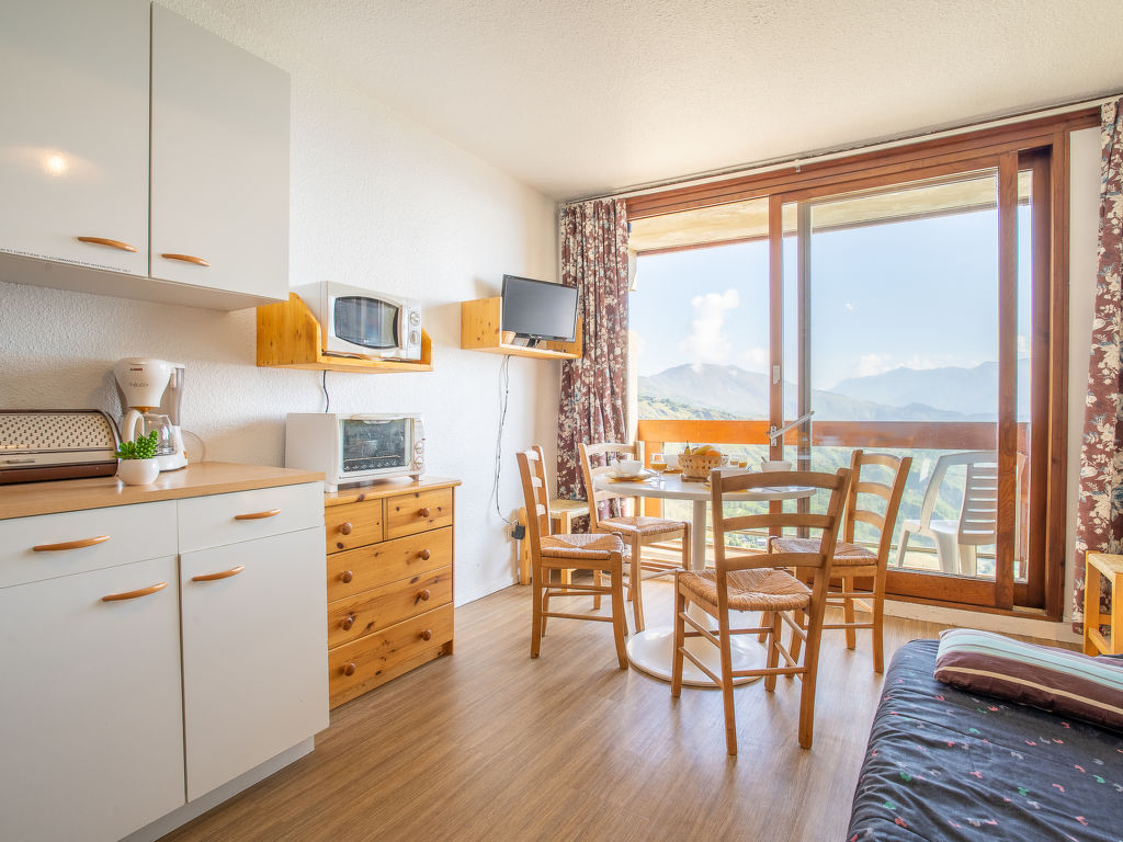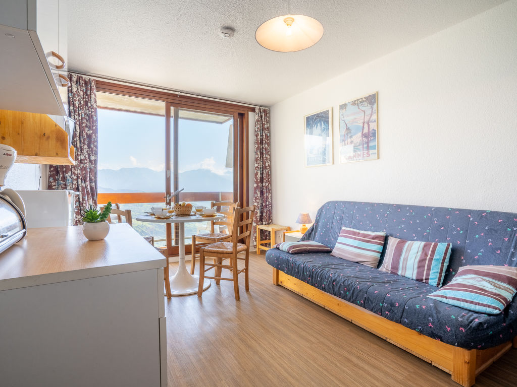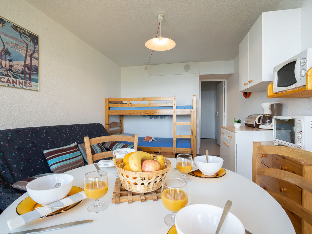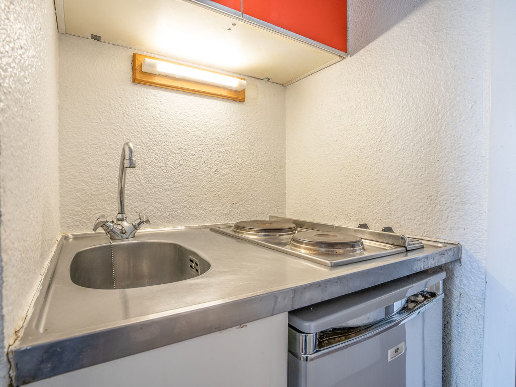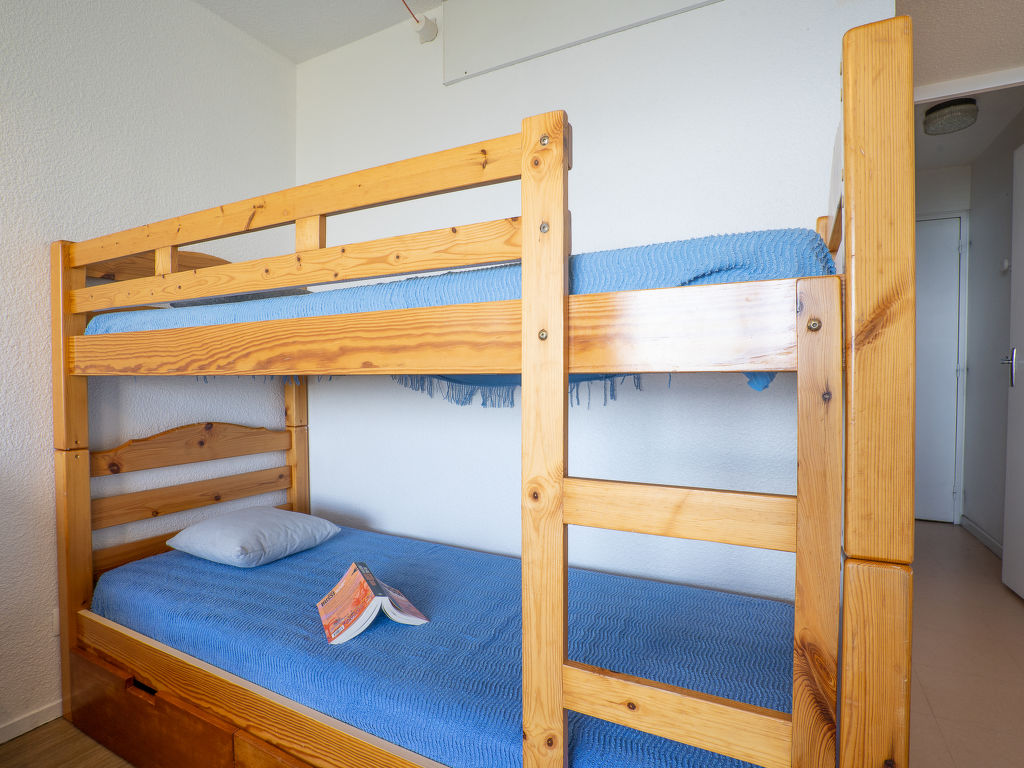 1-Zimmer-Studio 22 m2 im 17. Stock, Nordlage. Einfach und zweckmässig eingerichtet: Wohn-/Esszimmer mit 1 Doppeldiwanbett (130 cm, Länge 190 cm), 1 x 2 Etagenbetten (80 cm, Länge 190 cm), 1 Schlafmöglichkeit und TV (Flachbildschirm). Ausgang zum Balkon. Kleine Kochnische im Eingang (2 Kochplatten, Mini-Backofen, Mikrowelle, elektrische Kaffeemaschine). Bad/WC. E-Heizung. Parkettböden. Balkon 4 m2, Nordlage. Schöne Sicht auf die Berge und das Tal. Zur Verfügung: Haartrockner. Bitte beachten: Rauchmelder. Inserat einer Privatperson nach Artikel 155, IV, CGI.