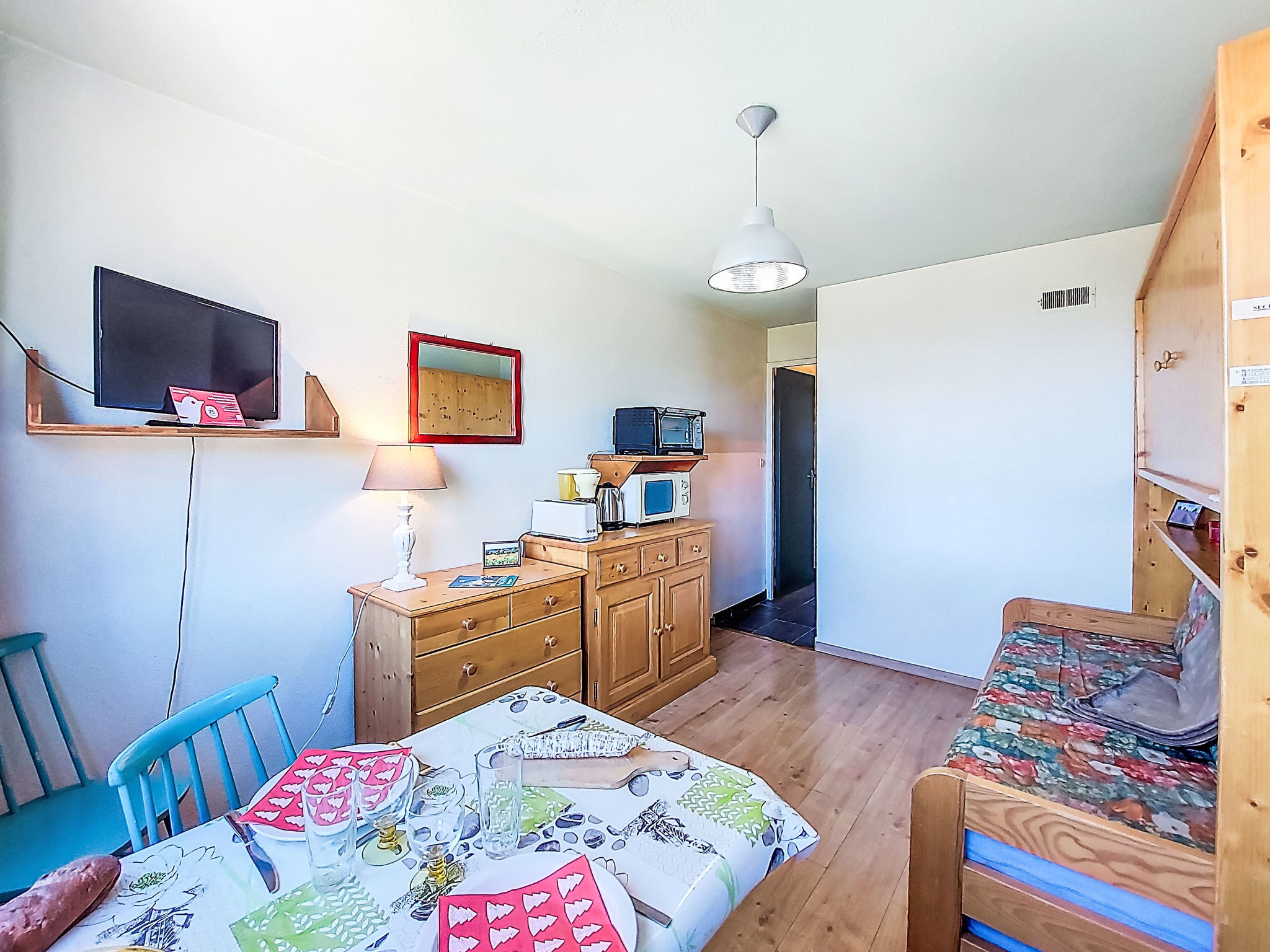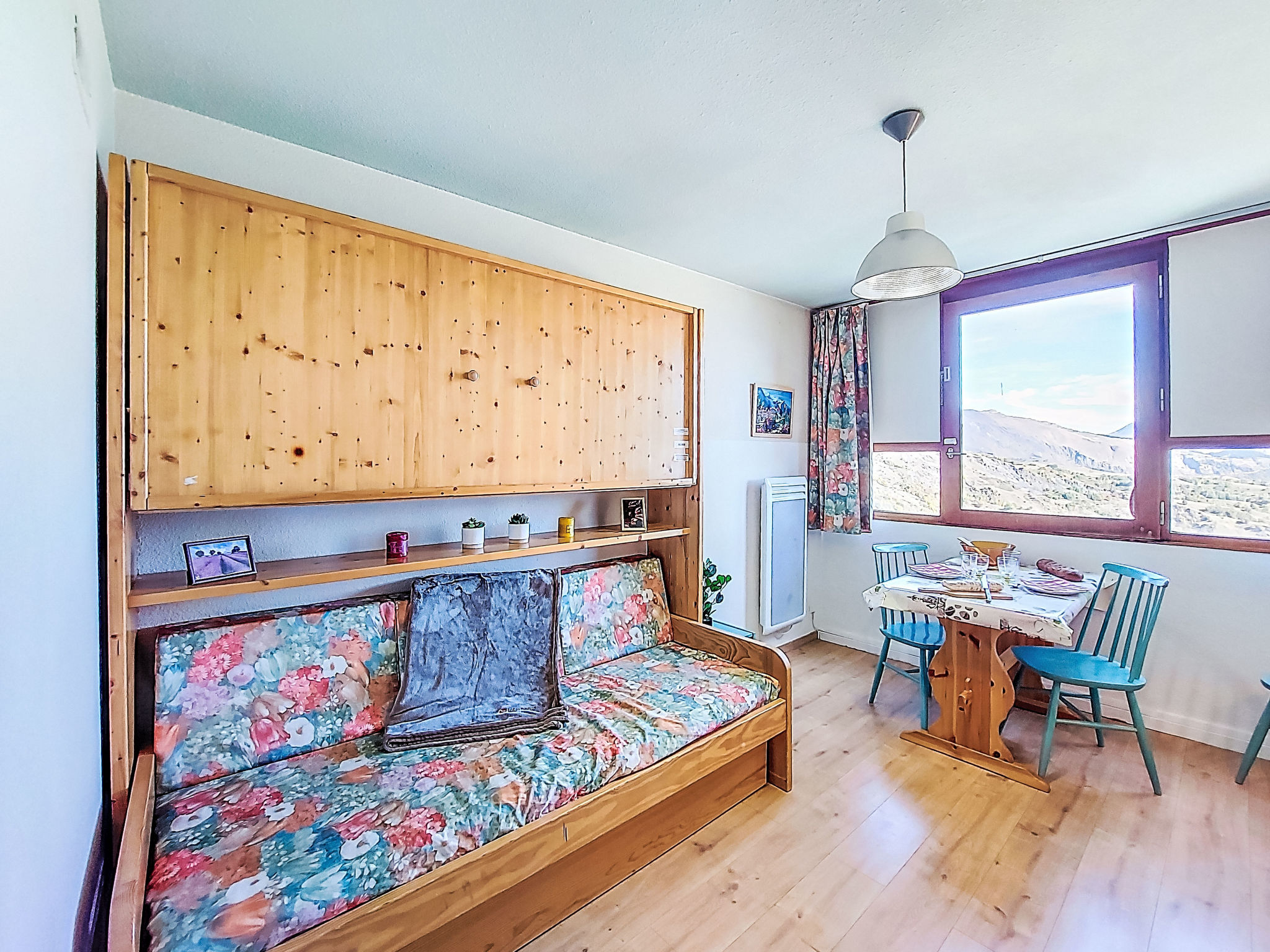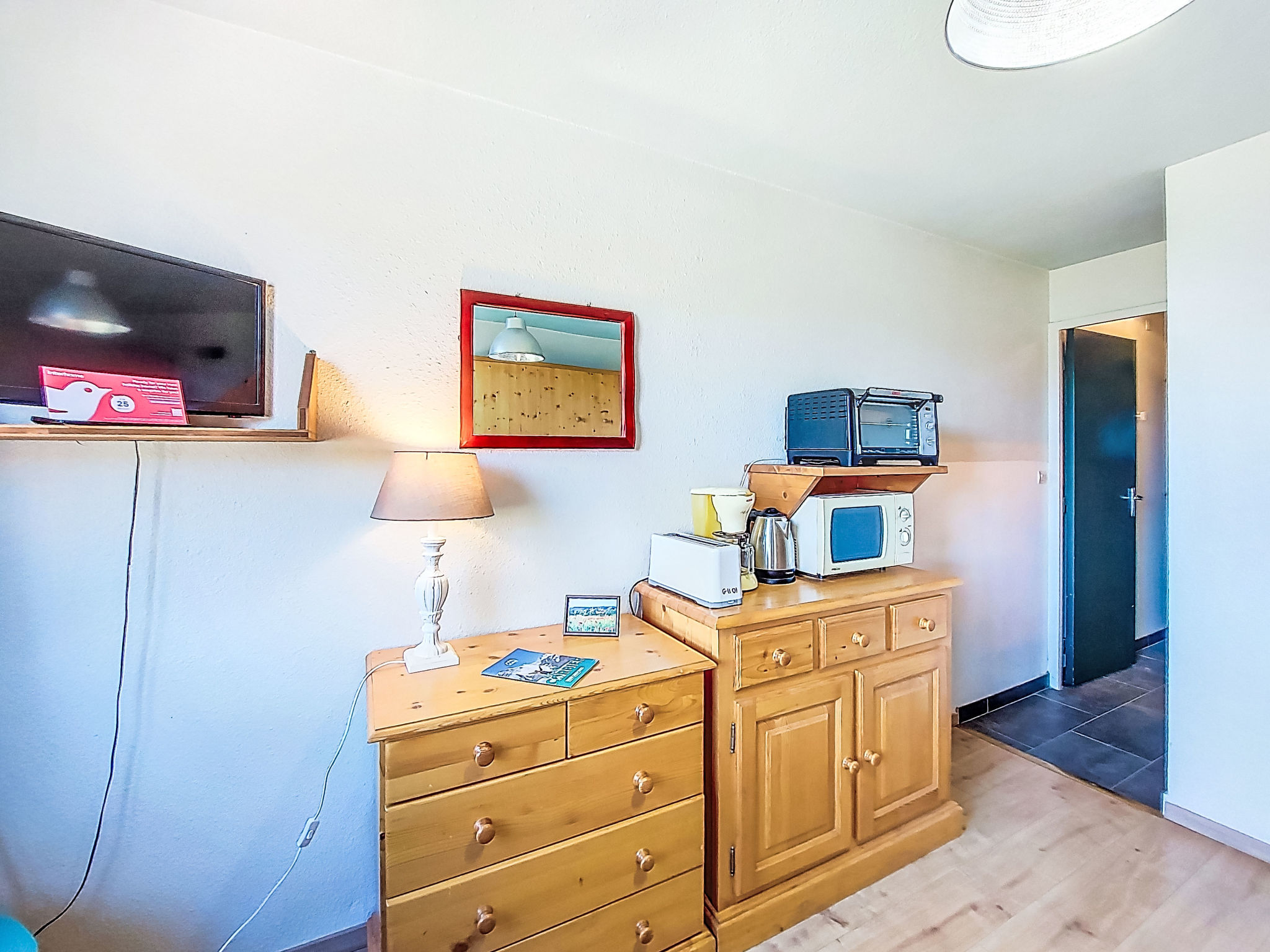1-Zimmer-Studio 16 m2 im 11. Stock, Nordlage. Schön eingerichtet: Wohn-/Esszimmer mit 1 Ausziehbett (2 Pers. 2 x 80 cm, Länge 190 cm), TV (Flachbildschirm). Kleine Kochnische im Eingang (2 Kochplatten, Mini-Backofen, Mikrowelle, elektrische Kaffeemaschine). Bad/WC. E-Heizung. Parkettböden. Schöne Sicht auf die Berge und das Tal. Zur Verfügung: Internet (Wireless LAN, extra). Bitte beachten: Rauchmelder. Inserat einer Privatperson nach Artikel 155, IV, CGI.