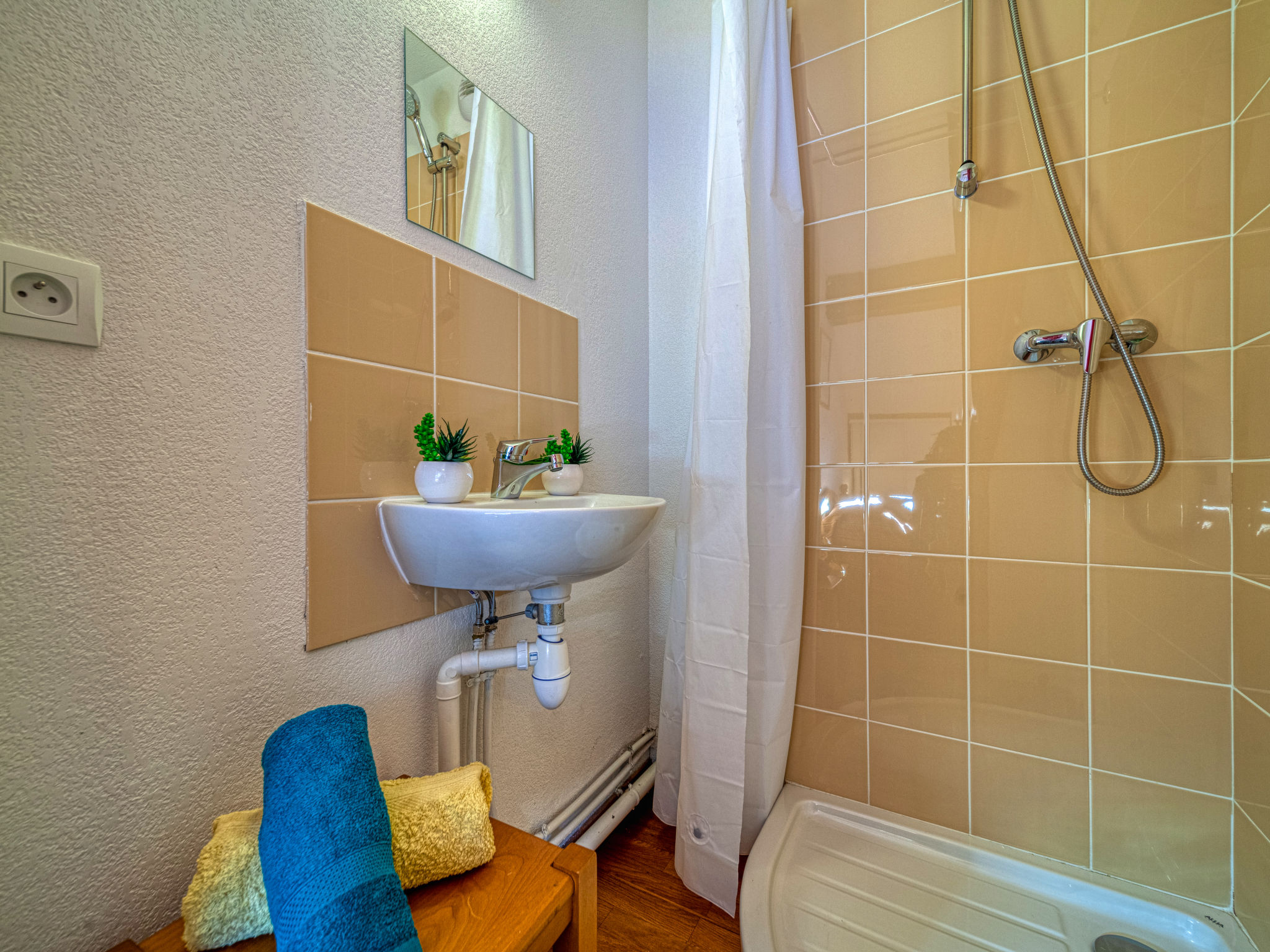 2-Zimmer-Wohnung 50 m2 auf 2 Stockwerken im 2. Stock, Südlage. Zweckmässig und schön eingerichtet: Wohn-/Esszimmer mit 1 x 2 Etagenbetten (80 cm, Länge 190 cm), 1 Ausziehbett (2 Pers. 2 x 80 cm, Länge 190 cm), TV (Flachbildschirm). Ausgang zum Balkon. Kochnische (4 Kochplatten, Backofen, Geschirrspüler, Toaster, Wasserkocher, Mikrowelle, Tiefkühler, elektrische Kaffeemaschine). Obergeschoss: 1 grosses Zimmer mit 1 franz. Bett (1 x 140 cm, Länge 200 cm), Waschbecken und Dusche. Bad, sep. WC. Grosser Balkon 8 m2. Balkonmöbel. Schöne Sicht auf die Berge und die Skipiste. Zur Verfügung: Kinderhochstuhl, Babybett, Haartrockner. Parkplatz Nr. 21 (überdacht). Bitte beachten: Nichtraucher-Unterkunft. Rauchmelder. Inserat einer Privatperson nach Artikel 155, IV, CGI.