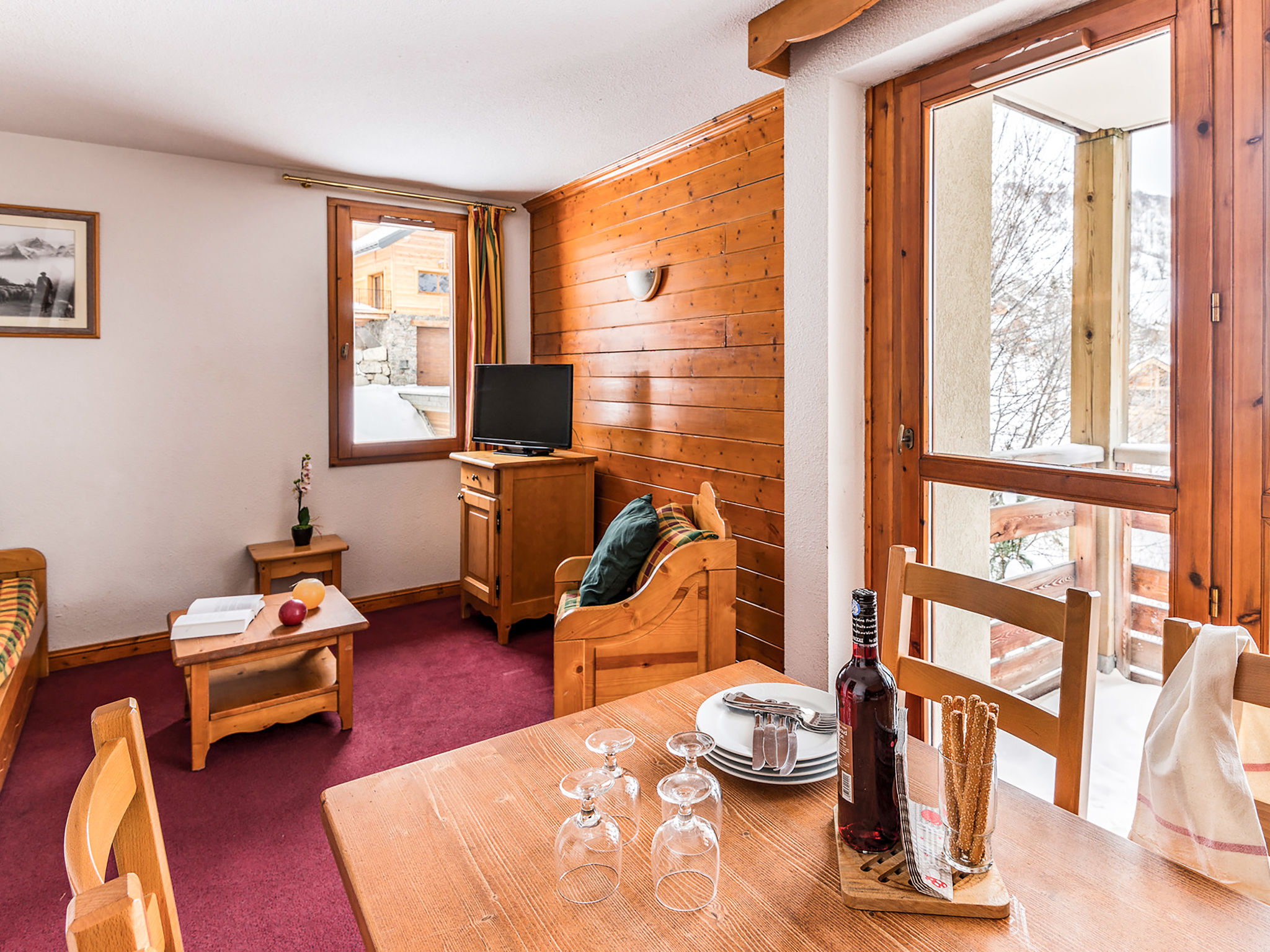 Gemütliche, rustikale Residenz "Les Chalets du Galibier". 10 Häuser in der Residenz. 800 m vom Zentrum von Valloire, 200 m vom Skigebiet. Zur Mitbenutzung: 2 Schwimmbäder, Hallenbad beheizt (6 x 8 m, saisonale Verfügbarkeit: 15.Dez.-10.Apr. Öffnungszeiten Schwimmbad: 10:00-19:30). Dusche/WC im Poolbereich. In der Anlage: Empfang, Aufenthaltsraum, Sauna (extra). Dampfbad (extra). Billard, Fahrstuhl, Skiraum, Waschmaschine (extra), Wäschetrockner (extra). Brötchenservice (extra). Parkplatz (extra). Parkplatz/Garage nur für kleine - mittlere Fahrzeuge geeignet. Maße: Höhe 190 cm. Einkaufsgeschäft 800 m. Skipisten 200 m, Skibushaltestelle 10 m. Bekannte Skigebiete sind gut erreichbar: Valmeinier 12 km, Saint-Jean-de-Maurienne 30 km. Bitte beachten: Öffnungszeiten der Rezeption 17:00-20:00 Uhr. Das Foto ist nur ein Wohnungsbeispiel. Die Mietobjekte können sich in Wohnfläche, Raumaufteilung, Ausstattung und Einrichtung unterscheiden.