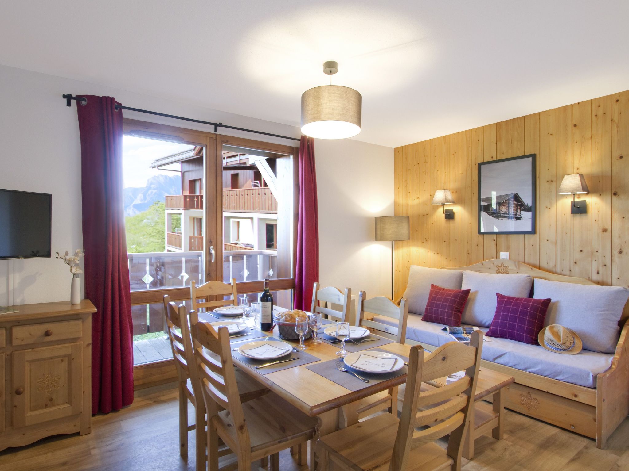 Die beliebte ODALYS-Residenz LE GRAND PANORAMA I liegt in sonniger Hanglage unterhalb des Ortes, mit herrlichem Panoramablick. Pisten nur wenige Meter, Ortszentrum mit Geschäften, Restaurants und Bars ca. 900 m (kostenloser Pendelbus). Die Anlage umfasst 115 Wohnungen sowie 17 Reihenchalets. In der Residenz stundenweise besetzte Rezeption mit Internetzugang (WLAN, inklusive), beheizter Außenpool (6 x 12 m). Sauna und Billard (beides gegen Bezahlung). Skiraum (eine Skibox pro Wohnung). Aufzug zu den Etagen. Tiefgarage (€ 50/Woche, je nach Verfügbarkeit). Wenige kostenlose Parkplätze bei der Residenz. Alle Wohnungen und Chalets mit Balkon oder Terrasse. Internetzugang (WLAN, inklusive). Gute, feriengerechte Ausstattung. TV. Elektroheizung.