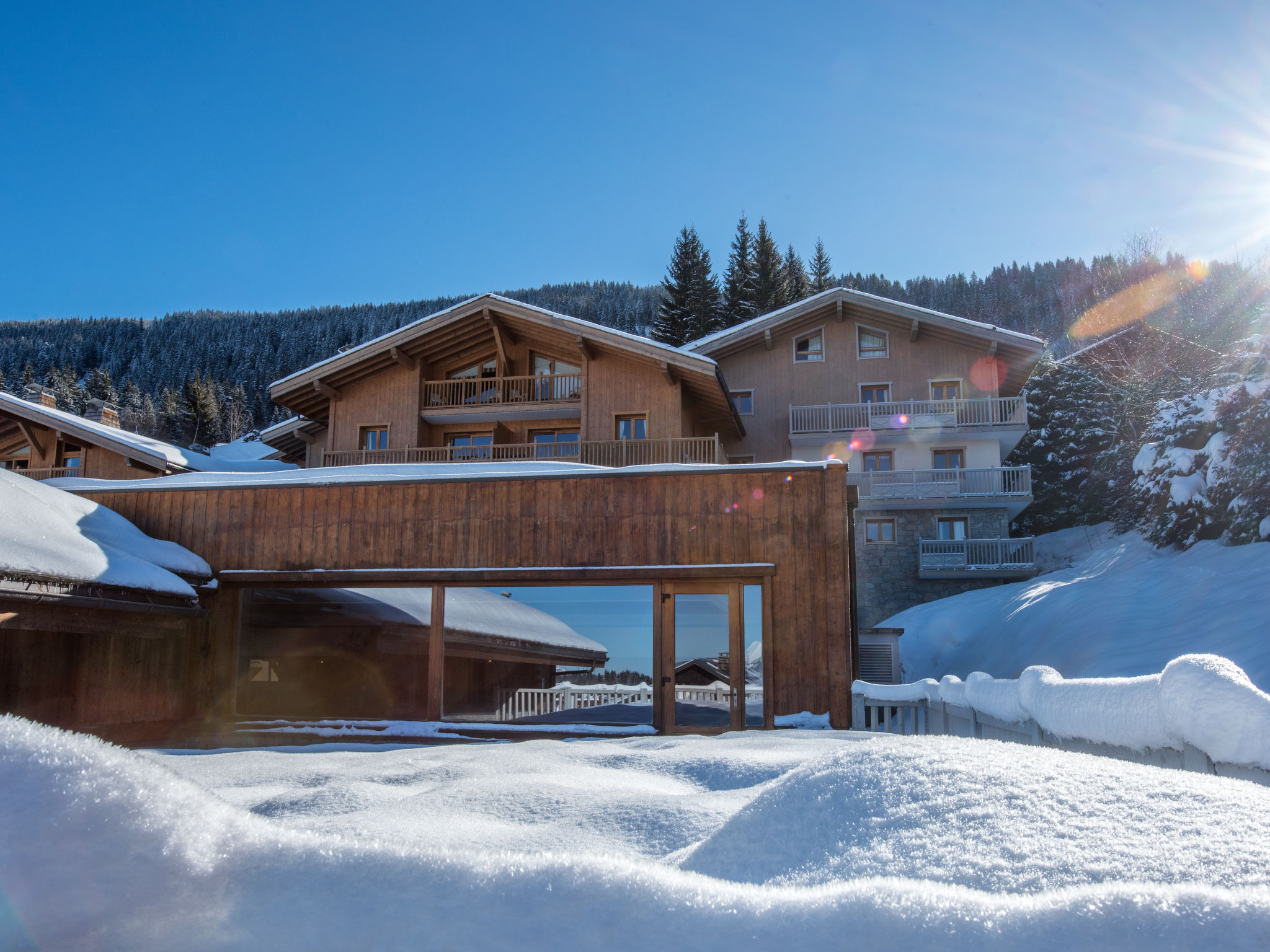 Schöne, rustikale, komfortable Residenz "CGH Rés&Spa Les Chalets de Jouvence", auf 4 Stockwerken. 9 Häuser in der Residenz. 58 Wohnungen in der Residenz. Mietobjekt bestehend aus Haupt- und Nebengebäude, 500 m vom Zentrum von Les Carroz d'Araches, 12 km vom Zentrum von Cluses, ausserhalb des Ortes, 55 km vom Zentrum von Genève, direkt am Skigebiet. Zur Mitbenutzung: Hallenbad beheizt (15 x 5 m, saisonale Verfügbarkeit: 01.Jan.-31.Dez.). In der Anlage: Empfang, Aufenthaltsraum, Wireless LAN, Sauna, Fitnessraum, Massage (extra). Dampfbad, Sprudelbad, Billard, Fahrstuhl, Skiraum, Waschmaschine (extra), Skischuhtrockner. Brötchenservice. Abstellraum vorhanden. Gemeinschaftsgarage (extra). Parkplatz/Garage nur für kleine - mittlere Fahrzeuge geeignet. Maße: Höhe 210 cm. Einkaufsgeschäft 150 m, Supermarkt 1.4 km, Restaurant 150 m, Bahnstation "Cluses" 13 km. Golfplatz (18 Loch) 9.5 km, Tennis 1.3 km, Wanderwege ab Haus, Skilift, Skipisten 800 m, Skiverleih, Skischule 150 m. Bekannte Skigebiete sind gut erreichbar: Le Grand Massif. Bitte beachten: Babyausstattung auf Anfrage (inkl.). Das Foto ist nur ein Wohnungsbeispiel. Die Mietobjekte können sich in Wohnfläche, Raumaufteilung, Ausstattung und Einrichtung unterscheiden.