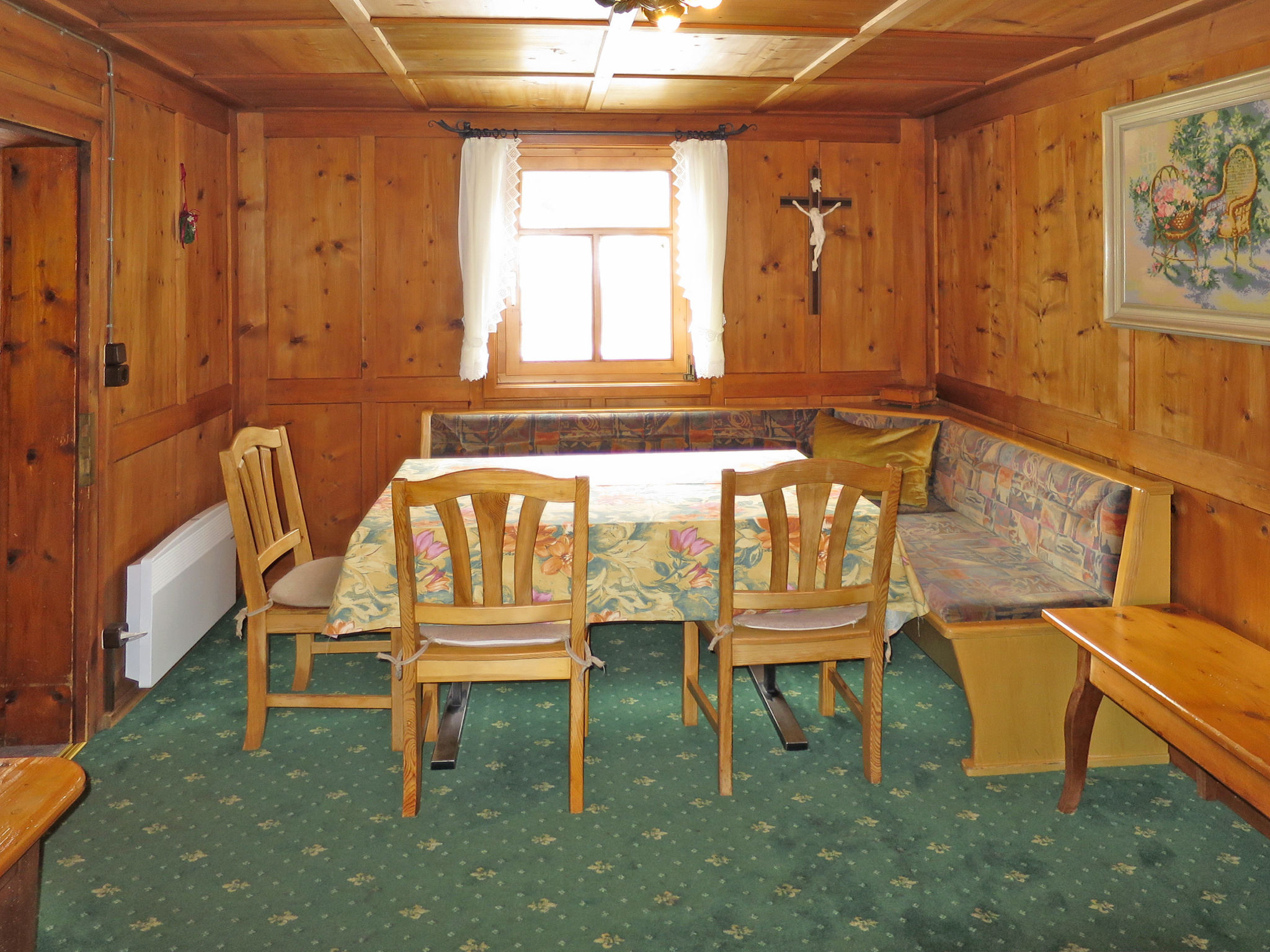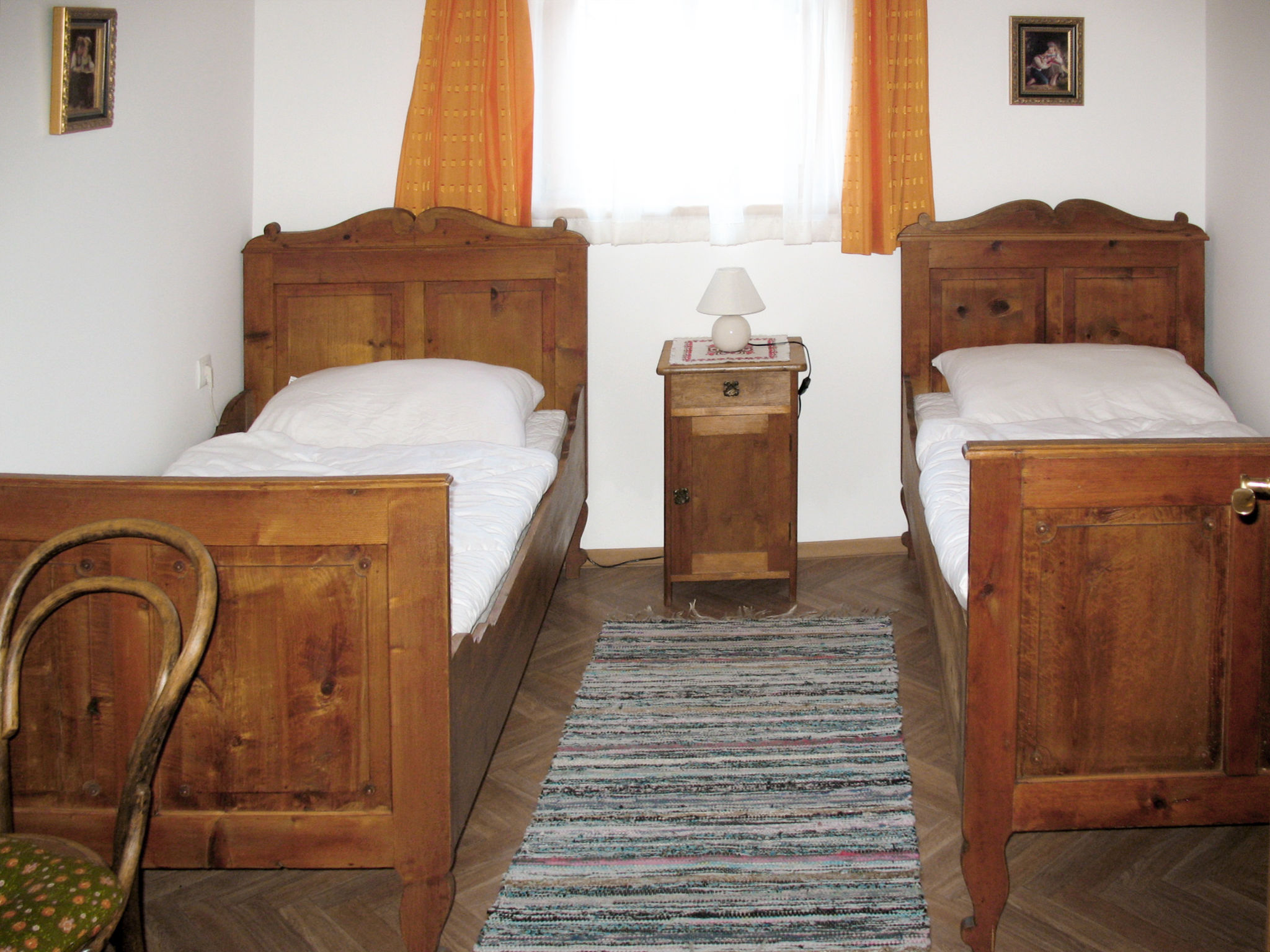 11-Zimmer-Haus, 3 Etagen, ca. 280 m². Diele mit Sitzecke. Bauernstube mit Kachelofen, Ofenbank, Esstischen und Eckbänken. Kleine Stube mit Sat-TV. Küche (4 Ceranfelder, Backofen, Mikrowelle, Geschirrspüler, Kühlschrank, Kaffeemaschine, Schneidemaschine). Zweibettzimmer. Dusche/WC. Sep.WC. 1. Etage: 3 Doppelzimmer. Schlafzimmer mit Doppelbett und Bettcouch. Doppelzimmer mit Balkonausgang. Dusche. Sep.WC. Flur mit Treppe in die 2. Etage: Kleine Stube mit Sitzgruppe. Doppelzimmer. Schlafzimmer mit Doppelbett und Bettcouch. Bad/Wanne mit Duschvorrichtung. Sep.WC.