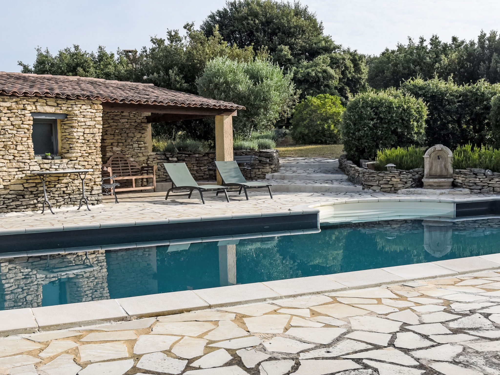Villa "La Chênaie". Am Ortsrand, 2 km vom Zentrum von Saumane de Vaucluse, alleinstehende, ruhige, sonnige Lage. Zur Alleinbenutzung: Grundstück 5'000 m2 (eingezäunt), gepflegter Garten, Schwimmbad nicht einsehbar (10 x 5 m, 80 - 160 cm tief, 28.05.-25.09.) mit Alarmanlage. Poolhaus mit Dusche, Boccia, Terrasse (30 m2), Gartenmöbel, Parkplatz (für 2 Autos, überdacht) auf dem Grundstück. Einkaufsgeschäft 2 km. Golfplatz (18 Loch) 300 m. Nahe gelegene Sehenswürdigkeiten: Provence Country Club 300 m, Fontaine de Vaucluse 4 km, L'Isle sur la Sorgue 5 km, Gordes 18 km, Roussillon 25 km, Saint Rémy de Provence 31 m. Die Residenz wird durch elektrische Tore geschlossen.