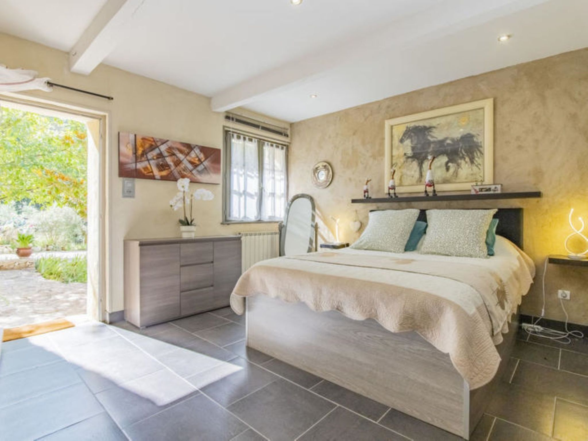 "L'Oliveraie", 5-Zimmer-Villa 250 m2 auf 2 Stockwerken. Wohn-/Esszimmer 55 m2 mit TV und Flachbildschirm. Ausgang zum Garten. 2 Zimmer, jedes Zimmer mit 1 franz. Bett (160 cm, Länge 200 cm), Dusche. Offene Küche (4 Kochplatten, Backofen, Geschirrspüler, Mikrowelle, elektrische Kaffeemaschine). Sep. WC. Obergeschoss: 1 Zimmer mit 1 franz. Bett (140 cm, Länge 190 cm), Dusche. 1 Zimmer mit 2 Betten (90 cm), Bad/Dusche. Sep. WC. Garten. Terrassenmöbel. Zur Verfügung: Waschmaschine, Bügeleisen, Kinderhochstuhl, Babybett bis 2 Jahre, Haartrockner. Internet (Wireless LAN, gratis). Parkplatz (2 Autos). Bitte beachten: geeignet für Familien. 1 Haustier/Hund erlaubt. Rauchmelder, Feuerlöscher. Am Haus Ladestation für E-Auto. Bei Belegung mit weniger Personen als der maximalen Personenzahl stehen nicht alle Schlafzimmer zur Verfügung. Inserat einer Privatperson nach Artikel 155, IV, CGI.