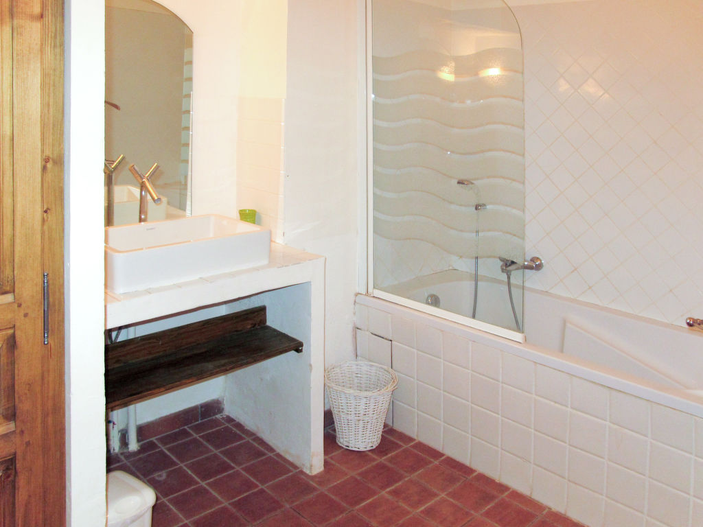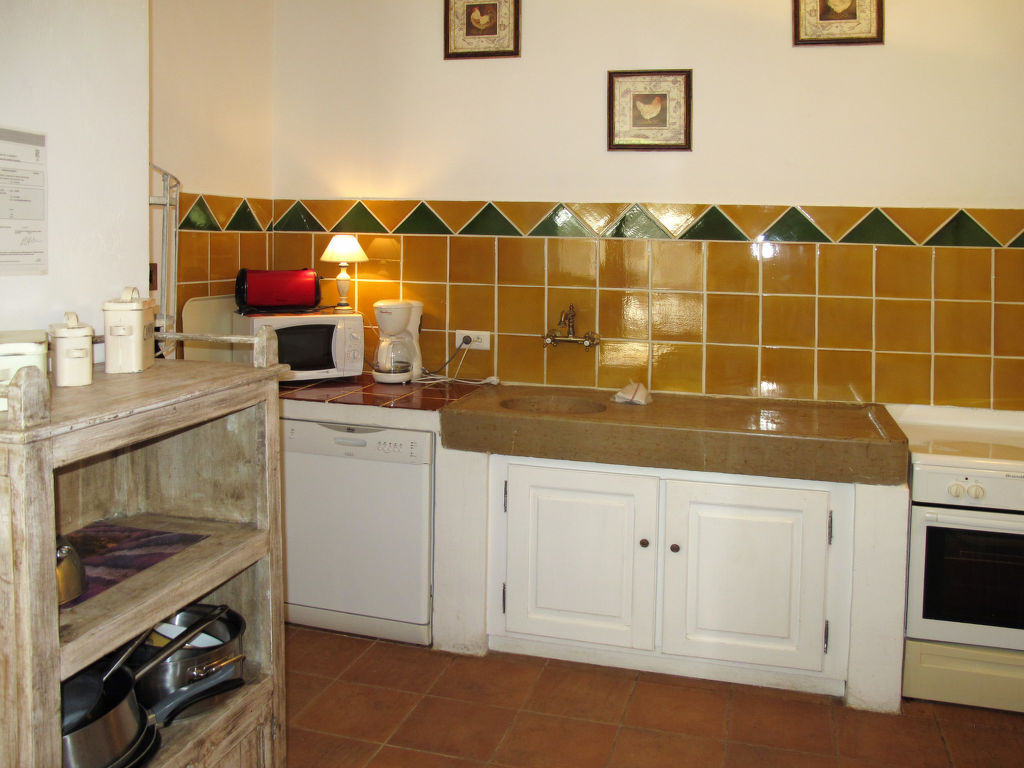 "Terres Ste Hilaire - Cade (OLL101)", 4-Zimmer-Wohnung 110 m2, im Erdgeschoss. Geräumig, rustikal und geschmackvoll eingerichtet: Wohn-/Schlafzimmer mit 1 Doppeldiwanbett (160 cm), offenem Kamin (nur Deko), Esstisch und Sat-TV. Ausgang zur Terrasse. 3 Zimmer, jedes Zimmer mit 2 Betten (80 cm). Kochnische (4 Kochplatten, Backofen, Geschirrspüler, Toaster, Wasserkocher, Mikrowelle, Tiefkühler, elektrische Kaffeemaschine). Bad, Dusche/WC, sep. WC. Heizung. Holzböden. Grosse Terrasse teilweise überdacht, Südlage. Terrassenmöbel. Sehr schöne Fernsicht auf die Landschaft und Mont Aurélien. Zur Verfügung: Internet (Wireless LAN, gratis). Bitte beachten: Rauchmelder.