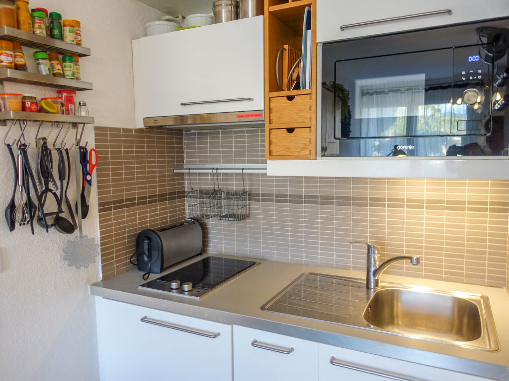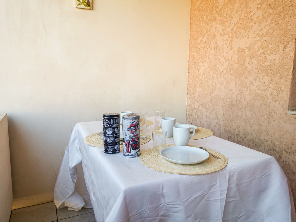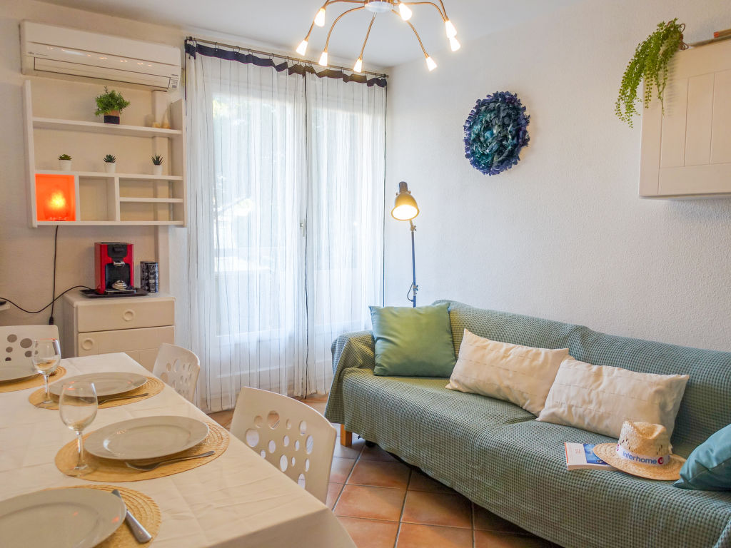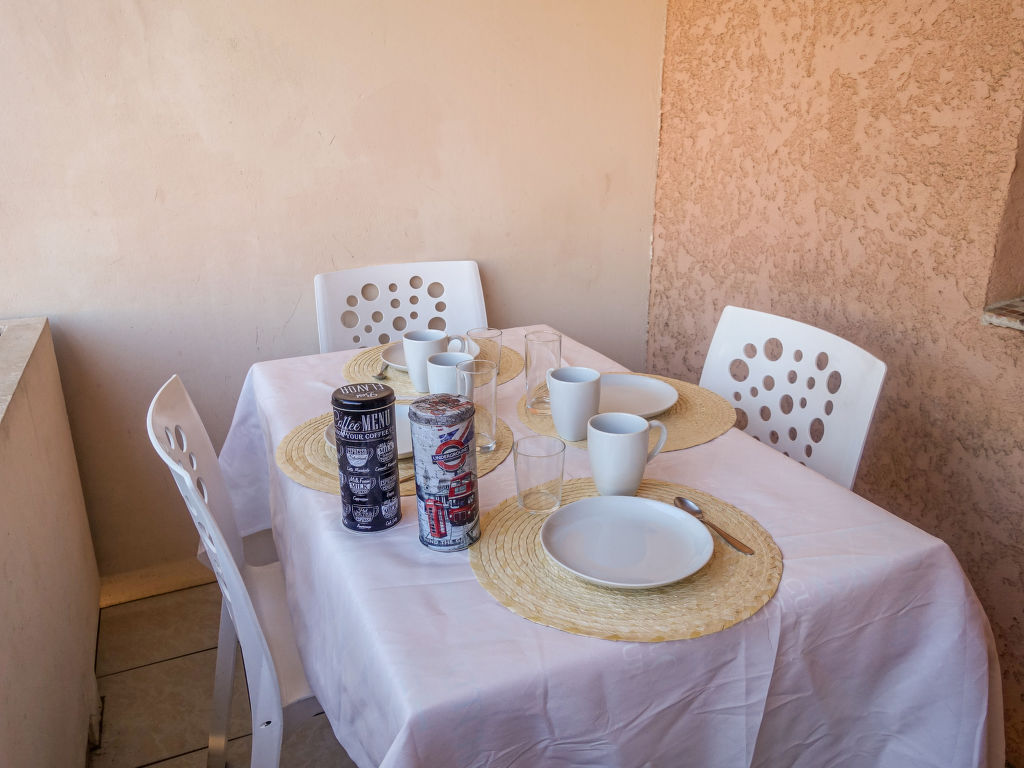 2-Zimmer-Wohnung 25 m2 im 2. Stock. Objekt geeignet für 2 Erwachsene + 2 Kinder. Hell, komfortabel eingerichtet: Wohn-/Esszimmer mit 1 Doppeldiwanbett (1 x 140 cm, Länge 190 cm), TV und Klimaanlage. Ausgang zum Balkon. 1 kleines Zimmer mit 2 Betten (90 cm, Länge 190 cm), Dusche/WC. Kochnische (Backofen, 2 Induktionskochplatten, Toaster, Wasserkocher, Mikrowelle, elektrische Kaffeemaschine). Balkon 8 m2. Terrassenmöbel, Liegestühle. Zur Verfügung: Waschmaschine, Bügeleisen, Haartrockner. Internet (Wireless LAN, gratis). Garage Nr. 258, Höhe 180 cm, Breite 220 cm. Bitte beachten: kein Fahrstuhl. 83019000322TO