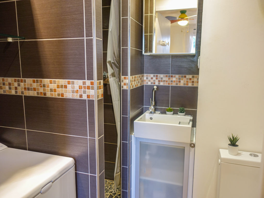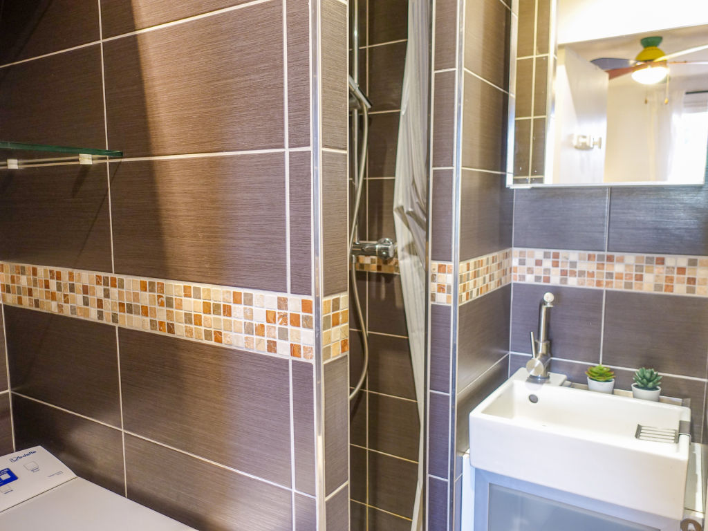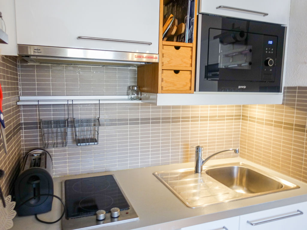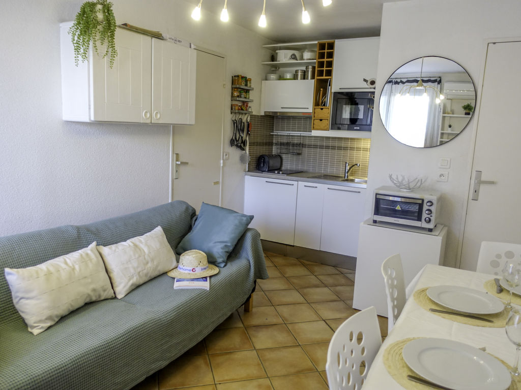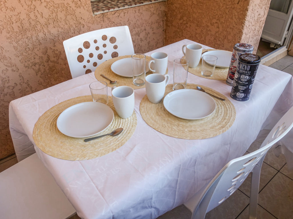 2-Zimmer-Wohnung 25 m2 im 2. Stock. Objekt geeignet für 2 Erwachsene + 2 Kinder. Hell, komfortabel eingerichtet: Wohn-/Esszimmer mit 1 Doppeldiwanbett (1 x 140 cm, Länge 190 cm), TV und Klimaanlage. Ausgang zum Balkon. 1 kleines Zimmer mit 2 Betten (90 cm, Länge 190 cm), Dusche/WC. Kochnische (Backofen, 2 Induktionskochplatten, Toaster, Wasserkocher, Mikrowelle, elektrische Kaffeemaschine). Balkon 8 m2. Terrassenmöbel, Liegestühle. Zur Verfügung: Waschmaschine, Bügeleisen, Haartrockner. Internet (Wireless LAN, gratis). Garage Nr. 258, Höhe 180 cm, Breite 220 cm. Bitte beachten: kein Fahrstuhl. 83019000322TO