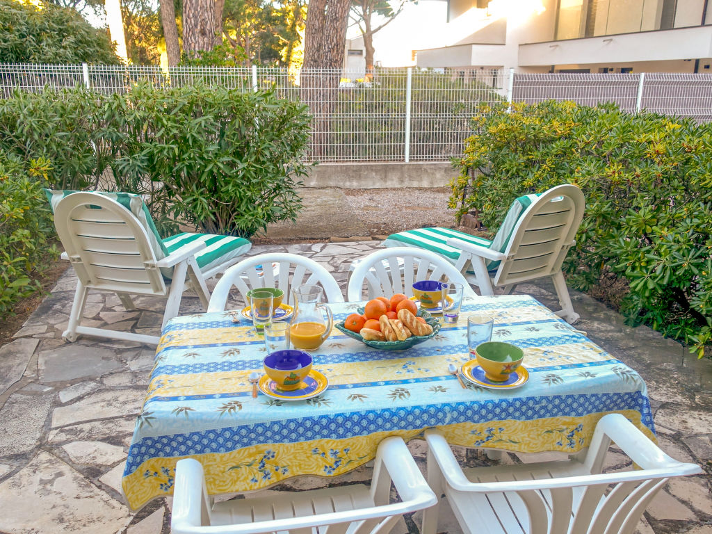 1-Zimmer-Studio 37 m2, im Erdgeschoss. Geräumig, teilweise renoviert im Jahre 2021, komfortabel und schön eingerichtet: Wohn-/Esszimmer mit 1 Doppeldiwanbett (140 cm, Länge 190 cm), 1 x 2 Etagenbetten (80 cm, Länge 190 cm), TV (Flachbildschirm), Klimaanlage, Ventilator und elektrischem Rollladen. Ausgang zur Terrasse. Offene Küche (2 Glaskeramikherd Platten, Toaster, Wasserkocher, Mikrowelle, Tiefkühler, elektrische Kaffeemaschine). Dusche/WC. Grosse Terrasse 40 m2. Terrassenmöbel, Liegestühle (2). Seitliche Sicht auf das Meer und den Garten. Zur Verfügung: Waschmaschine, Bügeleisen. Internet (Wireless LAN, extra). Parkplatz beim Haus. Bitte beachten: Rauchmelder.