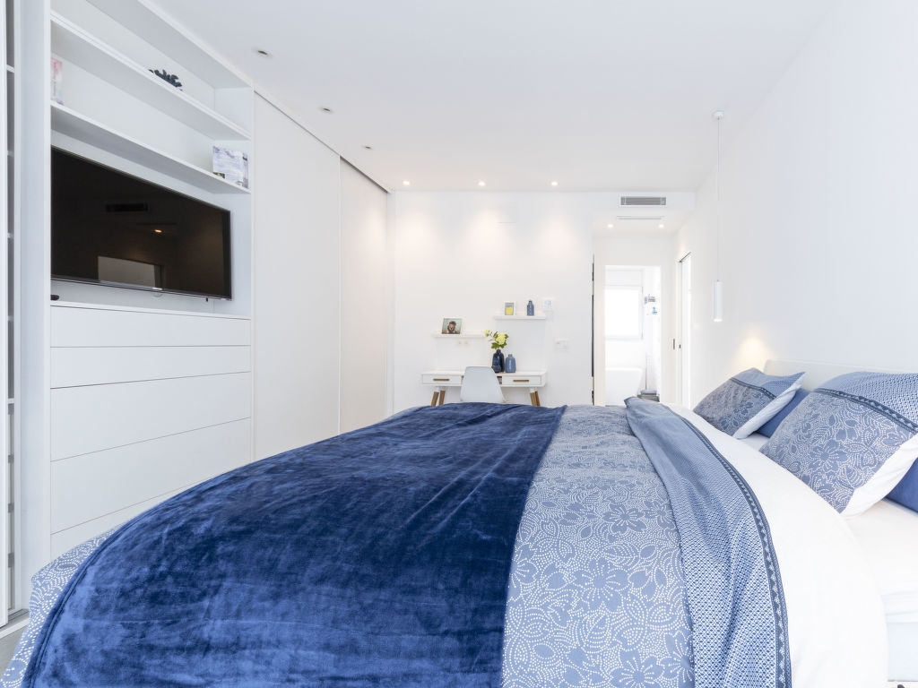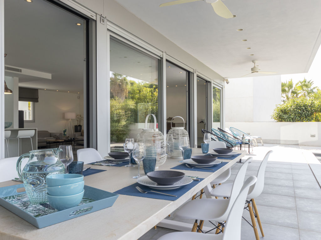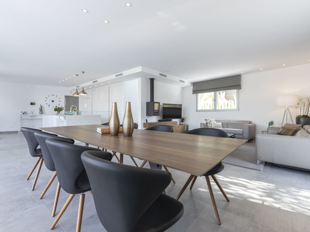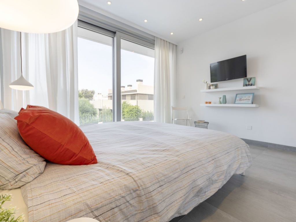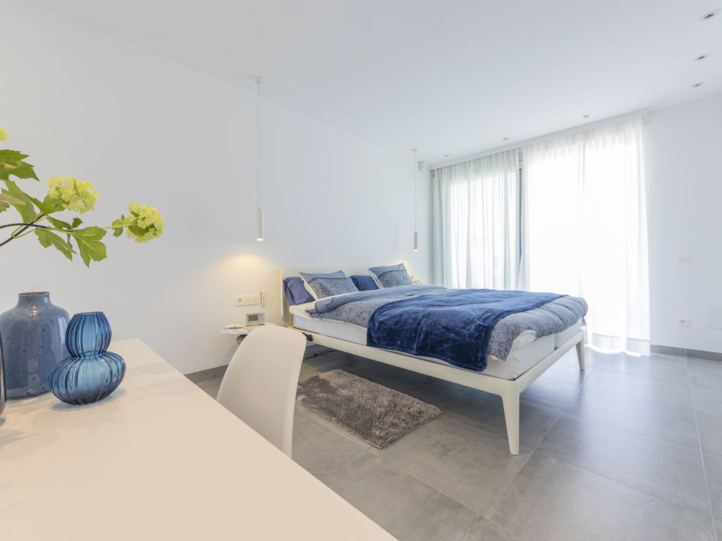 "Chamizo", 4-Zimmer-Villa 290 m2 auf 2 Stockwerken. Geräumig und hell, modern und stilvoll eingerichtet: Wohn-/Esszimmer mit Esstisch und Digital-TV. Ausgang zum Gartensitzplatz, zum Schwimmbad. Grosse, offene Küche (Backofen, Geschirrspüler, 4 Induktionskochplatten, Toaster, Mikrowelle, elektrische Kaffeemaschine, Kochinsel). Dusche/WC. Klimaanlage. Obergeschoss: 1 Doppelzimmer mit 1 Doppelbett (180 cm, Länge 210 cm), Bad/Dusche/WC und Digital-TV. Ausgang zur Loggia. 1 Doppelzimmer mit 1 Doppelbett (1 x 180 cm, Länge 210 cm), Dusche/WC und Digital-TV. Ausgang zur Loggia. 1 grosses Doppelzimmer mit 1 Doppeldiwanbett und 1 Doppelbett (1 x 180 cm, Länge 210 cm), Dusche und Digital-TV. Ausgang zur Loggia. Sep. WC. Klimaanlage. Grosser Gartensitzplatz. Terrassenmöbel, Liegestühle. Sicht auf das Schwimmbad. Zur Verfügung: Waschmaschine, Wäschetrockner, Bügeleisen, Kinderhochstuhl, Babybett, Haartrockner. Internet (Wireless LAN, gratis). Bitte beachten: geeignet für Familien. Nichtraucher-Haus. X2020058874