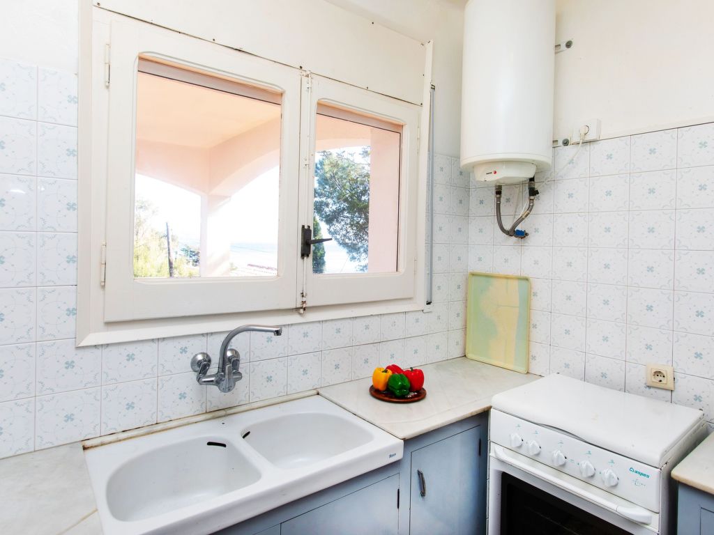 2-Zimmer-Wohnung 45 m2, unteres Geschoss. Zweckmässig und rustikal eingerichtet: Wohn-/Esszimmer 20 m2 mit 1 Doppeldiwanbett und Sat-TV. 1 Zimmer mit 1 franz. Bett. Küche (Backofen). Bad/WC. Terrasse 25 m2. Terrassenmöbel. Sicht auf das Meer. Zur Verfügung: Waschmaschine, Bügeleisen. Parkplatz. Um die Wohnung zu erreichen muss man 15 Treppenstufen hinunter gehen. HUTG041897