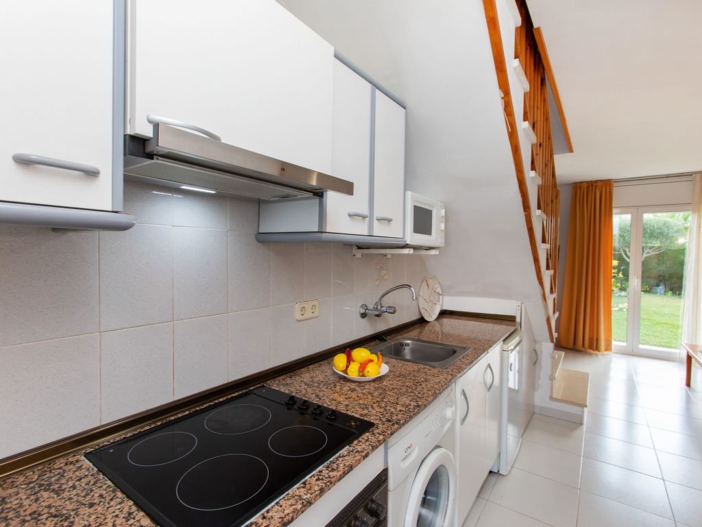4-Zimmer-Reihenhaus 65 m2 auf 2 Stockwerken. Einfach eingerichtet: Wohn-/Esszimmer 16 m2 mit Esstisch, Sat-TV und Digital-TV. Ausgang zum Garten. 1 Zimmer 12 m2 mit 1 franz. Bett (135 cm), Bad/Bidet/WC. Ausgang zum Gartensitzplatz, zum Schwimmbad. Kochnische (Backofen, 4 Glaskeramikherd Platten, Toaster, Wasserkocher, Mikrowelle, elektrische Kaffeemaschine). Obergeschoss: 1 Zimmer mit 1 Doppeldiwanbett (2 x 80 cm). Ausgang zur Terrasse. 1 Zimmer 10 m2 mit 2 Betten (90 cm). Ausgang zur Terrasse. Dusche/WC. Terrasse 6 m2, Terrasse 10 m2. Terrassenmöbel, Gartengrill. Zur Verfügung: Waschmaschine, Bügeleisen, Haartrockner. Internet (Wireless LAN, gratis). Parkplatz (eingezäunt, 2 Autos), Garage. Bitte beachten: Maximal 1 Haustier/Hund erlaubt. TV nur ES, DE, FR. HUTT010133