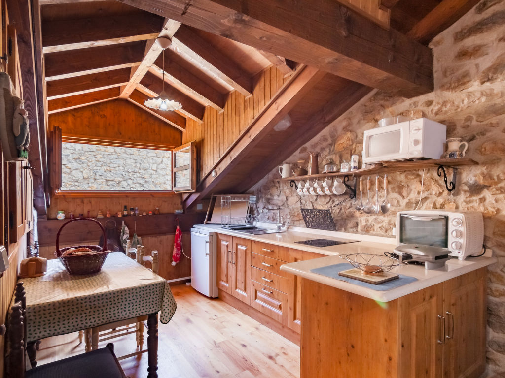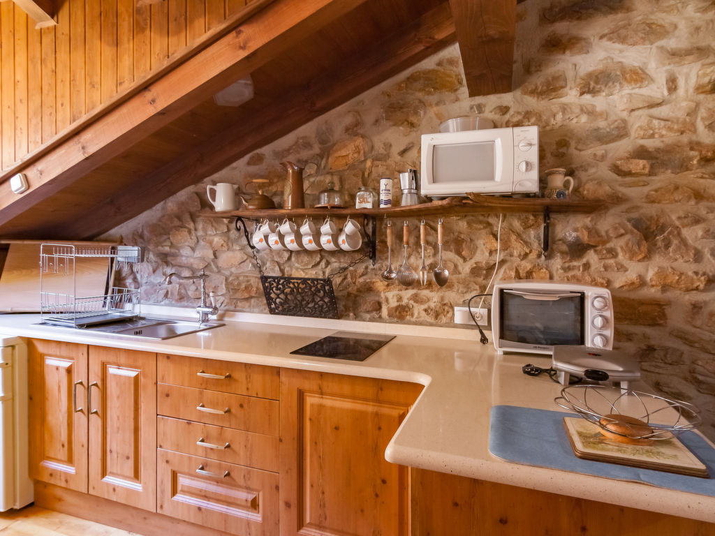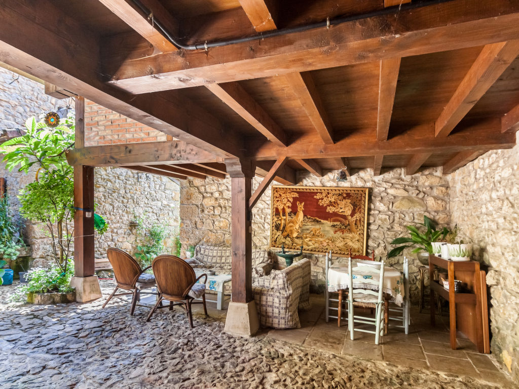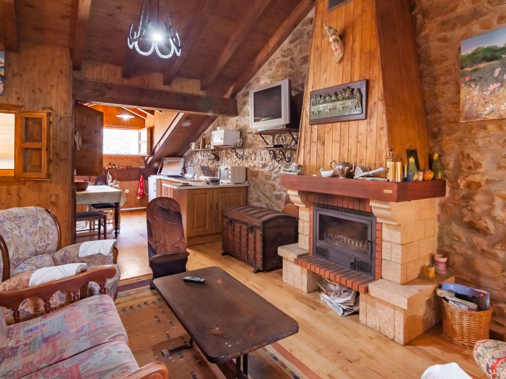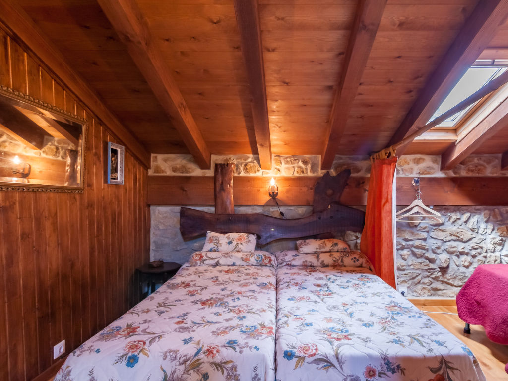 "El Pajar", 3-Zimmer-Haus 80 m2 im 1. Stock. Rustikal eingerichtet: Wohn-/Esszimmer mit offenem Kamin und Digital-TV. Ausgang zum Balkon. 2 Zimmer mit Vorhang, jedes Zimmer mit 2 Betten (80 cm, Länge 185 cm). Offene Küche (Backofen, 2 Glaskeramikherd Platten, Mikrowelle, Tiefkühler) mit Esstisch. Dusche/WC, Hydromassage-Dusche. Holzheizung. Grosse Laube. Terrassenmöbel, Loggia. Sicht auf die Berge und den Fluss. Zur Verfügung: Waschmaschine, Bügeleisen, Haartrockner. Typisch rustikales Haus, vollständig renoviert. Es befindet sich innerhalb eines charmanten Anwesens von 2 ha mit einem Fluss (dort können Sie Forellen angeln), der da durchfliesst. Ideale Ausgangslage, um sich zu entspannen. Die Terrasse erstreckt sich über die gesamte untere Etage. R000000001