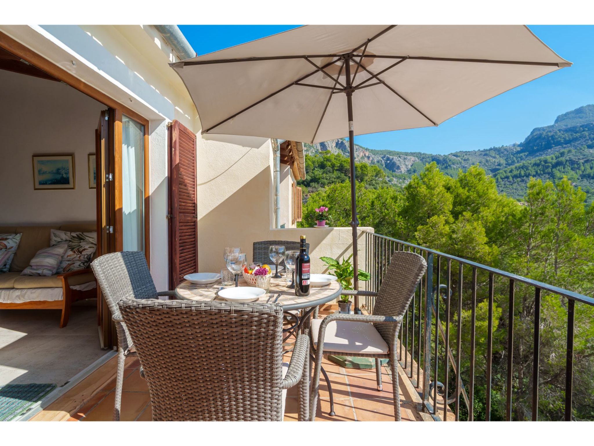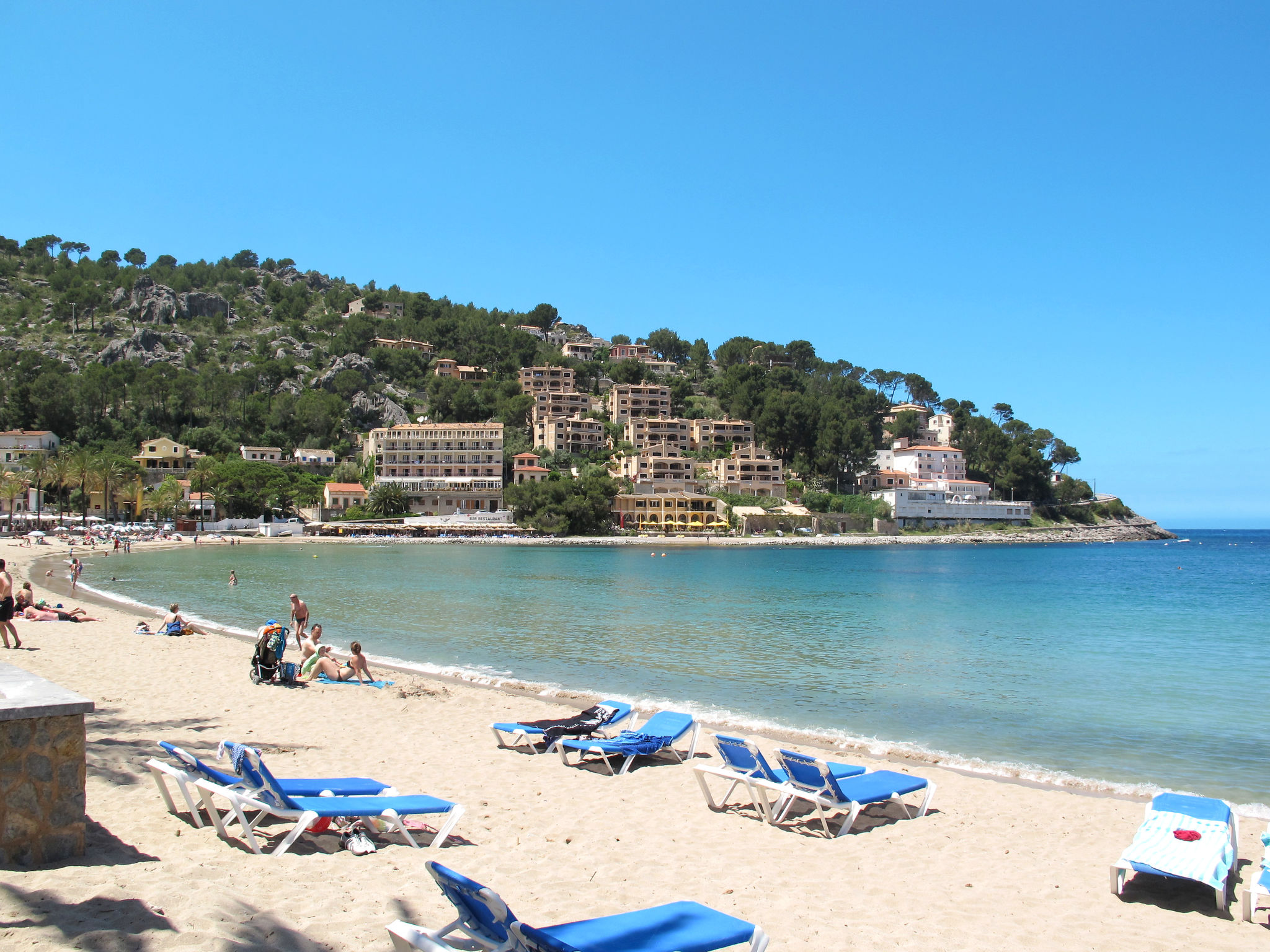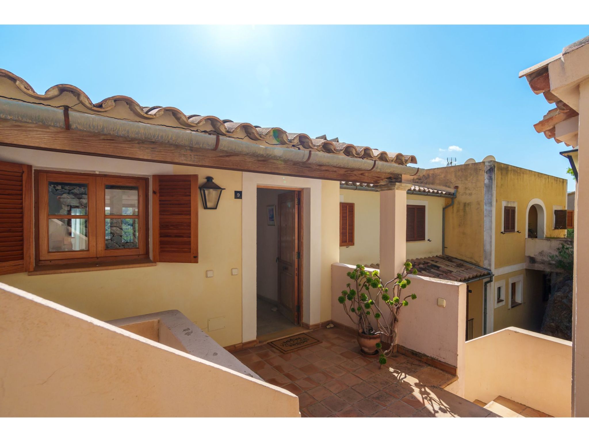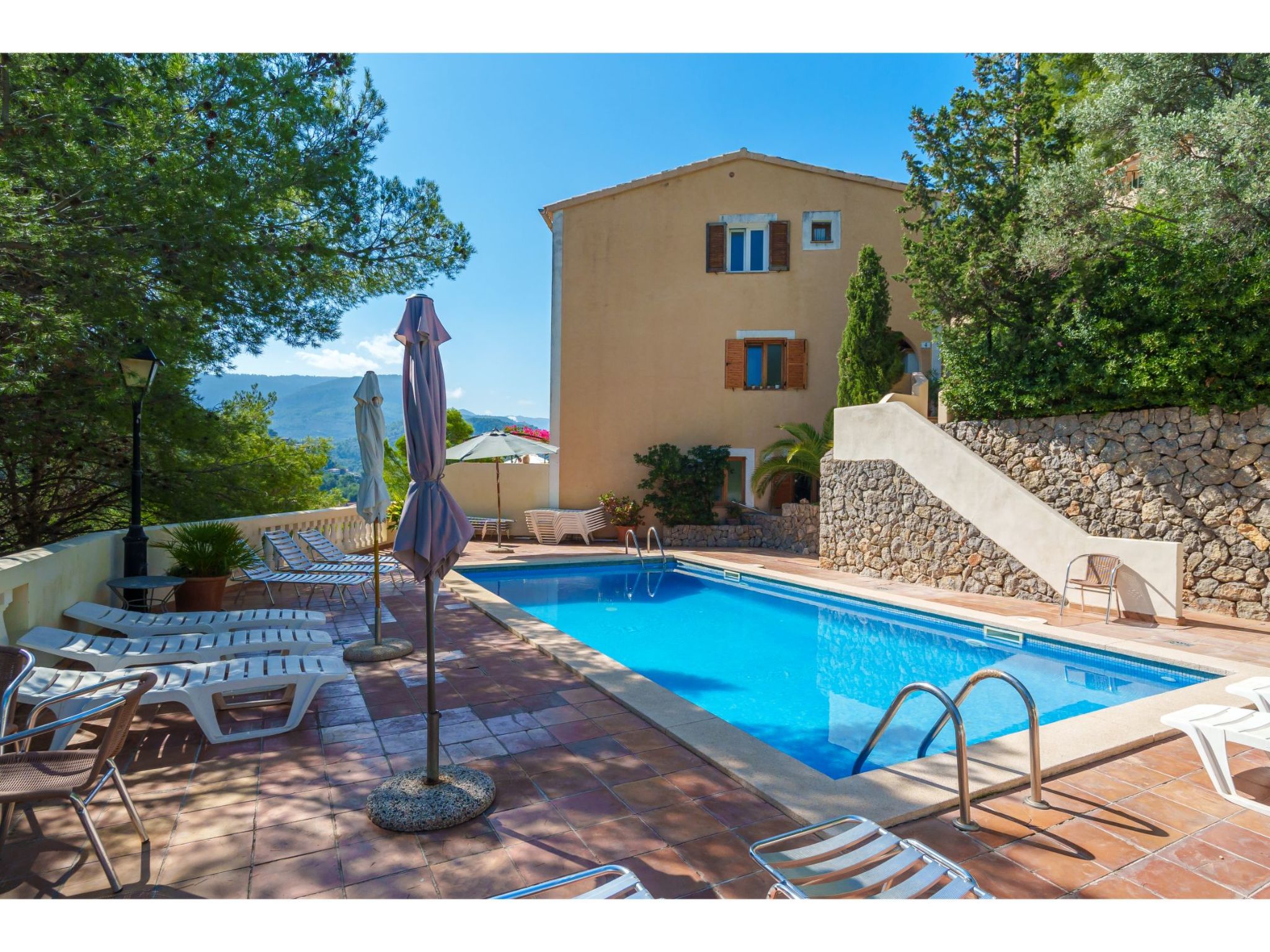 Port de Sóller: Das Haus mit 9 Wohnungen ist auf einer von Pinien umgebenen Anhöhe gelegen. Schönes, gemütliches, komfortables Appartementhaus "S'Atalaia Sea Views". Im Ort, 800 m vom Zentrum von Port de Sóller, sonnige Lage auf einem Hügel, 500 m vom Waldrand, 1 km vom Meer, 1.1 km vom Strand. Zur Mitbenutzung: Schwimmbad eckig (10 x 5 m, saisonale Verfügbarkeit: 01.Mai.-30.Sep.). Terrasse. Im Hause: Internetzugang, Wireless LAN, Waschmaschine. Steile Zufahrt. Parkplatz beim Haus auf dem Grundstück. Lebensmittelgeschäft 1 km, Supermarkt 1 km, Restaurant, Bar 300 m, Zentrum zu Fuss in 14 Minuten erreichbar, Bushaltestelle 1 km, Sandstrand 1 km. Sporthafen 1.3 km. Bitte beachten: geeignet für Familien, geeignet für Senioren. Objekt geeignet für 4 Erwachsene. Zugang zum Schwimmbad über Treppen. Liegen.