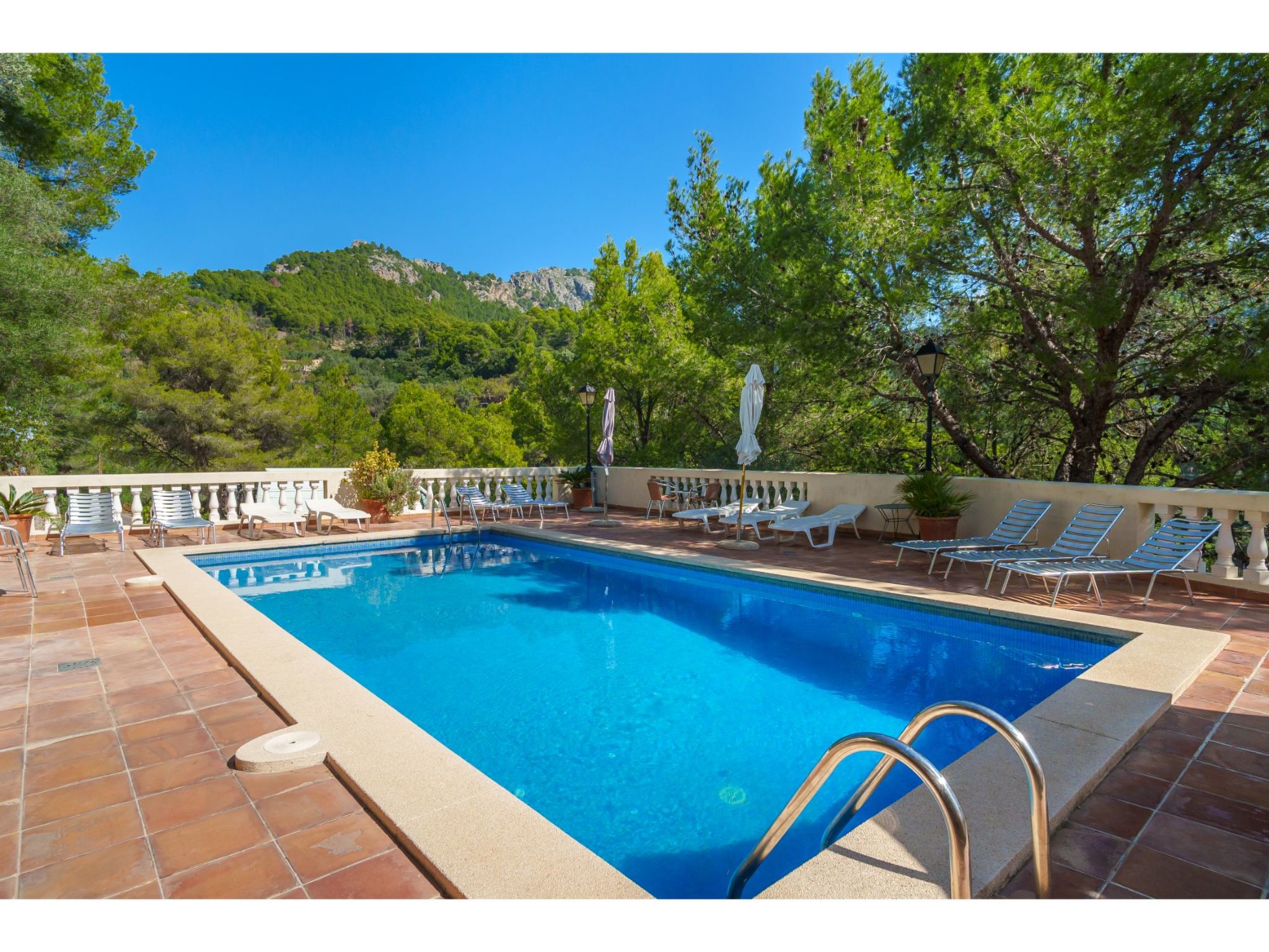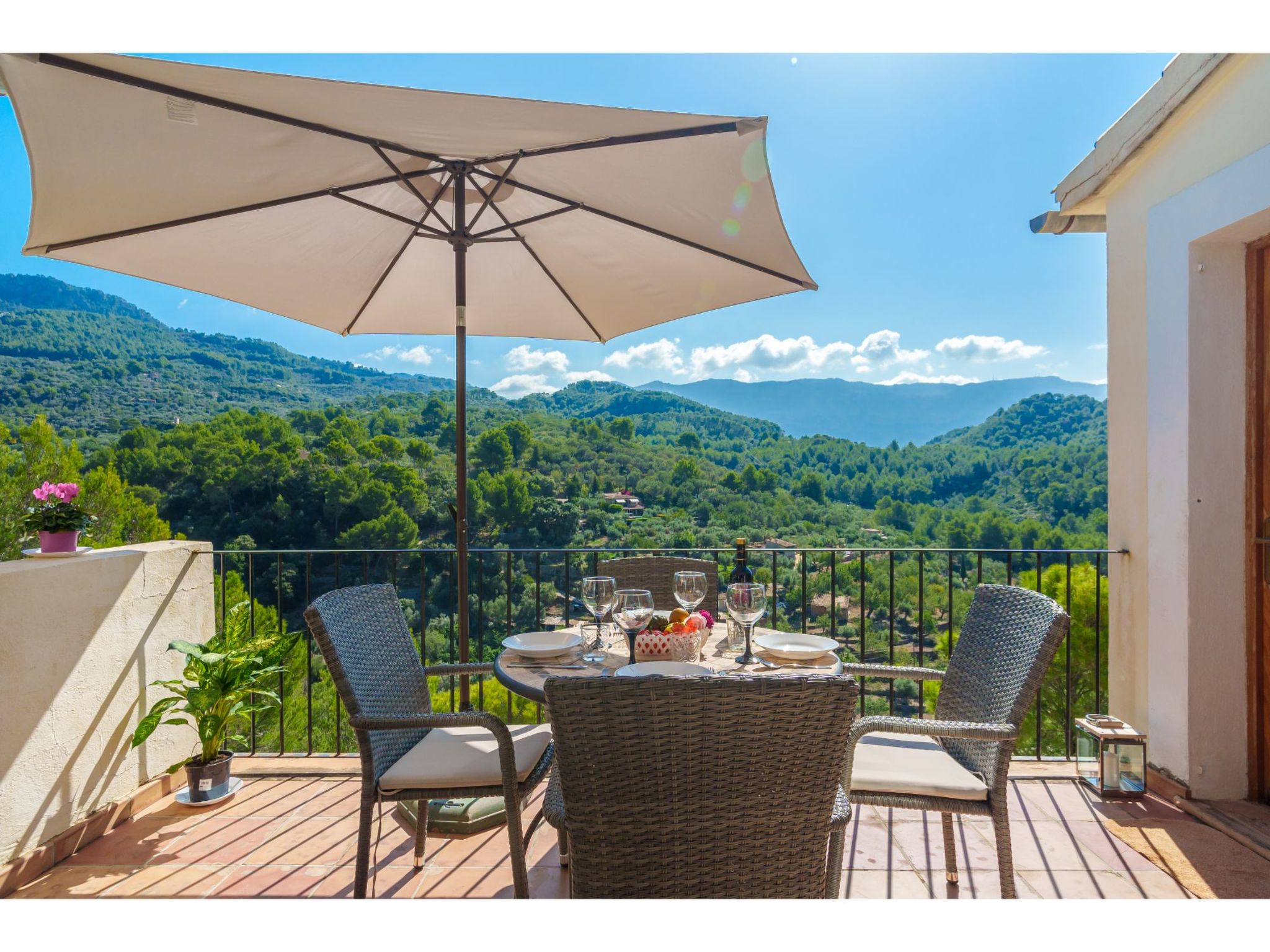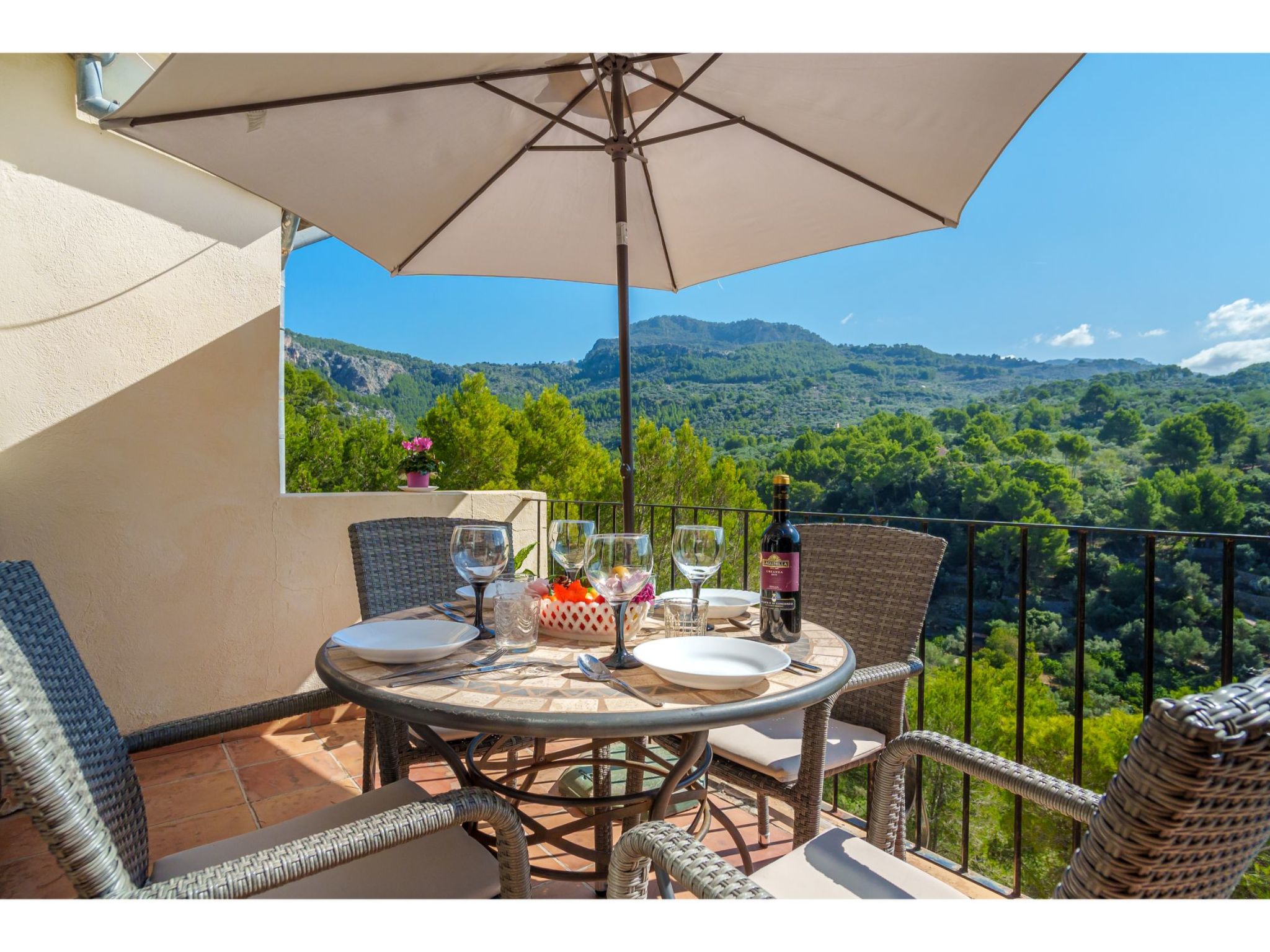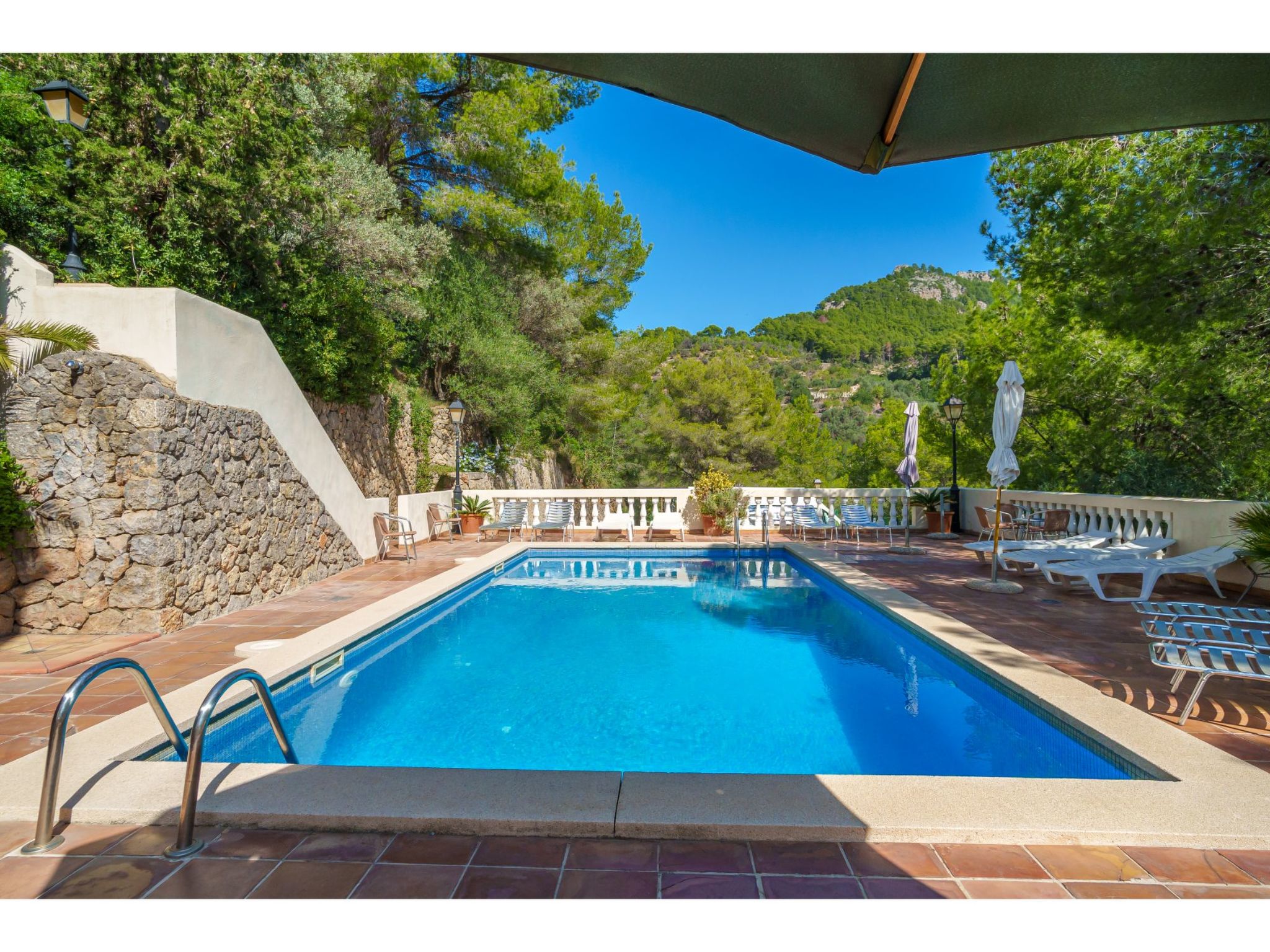 Port de Sóller: Das Haus mit 9 Wohnungen ist auf einer von Pinien umgebenen Anhöhe gelegen. Schönes, gemütliches, komfortables Appartementhaus "S'Atalaia Sea Views". Im Ort, 800 m vom Zentrum von Port de Sóller, sonnige Lage auf einem Hügel, 500 m vom Waldrand, 1 km vom Meer, 1.1 km vom Strand. Zur Mitbenutzung: Schwimmbad eckig (10 x 5 m, saisonale Verfügbarkeit: 01.Mai.-30.Sep.). Terrasse. Im Hause: Internetzugang, Wireless LAN, Waschmaschine. Steile Zufahrt. Parkplatz beim Haus auf dem Grundstück. Lebensmittelgeschäft 1 km, Supermarkt 1 km, Restaurant, Bar 300 m, Zentrum zu Fuss in 14 Minuten erreichbar, Bushaltestelle 1 km, Sandstrand 1 km. Sporthafen 1.3 km. Bitte beachten: geeignet für Familien, geeignet für Senioren. Objekt geeignet für 4 Erwachsene. Zugang zum Schwimmbad über Treppen. Liegen.