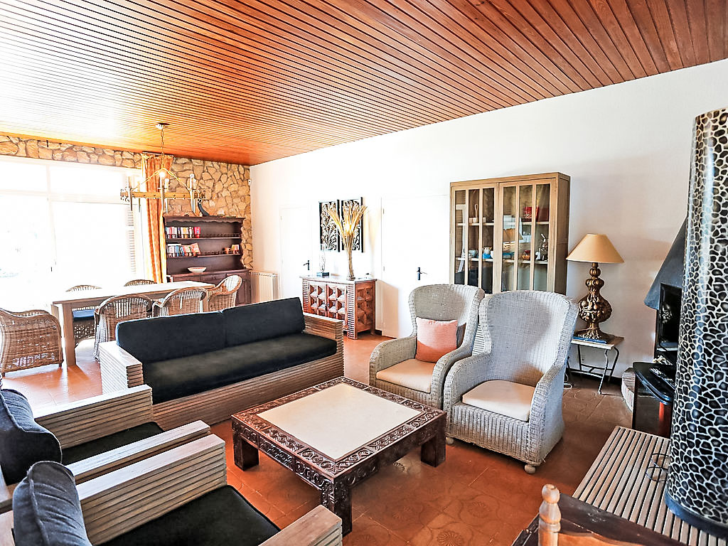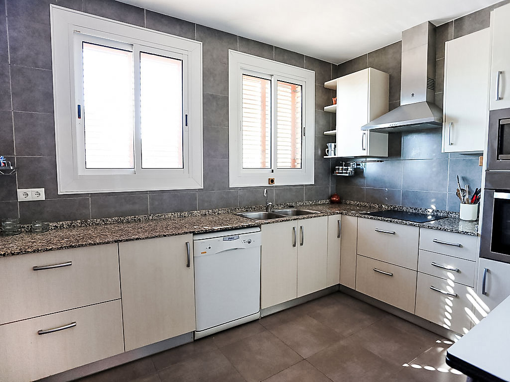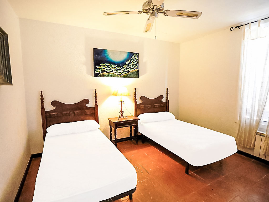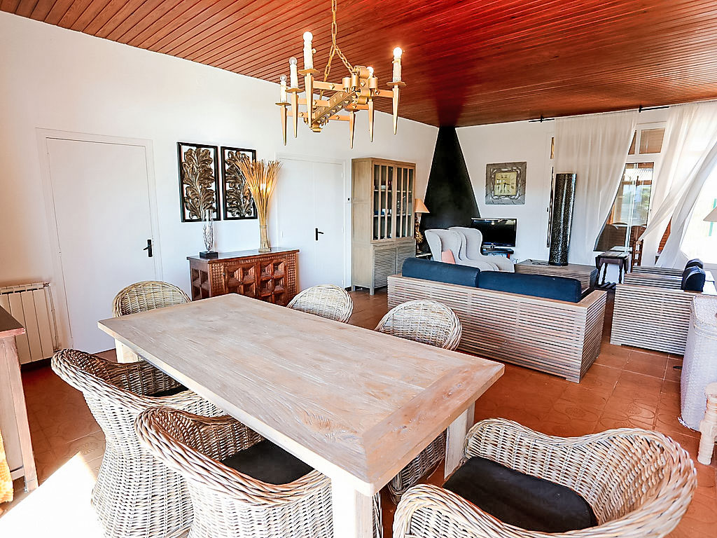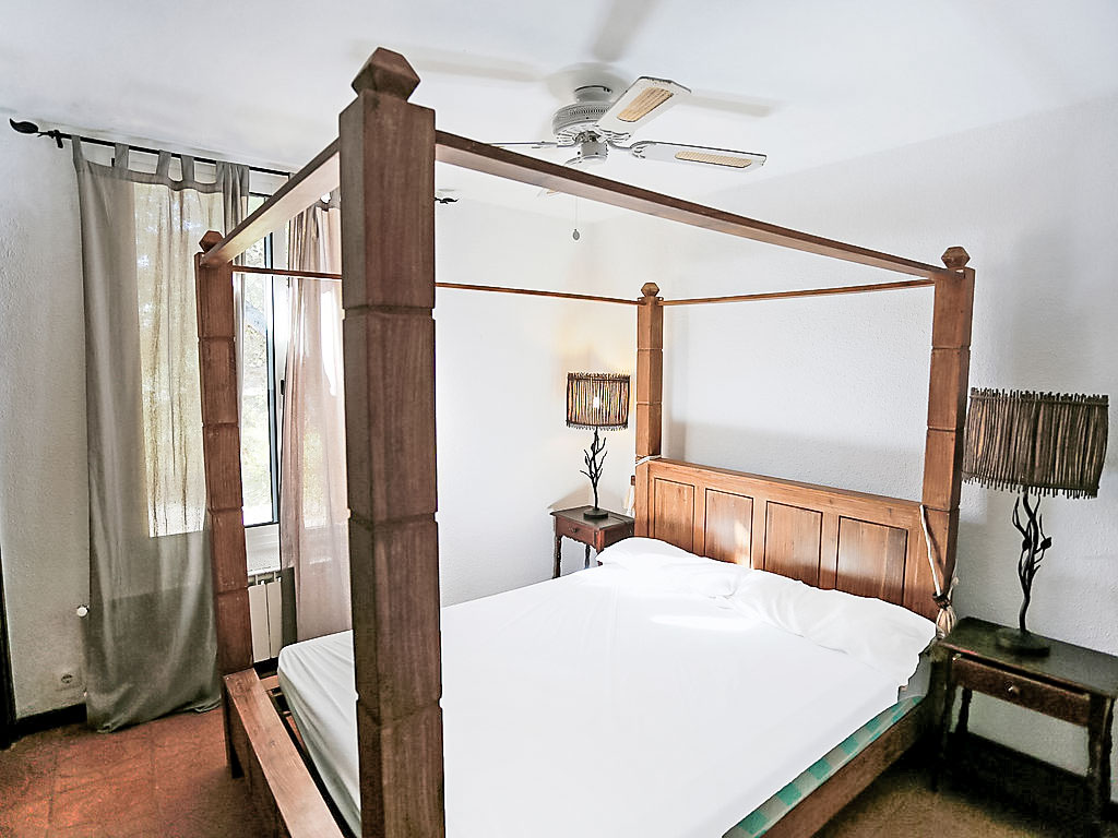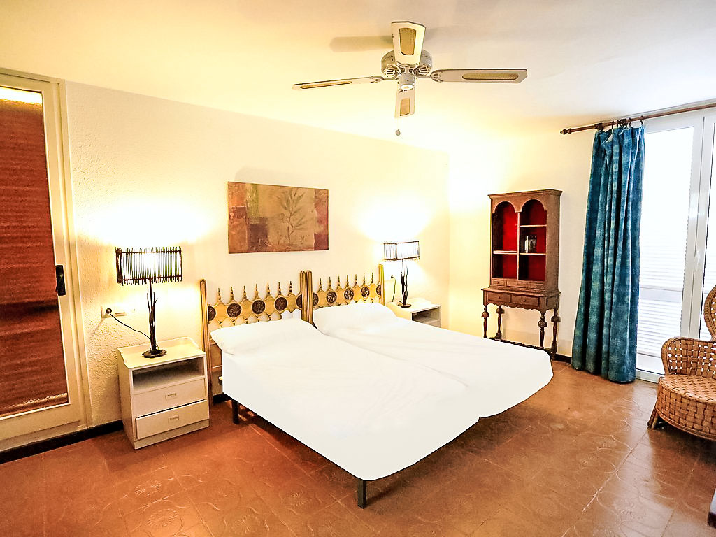 "Roques Dorades", 5-Zimmer-Villa 200 m2, im erhöhten Erdgeschoss. Geräumig, zweckmässig und schön eingerichtet: Wohn-/Esszimmer mit Esstisch, Sat-TV und Digital-TV. Ausgang zur Terrasse. 1 Zimmer mit 1 franz. Bett (150 cm, Länge 190 cm), Dusche/WC und Ventilator. 1 Zimmer mit 2 Betten (90 cm, Länge 190 cm), Ventilator. 1 Zimmer mit 1 Doppelbett (2 x 90 cm, Länge 190 cm), Bad/Bidet/WC, Doppelwaschbecken und Ventilator. 1 Zimmer mit 2 Betten (90 cm, Länge 190 cm). Küche (Backofen, Geschirrspüler, 4 Glaskeramikherd Platten, Toaster, Wasserkocher, Mikrowelle, elektrische Kaffeemaschine). Bad/WC, sep. WC. Grosse Terrasse. Terrassenmöbel, Gartengrill, Loggia. Herrliche Sicht auf das Meer. Zur Verfügung: Waschmaschine, Bügeleisen, Haartrockner. Garage. Bitte beachten: 2 Haustiere/Hunde erlaubt. TV nur ES, DE, FR. HUTTE000474