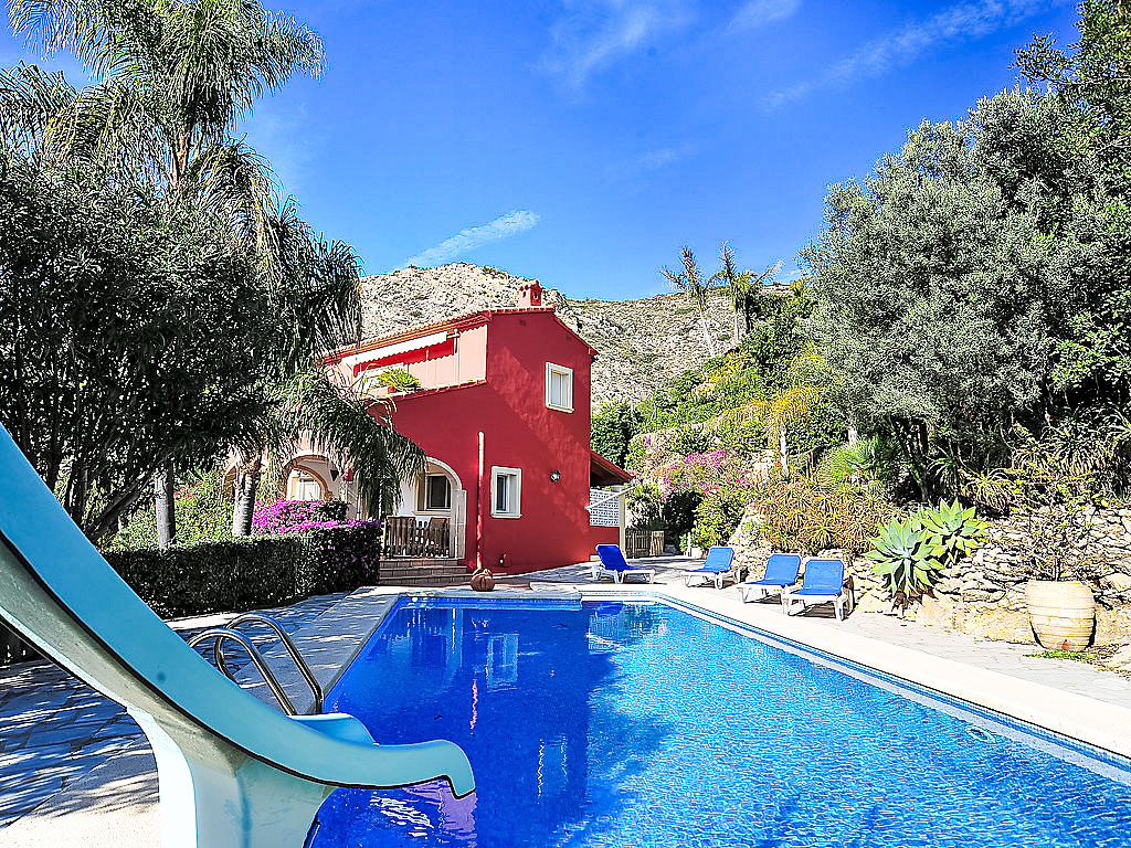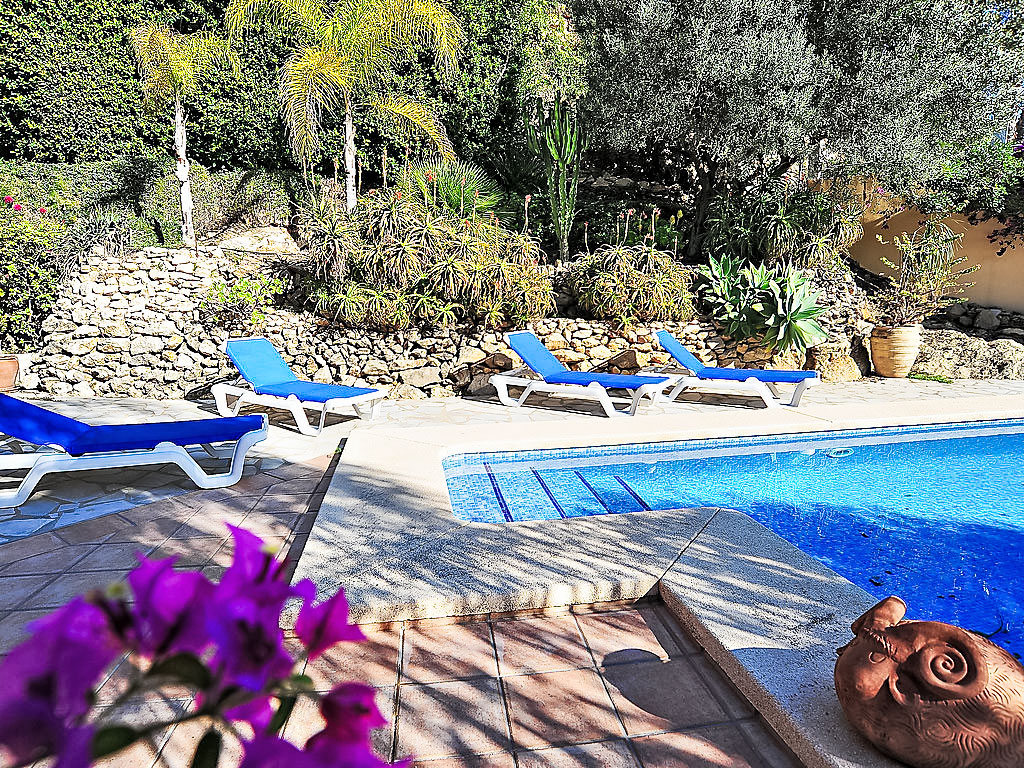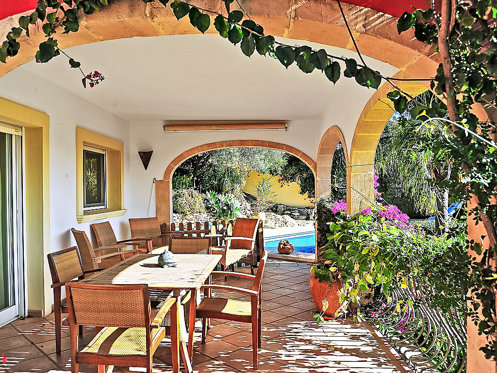 Schöne Villa "Aviles", auf 2 Stockwerken. Im Ortsteil Castellans, ruhige, sonnige Lage, 9 km vom Meer, in einer Sackgasse. Zur Alleinbenutzung: schöner, gepflegter Garten 1'800 m2 (eingezäunt) mit Rasen und Pflanzen, Schwimmbad nicht einsehbar, eingezäunt (4 x 9 m, 01.01.-31.12.) mit Innentreppe. Rutschbahn. Treppenweg (23 Stufen) bis zum Haus. Supermarkt 2 km, Restaurant 1 km, Sandstrand "Arenal" 9 km. Jugendgruppen nur auf Anfrage.