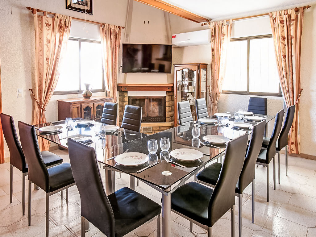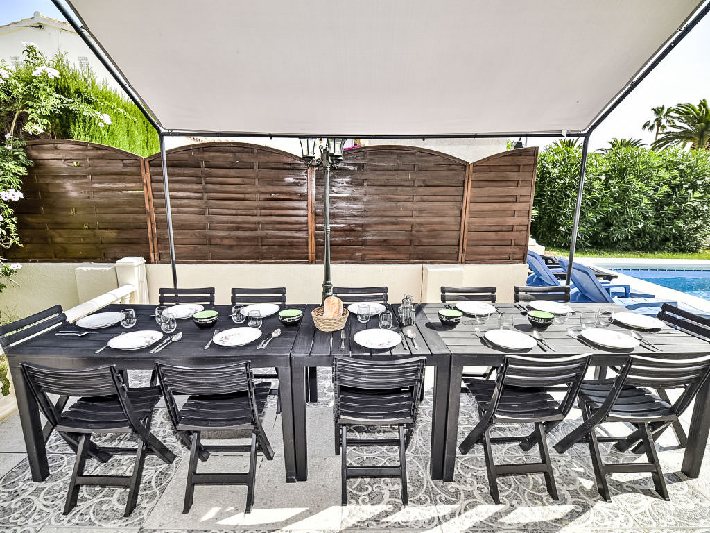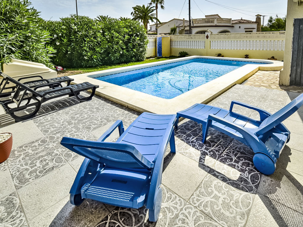 Grosse, sehr gemütliche, sehr komfortable Villa "Sueños del Mar". Im Ortsteil Gironets, 1 km vom Zentrum von Els Poblets, 8 km vom Zentrum von Denia, ruhige, sonnige Lage, 800 m vom Meer. Zur Alleinbenutzung: Grundstück (eingezäunt), gepflegter Garten Pflanzen und Blumen, Schwimmbad eckig (8 x 4 m, 180 cm tief, 01.01.-31.12.). Aussendusche, Laube, Terrasse, Gartenmöbel, Grillhaus, Parkplatz auf dem Grundstück, öffentliches Parkhaus in 50 m. Supermarkt 1 km, Restaurant 800 m, Sandstrand 1.2 km, Steinstrand 800 m. Sporthafen 9 km, Golfplatz (18 Loch) 10 km. Der Besitzer akzeptiert keine Jugendgruppen.