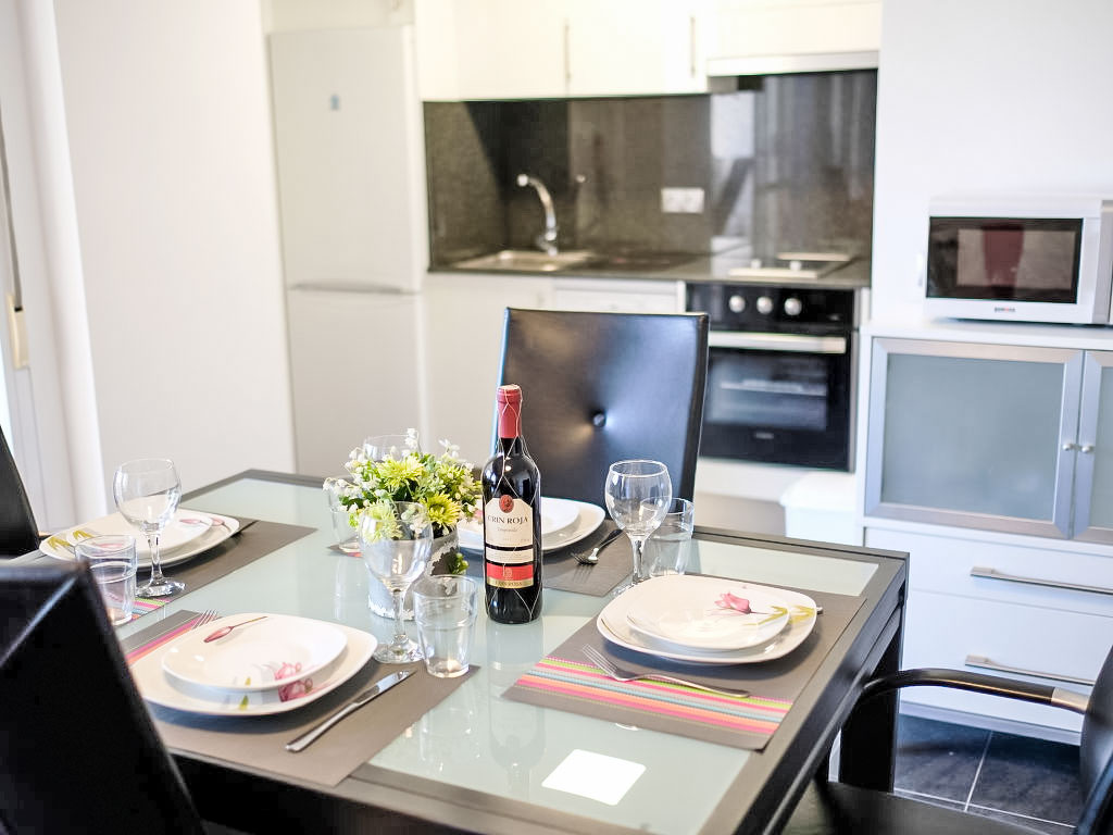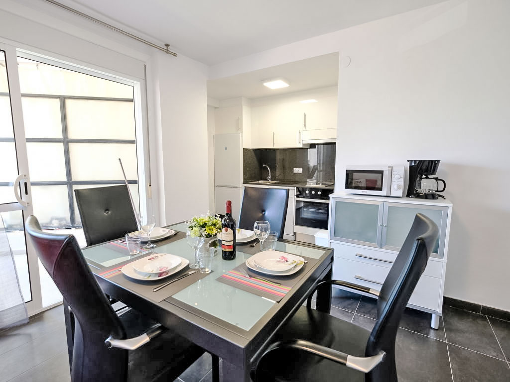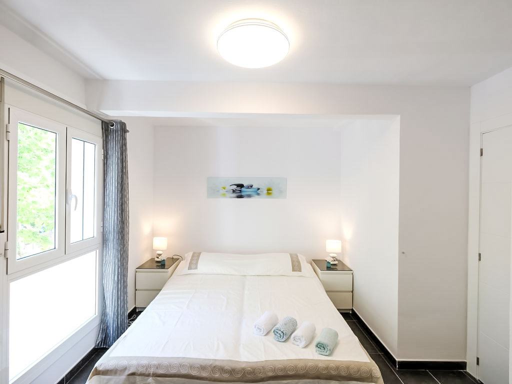 "Formentor II", 2-Zimmer-Wohnung 37 m2. Hell, vollständig renoviert im Jahre 2018, schön und modern eingerichtet: Wohn-/Esszimmer mit 2 Schlafmöglichkeiten, Digital-TV, Flachbildschirm und Klimaanlage. Ausgang zur Terrasse. 1 Zimmer mit 2 Betten (90 cm, Länge 190 cm). Kleine, offene Küche (Backofen, Geschirrspüler, 2 Glaskeramikherd Platten, Toaster, Wasserkocher, Mikrowelle, elektrische Kaffeemaschine). Dusche/WC. Balkon. Balkonmöbel. Sicht auf das Meer. Zur Verfügung: Waschmaschine, Bügeleisen, Haartrockner. Internet (Wireless LAN). Bitte beachten: Nichtraucher-Unterkunft. 1 kleines Haustier/Hund erlaubt. HUTT034546