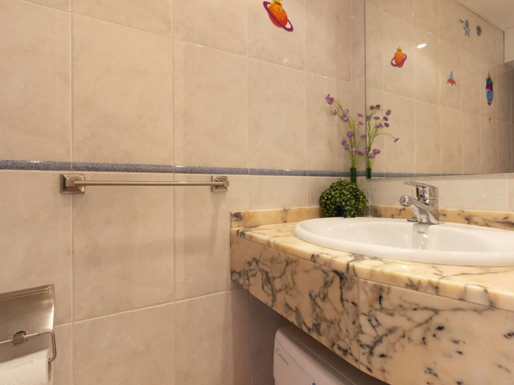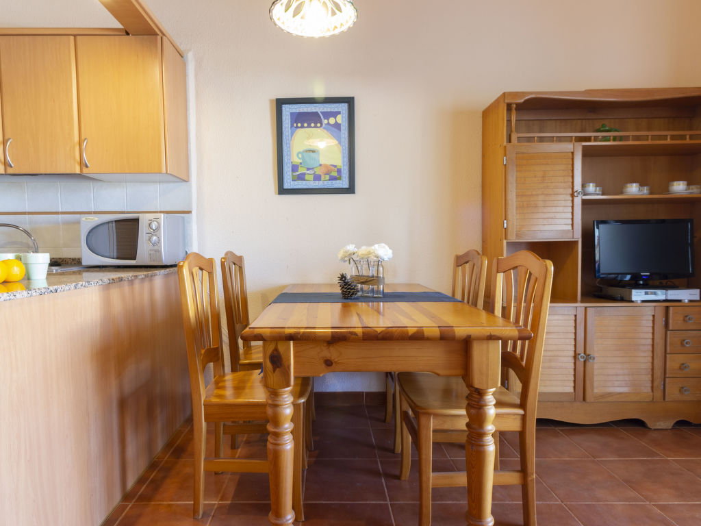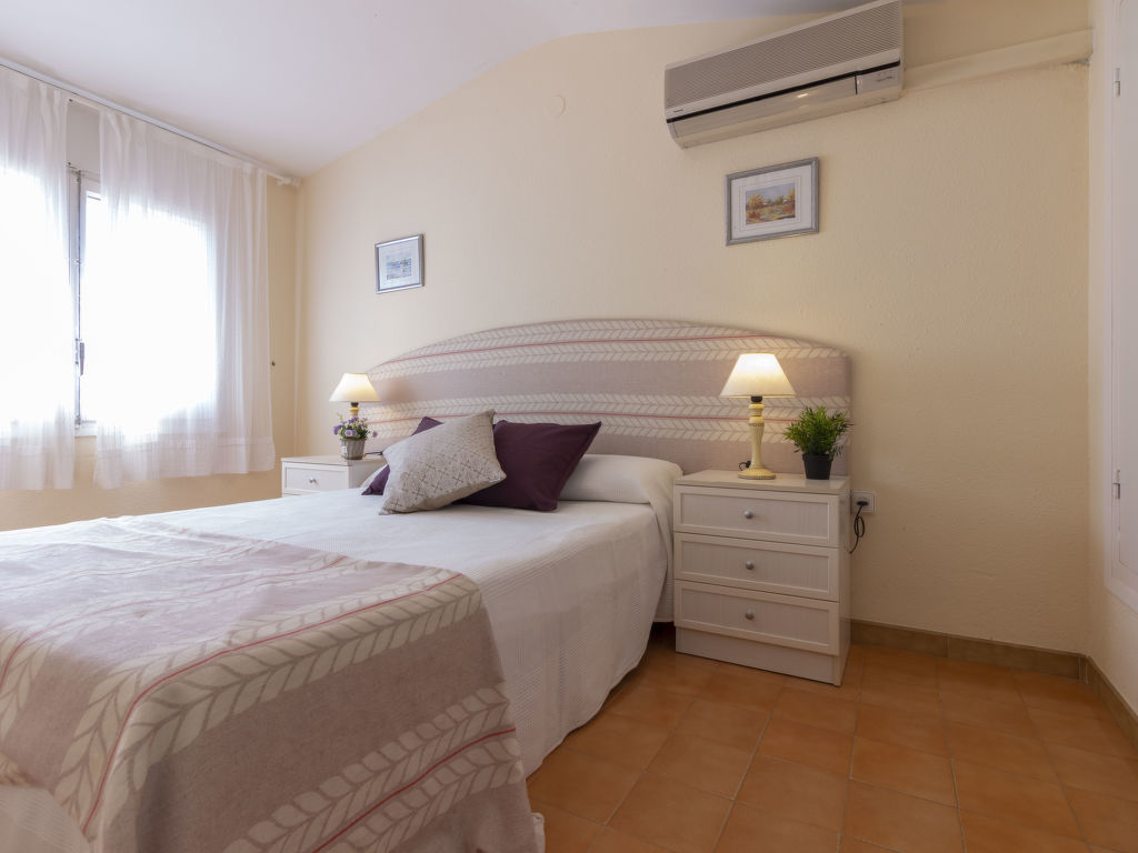 4-Zimmer-Reihenhaus. Zweckmässig und komfortabel eingerichtet: Wohn-/Esszimmer mit 1 Doppeldiwanbett, TV und Flachbildschirm. Ausgang zur Terrasse. 1 Zimmer mit 2 Betten. Offene Küche (4 Kochplatten, Backofen, Mikrowelle). Dusche, sep. WC. Klimaanlage. Obergeschoss: 1 Zimmer mit 1 franz. Bett. Bad/WC. Klimaanlage. Terrasse. Terrassenmöbel, Gartengrill, Liegestühle. Sicht auf das Schwimmbad. Zur Verfügung: Waschmaschine. Internet (Wireless LAN, gratis). Geeignet für Familien. 2 Haustiere/Hunde erlaubt. HUTTE001098