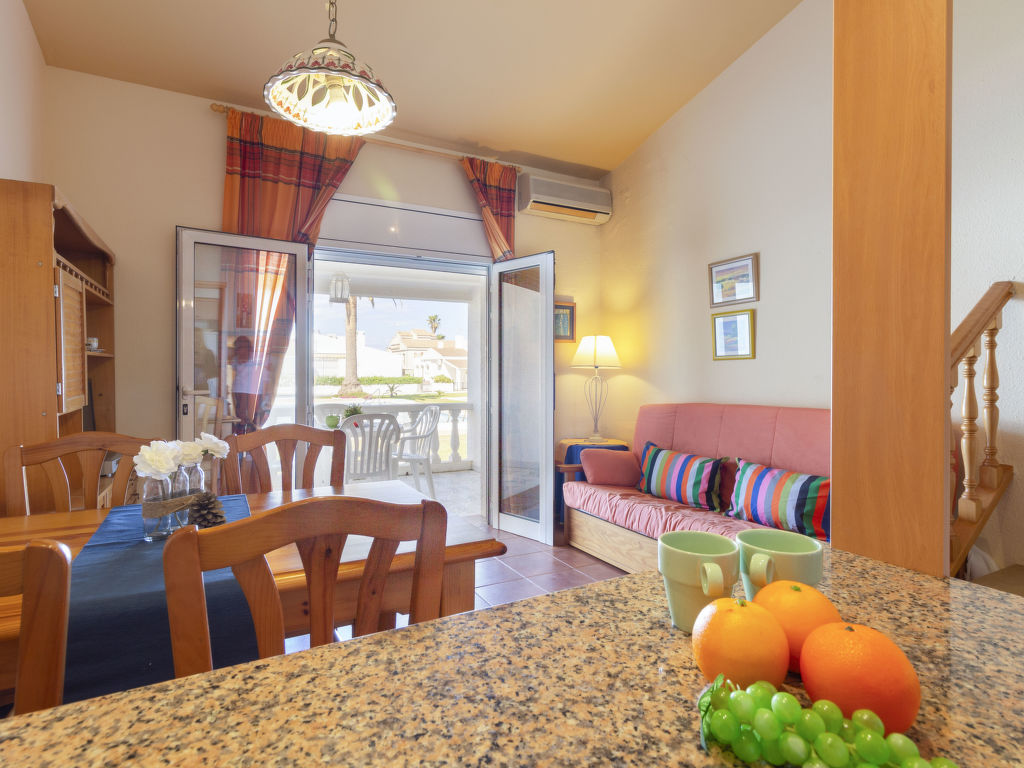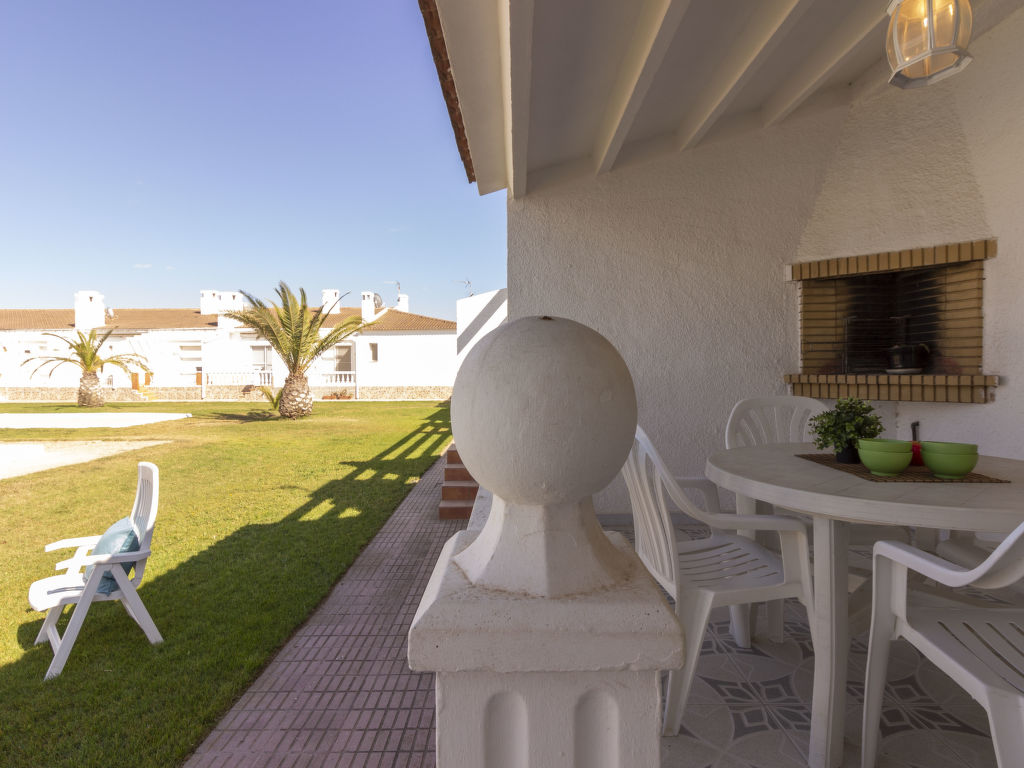 Riumar 10 km von Deltebre: Komfortables Reihenhaus "Salvagina", auf 2 Stockwerken. Ruhige, sonnige Lage, 300 m vom Meer, 300 m vom Strand. Zur Mitbenutzung: grosser Garten mit Rasen, Schwimmbad eckig (25 x 12 m, 80 - 220 cm tief, saisonale Verfügbarkeit: 01.Jan.-31.Dez.). Poolhaus mit Dusche und WC, Boccia, Grill. Zur Alleinbenutzung: Pergola, Grill, öffentliche Parkplätze auf der Strasse. Einkaufsgeschäft, Lebensmittelgeschäft, Restaurant, Bar 300 m.