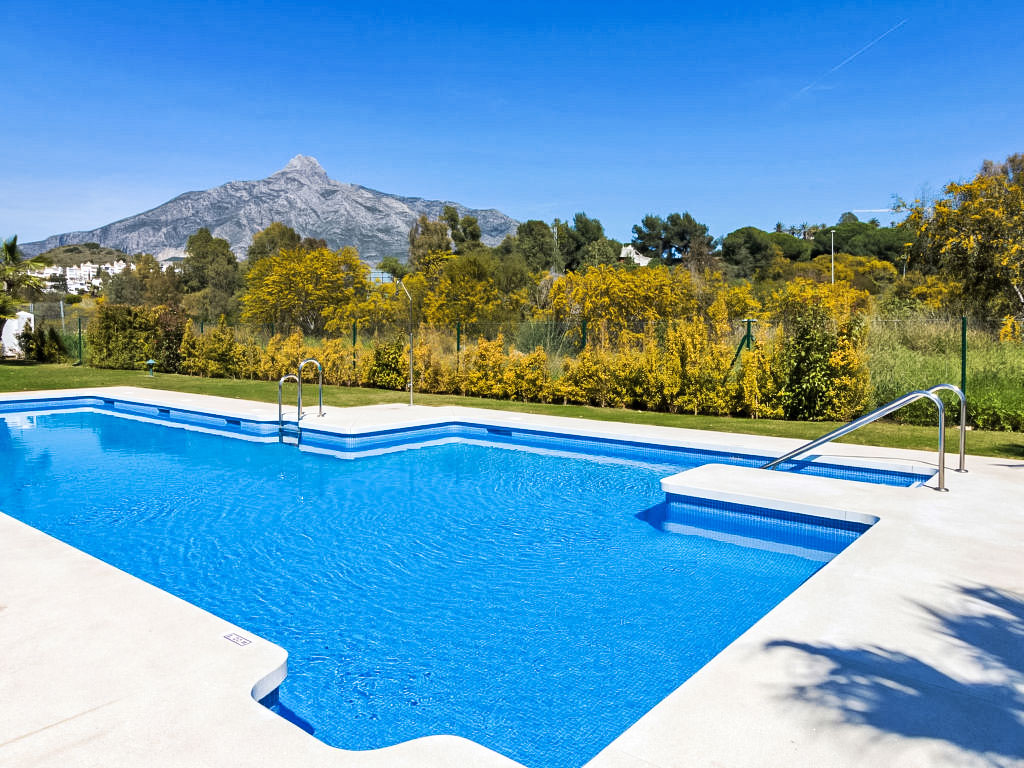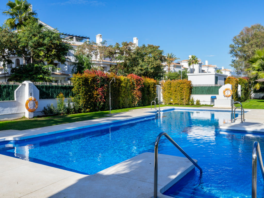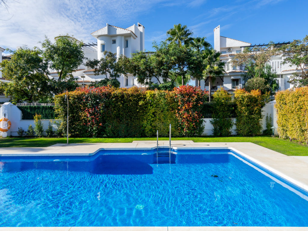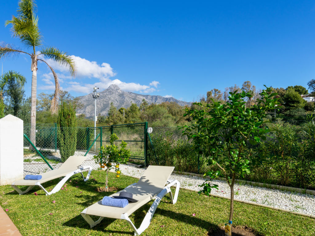 Nueva Andalucía: Schönes, gemütliches Zweifamilienhaus "Los Naranjos Singles". Im Ortszentrum von Nueva Andalucía, im Ort, 2 km vom Zentrum von Puerto Banús, 5 km vom Zentrum von Marbella, 2 km vom Meer, Richtung Südosten. Zur Mitbenutzung: Park, Garten mit Rasen, Schwimmbad (saisonale Verfügbarkeit: 01.Jan.-31.Dez.). Aussendusche. Im Hause: Klimaanlage, Waschmaschine. Parkplatz beim Haus. Supermarkt, Restaurant, Café 100 m, Sandstrand 2 km. Golfplatz (18 Loch), Tennis 500 m. Bitte beachten: Die Anlage wird nachts überwacht.