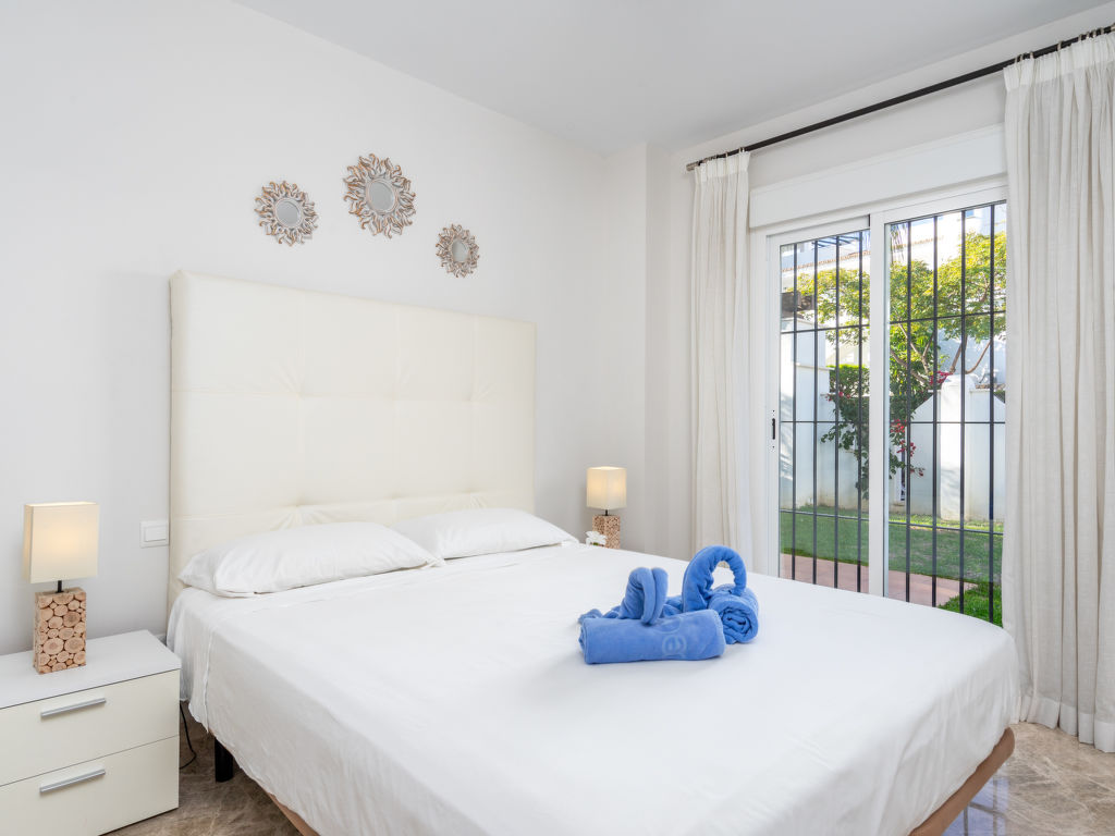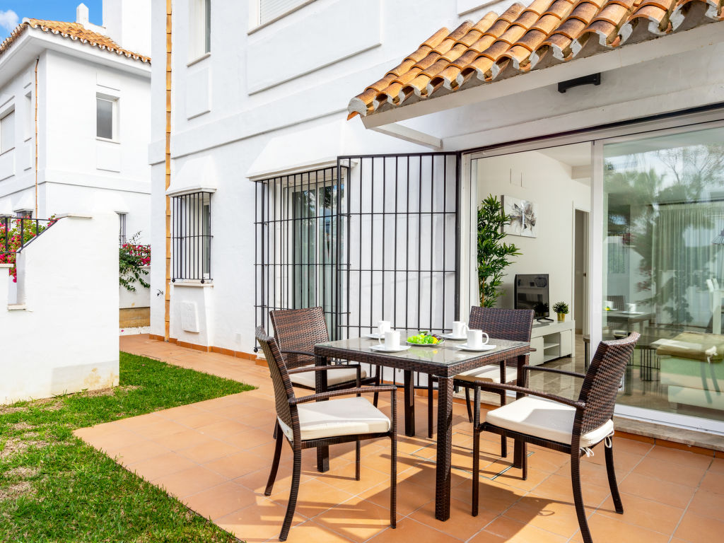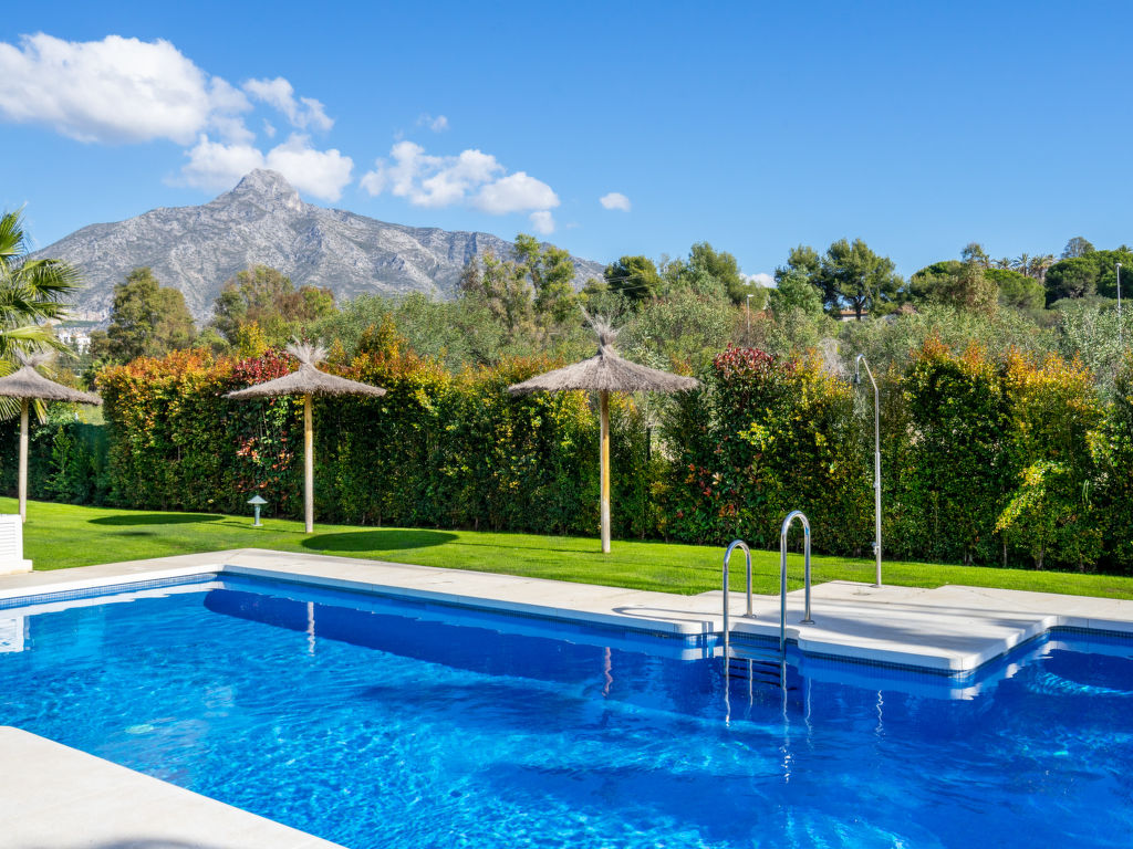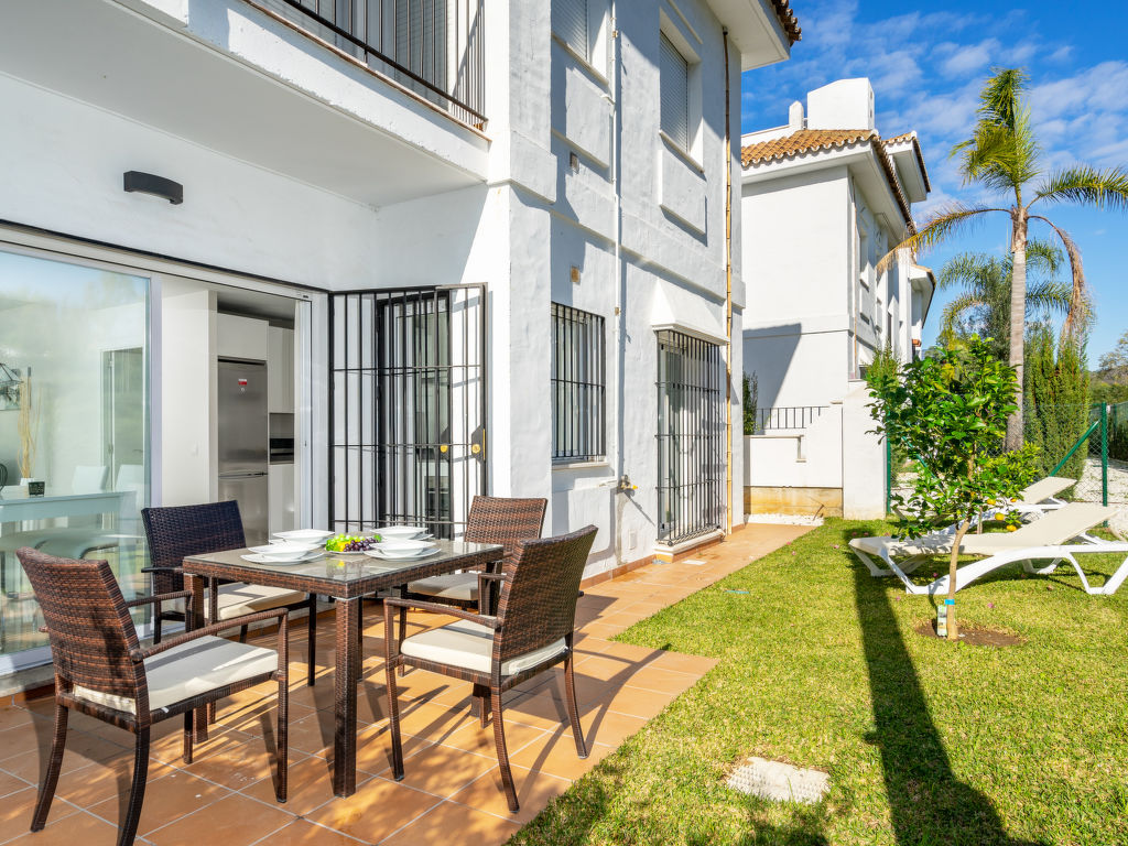 Nueva Andalucía: Schönes, gemütliches Zweifamilienhaus "Los Naranjos Singles". Im Ortszentrum von Nueva Andalucía, im Ort, 2 km vom Zentrum von Puerto Banús, 5 km vom Zentrum von Marbella, 2 km vom Meer, Richtung Südosten. Zur Mitbenutzung: Park, Garten mit Rasen, Schwimmbad (saisonale Verfügbarkeit: 01.Jan.-31.Dez.). Aussendusche. Im Hause: Klimaanlage, Waschmaschine. Parkplatz beim Haus. Supermarkt, Restaurant, Café 100 m, Sandstrand 2 km. Golfplatz (18 Loch), Tennis 500 m. Bitte beachten: Die Anlage wird nachts überwacht.