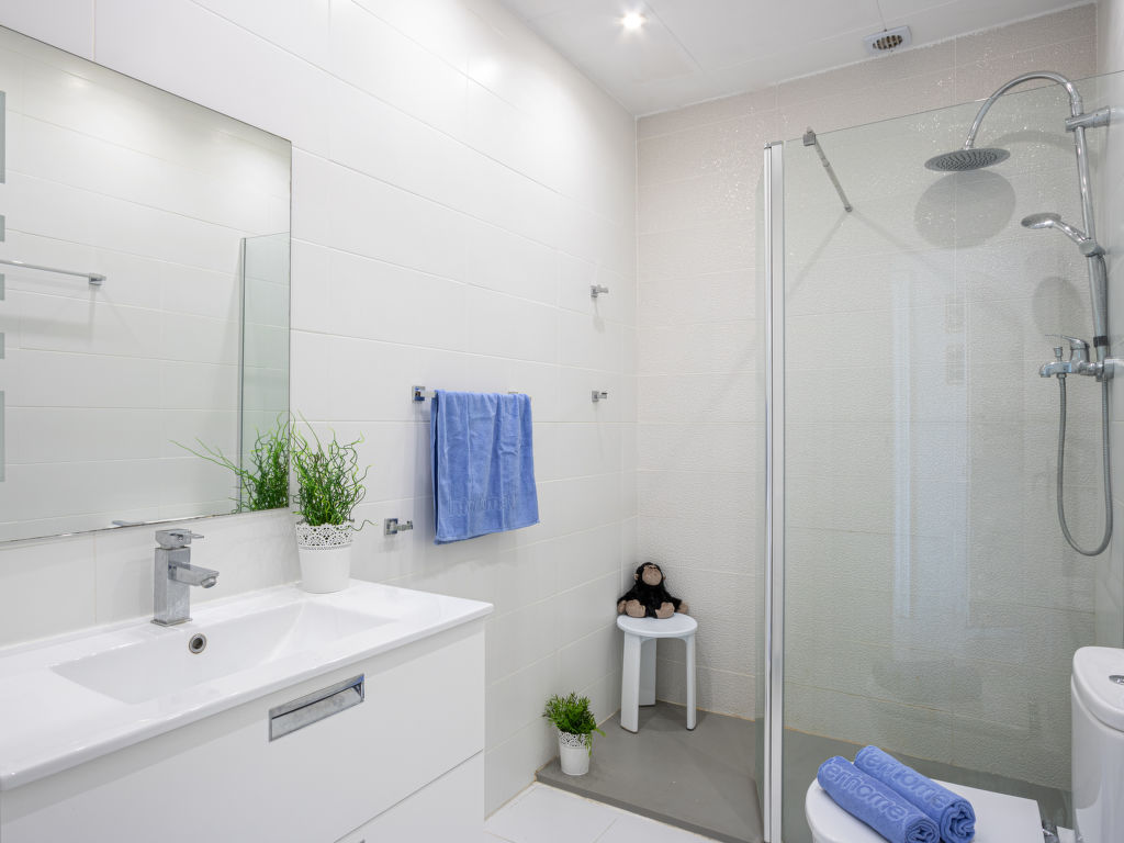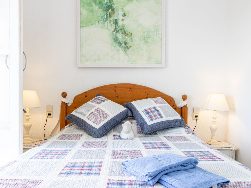 "MADRESELVA", 4-Zimmer-Reihenhaus 75 m2 auf 2 Stockwerken, Südwestlage. Hell, schön und stilvoll eingerichtet: Wohn-/Esszimmer mit Esstisch und Sat-TV. Ausgang zur Terrasse, Richtung Süden und Richtung Westen. Offene Küche (Backofen, Geschirrspüler, 4 Glaskeramikherd Platten, Mikrowelle, Tiefkühler, elektrische Kaffeemaschine) mit Bar. Sep. WC. Unteres Geschoss: 1 grosses Zimmer mit 1 franz. Bett (140 cm, Länge 190 cm), Essecke und Dusche/WC. 1 Zimmer mit 1 franz. Bett (140 cm, Länge 190 cm). 1 Kinderzimmer mit 2 Betten (90 cm, Länge 190 cm). Dusche/WC. Grosse Terrasse 20 m2, Südlage und Westlage Terrasse 12 m2. Terrassenmöbel. Herrliche Panoramasicht auf das Meer. Zur Verfügung: Waschmaschine, Bügeleisen, Haartrockner. Internet (Wireless LAN, gratis). Bitte beachten: TV nur DE, ES, FR. HUTG056717