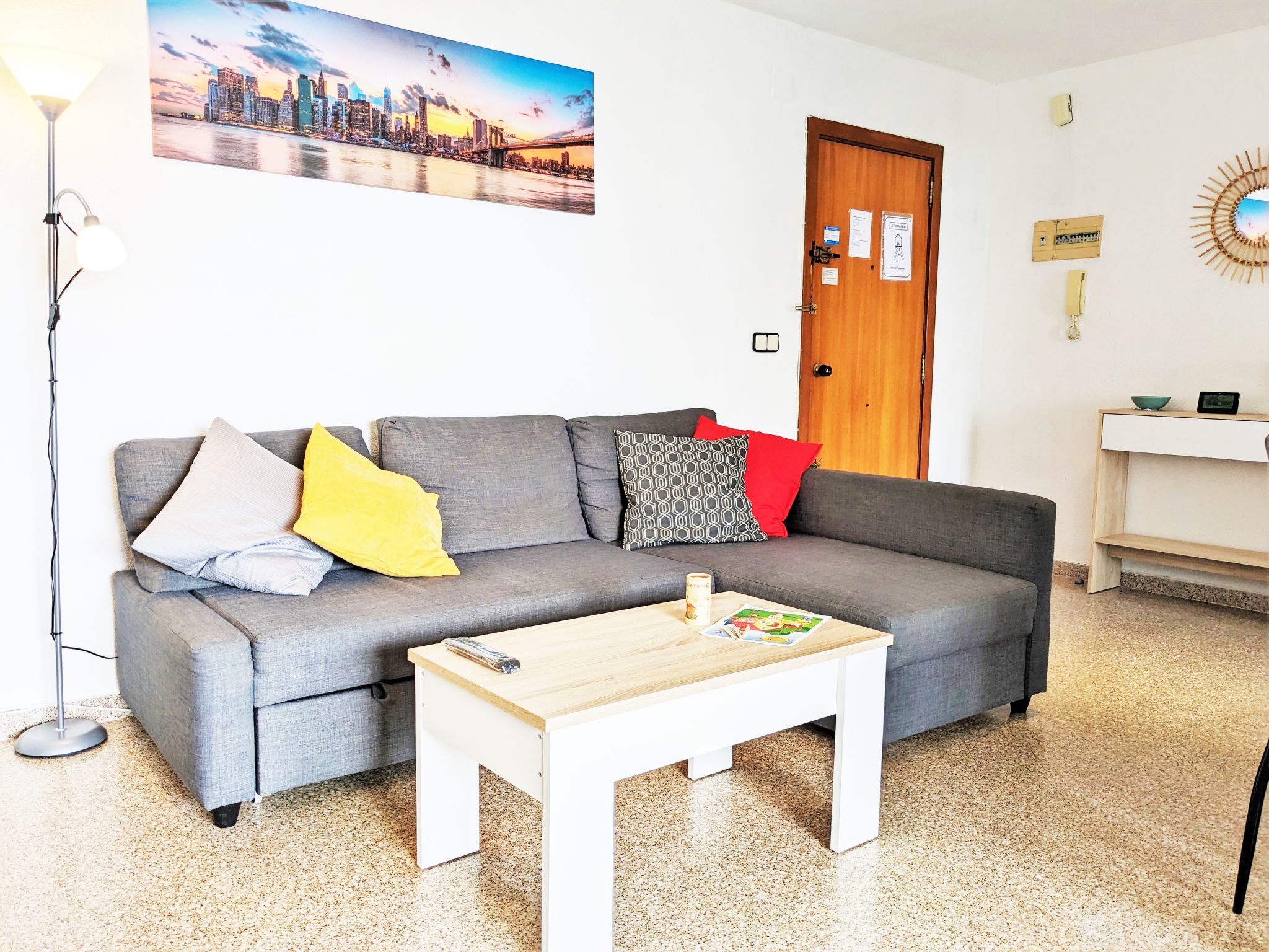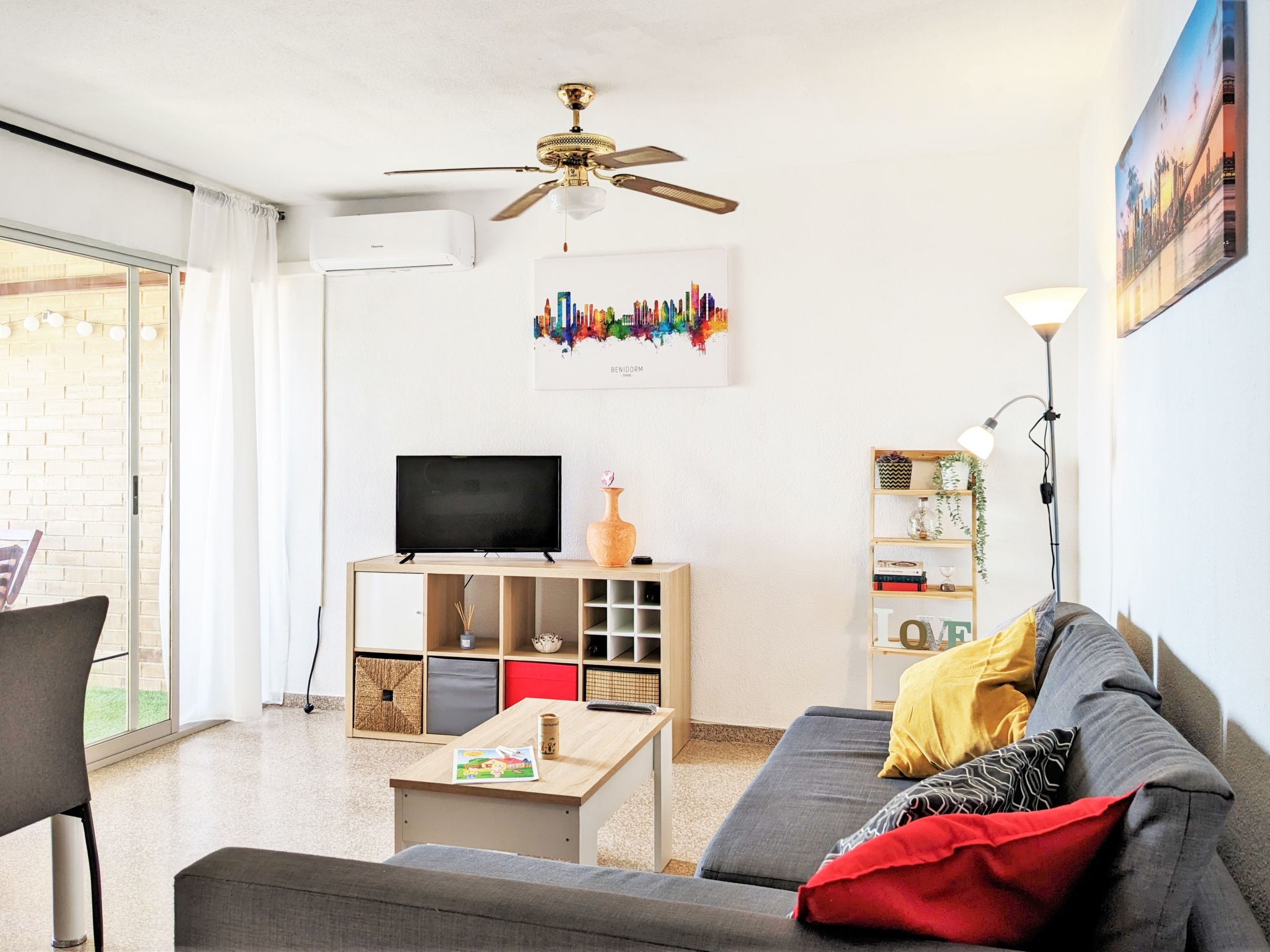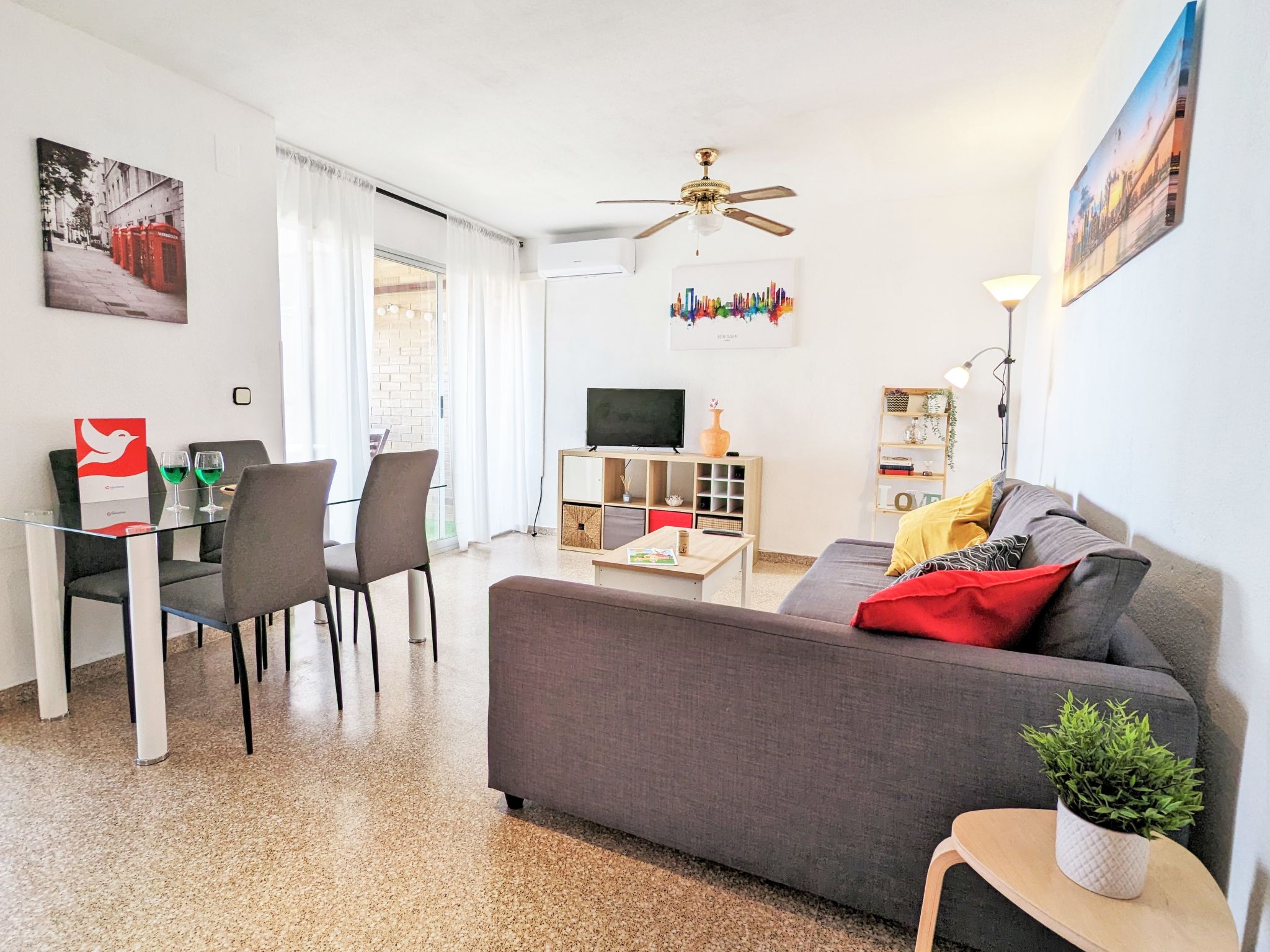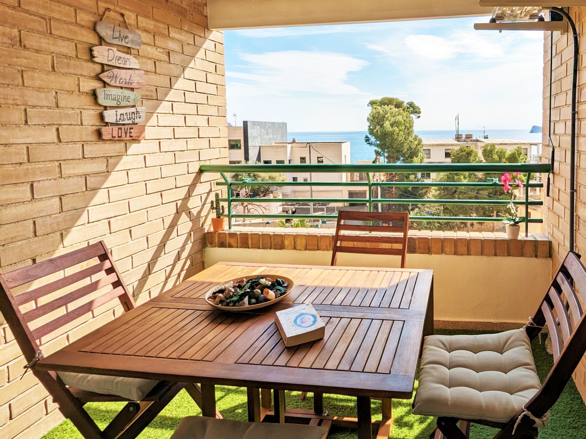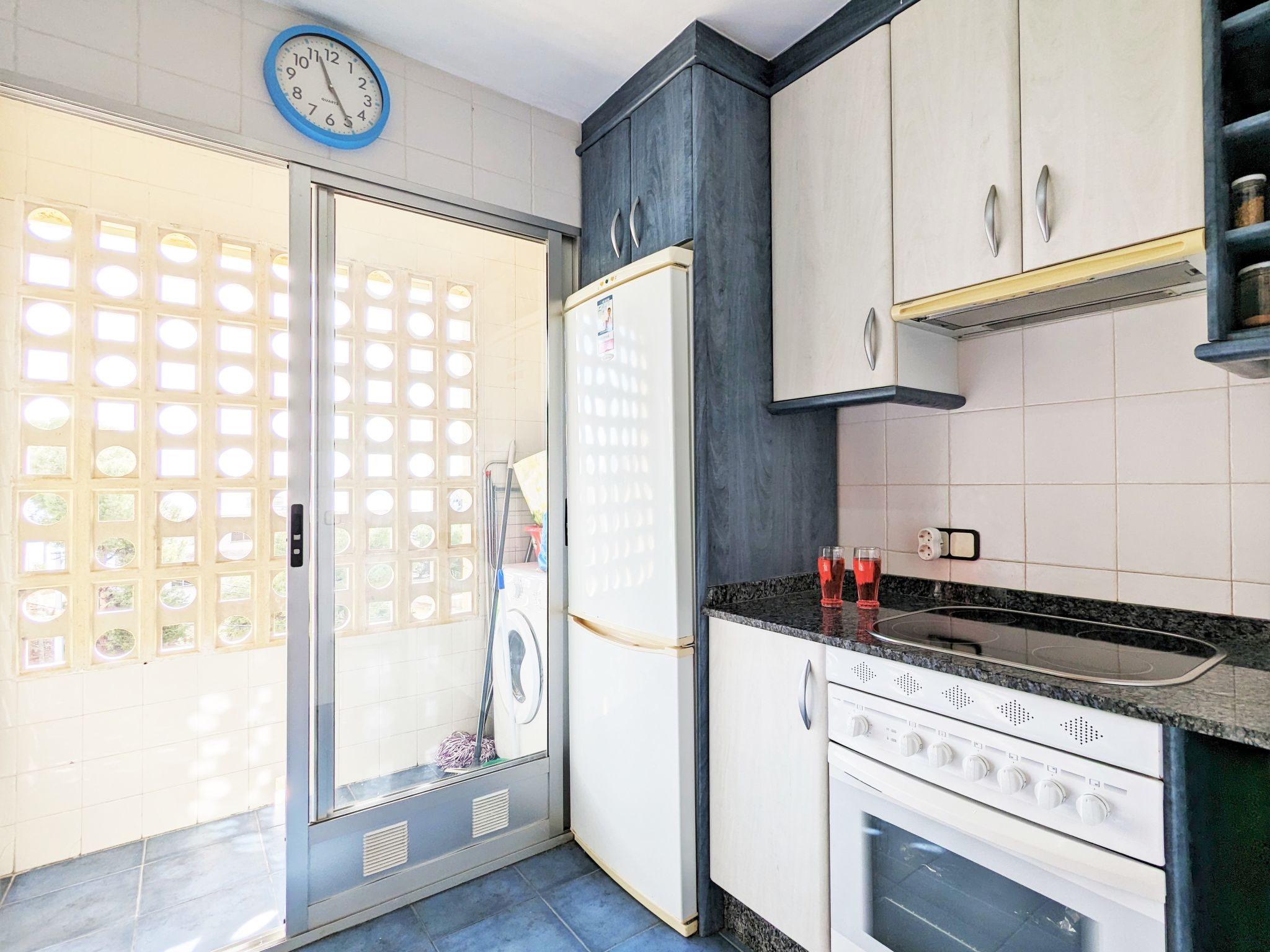 "Coblanca XVI", 3-Zimmer-Wohnung 38 m2 im 4. Stock, Ostlage. Geräumig und hell, komfortabel eingerichtet: Wohn-/Esszimmer mit Digital-TV, E-Heizung und Ventilator. Ausgang zur Terrasse. 1 Zimmer mit 2 Betten und Ventilator. 1 Zimmer mit 1 franz. Bett und Ventilator. Küche (Backofen, 4 Glaskeramikherd Platten, Toaster, Wasserkocher, Mikrowelle, Tiefkühler, elektrische Kaffeemaschine). Bad/Bidet/WC. Boiler (50 Liter). Kleine Terrasse. Terrassenmöbel. Fernsicht auf das Meer, die Berge, den Garten und die Ortschaft. Zur Verfügung: Waschmaschine, Bügeleisen, Haartrockner. Parkplatz. 1 kleines Haustier/Hund erlaubt. AT320309BM
