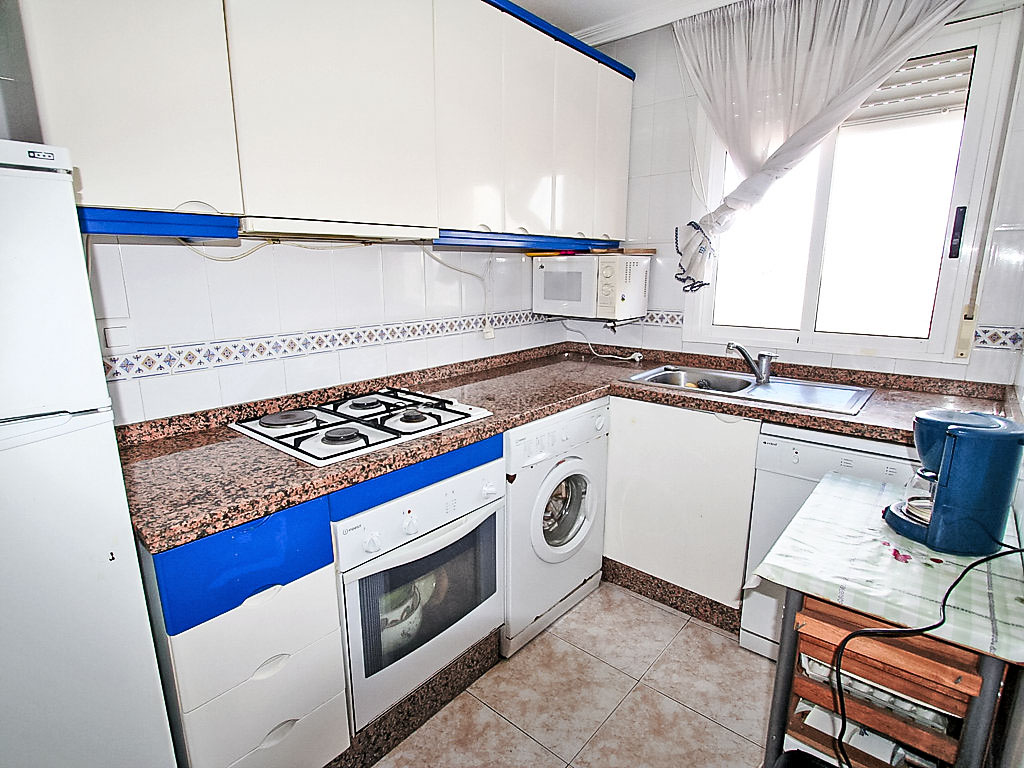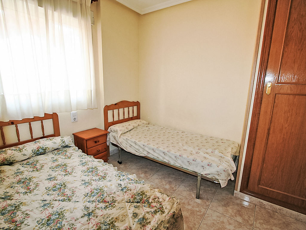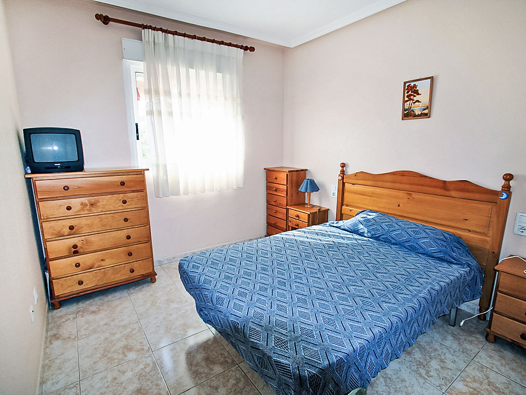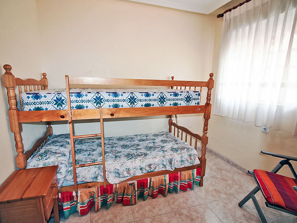 "Marismas III", 4-Zimmer-Wohnung im 2. Stock. Hell, zweckmässig eingerichtet: Wohn-/Esszimmer mit Digital-TV und Klimaanlage. Ausgang zum Balkon. 1 Doppelzimmer mit 1 Doppelbett und Dusche/WC. 1 Doppelzimmer mit 2 Betten. 1 Doppelzimmer mit 1 x 2 Etagenbetten. Küche (4 Kochplatten, Backofen, Geschirrspüler, Mikrowelle, Tiefkühler, elektrische Kaffeemaschine). Bad/Bidet/WC. Boiler. Sicht auf das Schwimmbad. Zur Verfügung: Waschmaschine. Bitte beachten: 1 Haustier/Hund erlaubt. TV nur ES. AT-439956-A