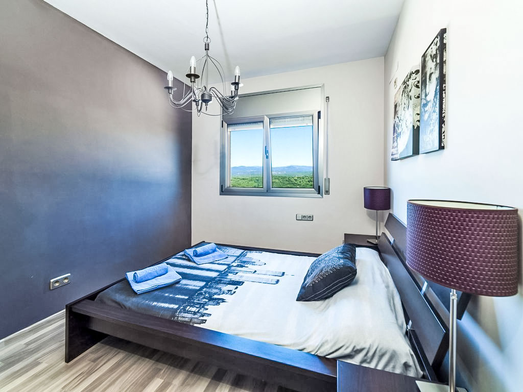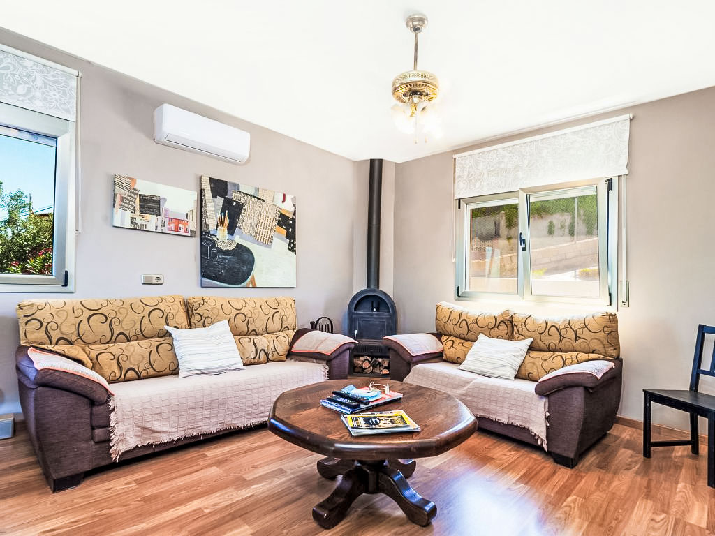 "Lazbala", 8-Zimmer-Haus 200 m2. Geräumig, zweckmässig und modern eingerichtet: Wohn-/Esszimmer mit offenem Kamin und Digital-TV. Ausgang zum Gartensitzplatz, zum Schwimmbad. 1 Doppelzimmer mit 1 franz. Bett (140 cm, Länge 200 cm), Bad/WC. 2 Doppelzimmer, jedes Zimmer mit 1 franz. Bett (140 cm, Länge 200 cm). 1 Zimmer mit 1 Bett (90 cm, Länge 190 cm). Küche (Backofen, Geschirrspüler, 3 Induktionskochplatten, Mikrowelle, Tiefkühler, elektrische Kaffeemaschine). Ausgang zum Gartensitzplatz. Dusche/Bidet/WC. Obergeschoss: Wohnzimmer mit TV. Ausgang zur Terrasse. 2 Doppelzimmer, jedes Zimmer mit 1 franz. Bett (140 cm, Länge 200 cm). Dusche/Bidet/WC. Terrassenmöbel, Gartengrill, Liegestühle. Sicht auf die Berge und die Ortschaft. Zur Verfügung: Waschmaschine, Bügeleisen, Kinderhochstuhl, Babybett bis 2 Jahre, Haartrockner. Internet (Wireless LAN, gratis). Bitte beachten: TV nur ES. HUTG021794