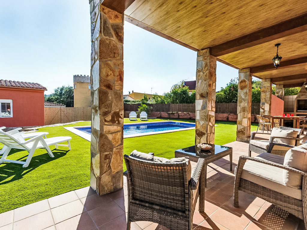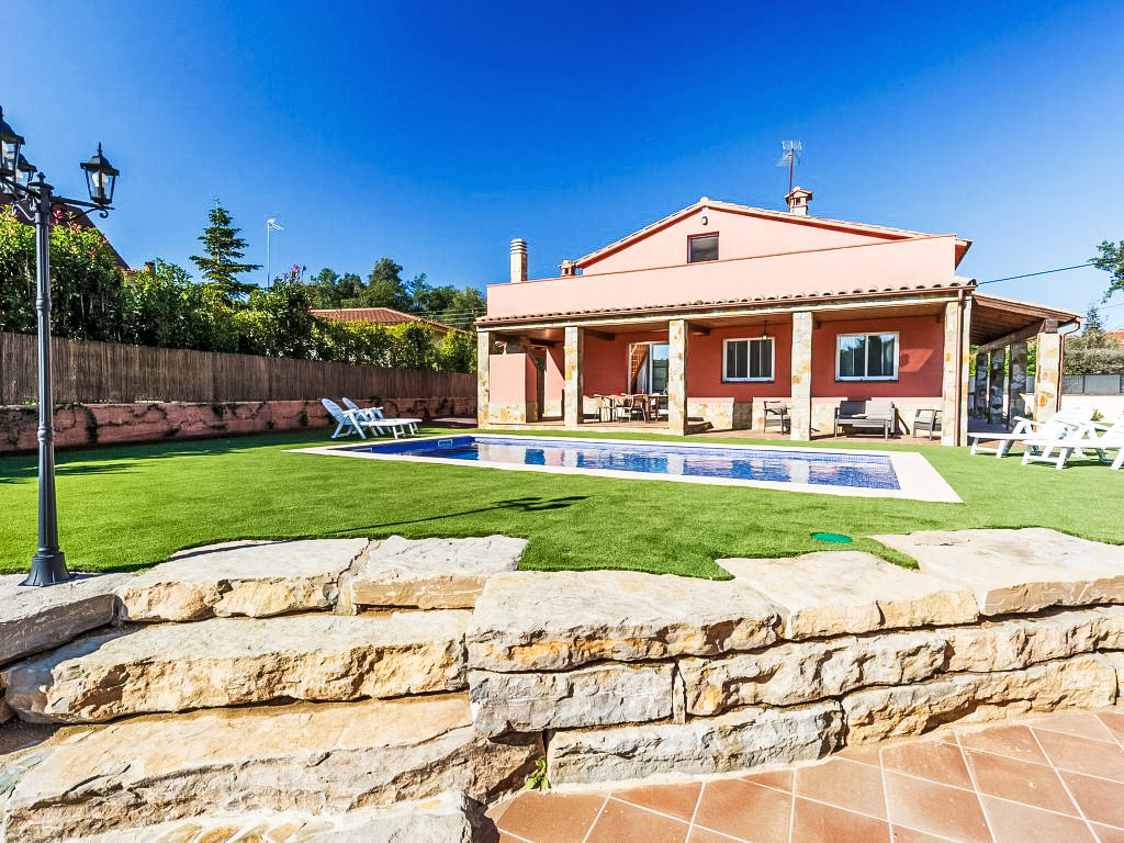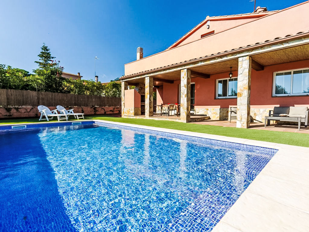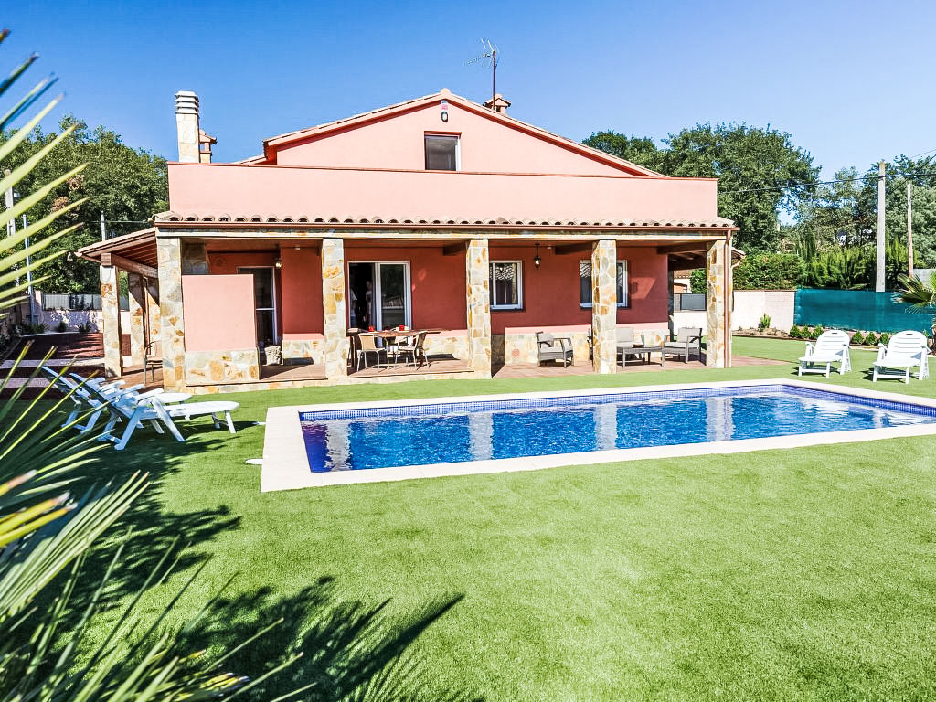 Can Carbonell 15 km von de Lloret de Mar: Gemütliches, komfortables Haus "Montverde", auf 2 Stockwerken. Im Ortsteil can Carbonell, am Ortsrand, 6 km vom Zentrum von Vidreres, im Villenviertel, verkehrsberuhigte Zone, 15 km vom Meer, 15 km vom Strand. Zur Alleinbenutzung: Grundstück (eingezäunt) mit Blumen, wunderschöner Garten zum Entspannen, Schwimmbad eckig (8 x 4 m, 8 m Durchmesser, 120 - 180 cm tief, 06.04.-19.10.). Dusche/WC im Poolbereich, Poolhaus, Gartenmöbel, Grill, Parkplatz beim Haus, öffentliche Parkplätze auf der Strasse. Einkaufsgeschäft 3 km, Supermarkt 3 km, Einkaufszentrum 30 km, Restaurant 2 km, Bäckerei 2 km, Café 6 km. Golfplatz (18 Loch) 17 km. Nahe gelegene Sehenswürdigkeiten: Water World lloret de Mar 15 km, Golf Pga Caldes de Malavella 12 km, Agua Diver Platja de Aro 20 km, Marinland Blanes 20 km. Bitte beachten: Fahrzeug empfohlen. Der Besitzer akzeptiert keine Jugendgruppen.